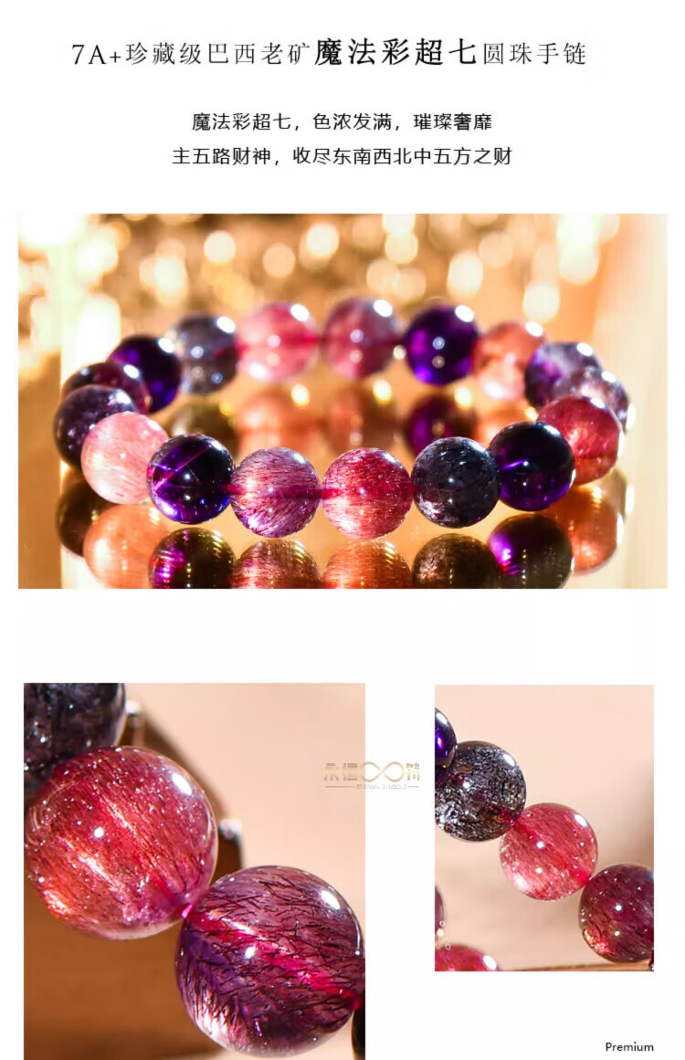 Eternal Symbol Collection Grade Brazilian Super Seven Amethyst Bracelet Blackcurrant Crystal Bracelet Jewelry Valentine's Day Gift Collection Grade 6mm-High-end Gift Box