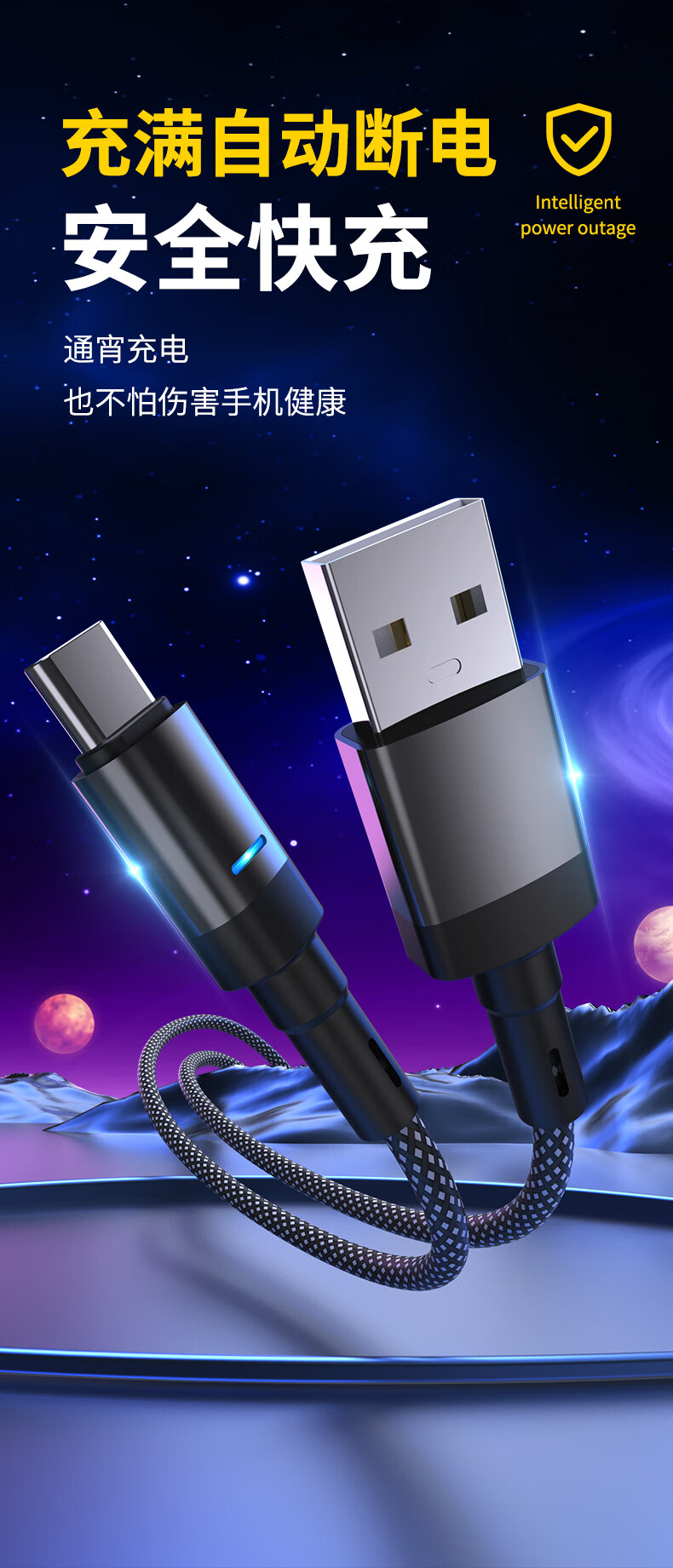 Kofishow 120W fast charging automatic power off data cable type-c suitable for Huawei Honor OPPO Xiaomi vivo car 66W standard charging ordinary chip black 1.0M superconducting fast charging-bold pure copper core