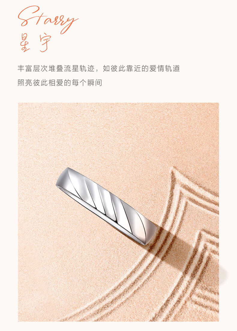 Chow Sang Sang PROMESSA Xingyu Platinum Ring Meteor Trail Couple Ring Men's 95067R Pricing 24 Circles