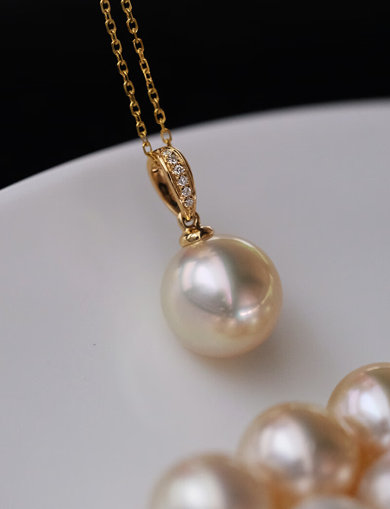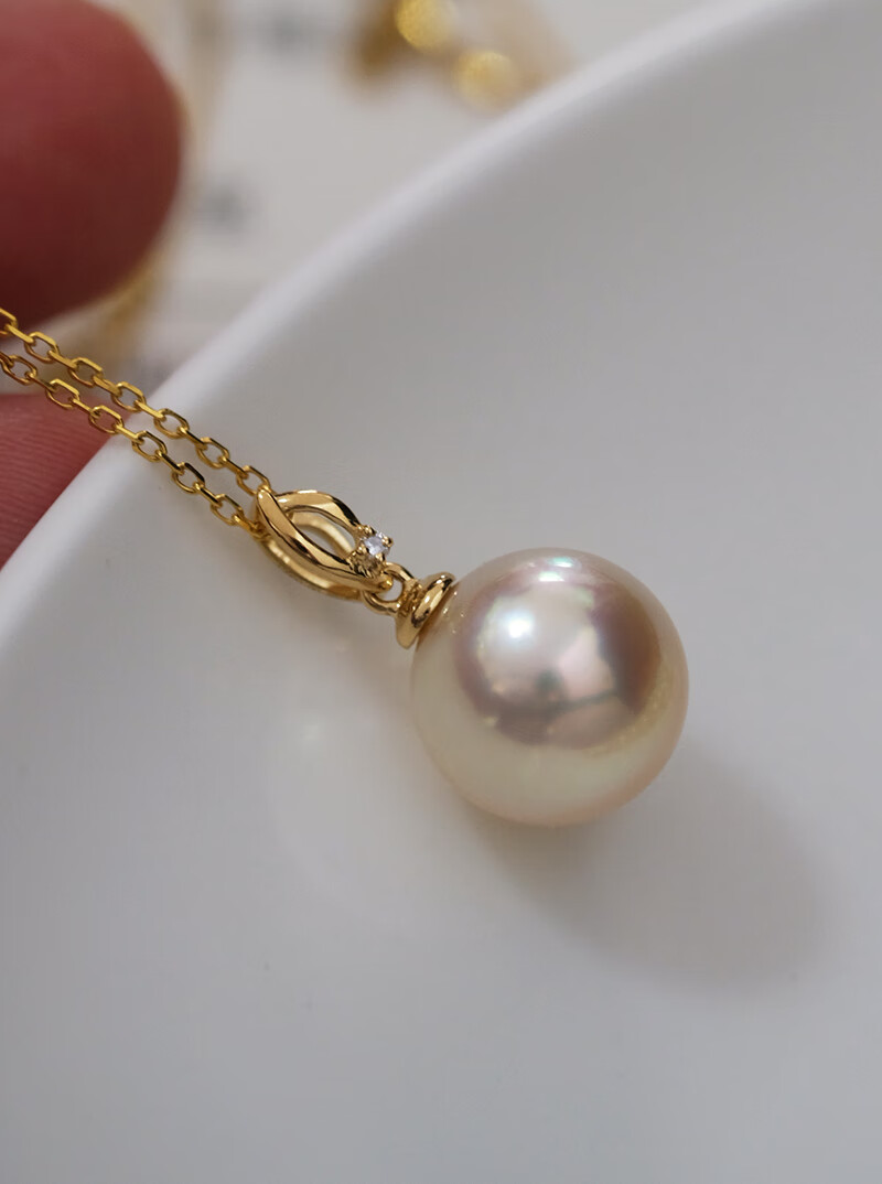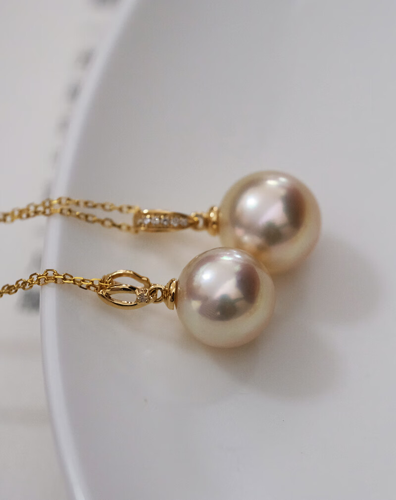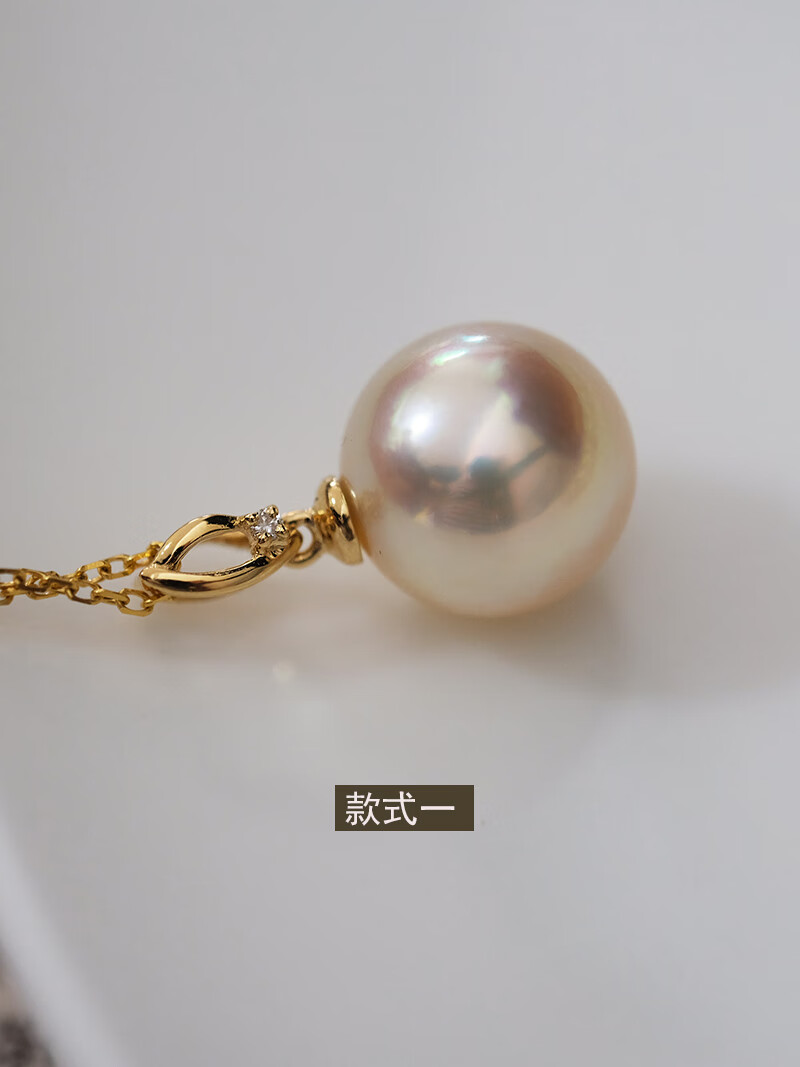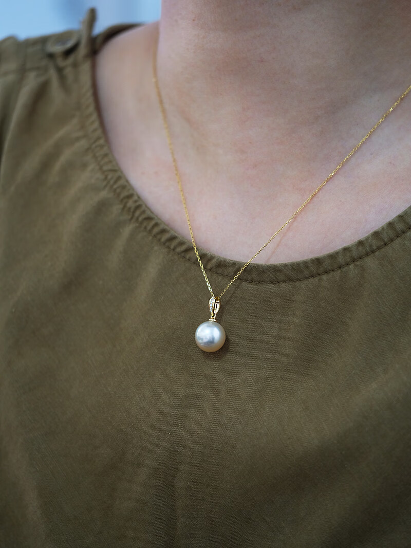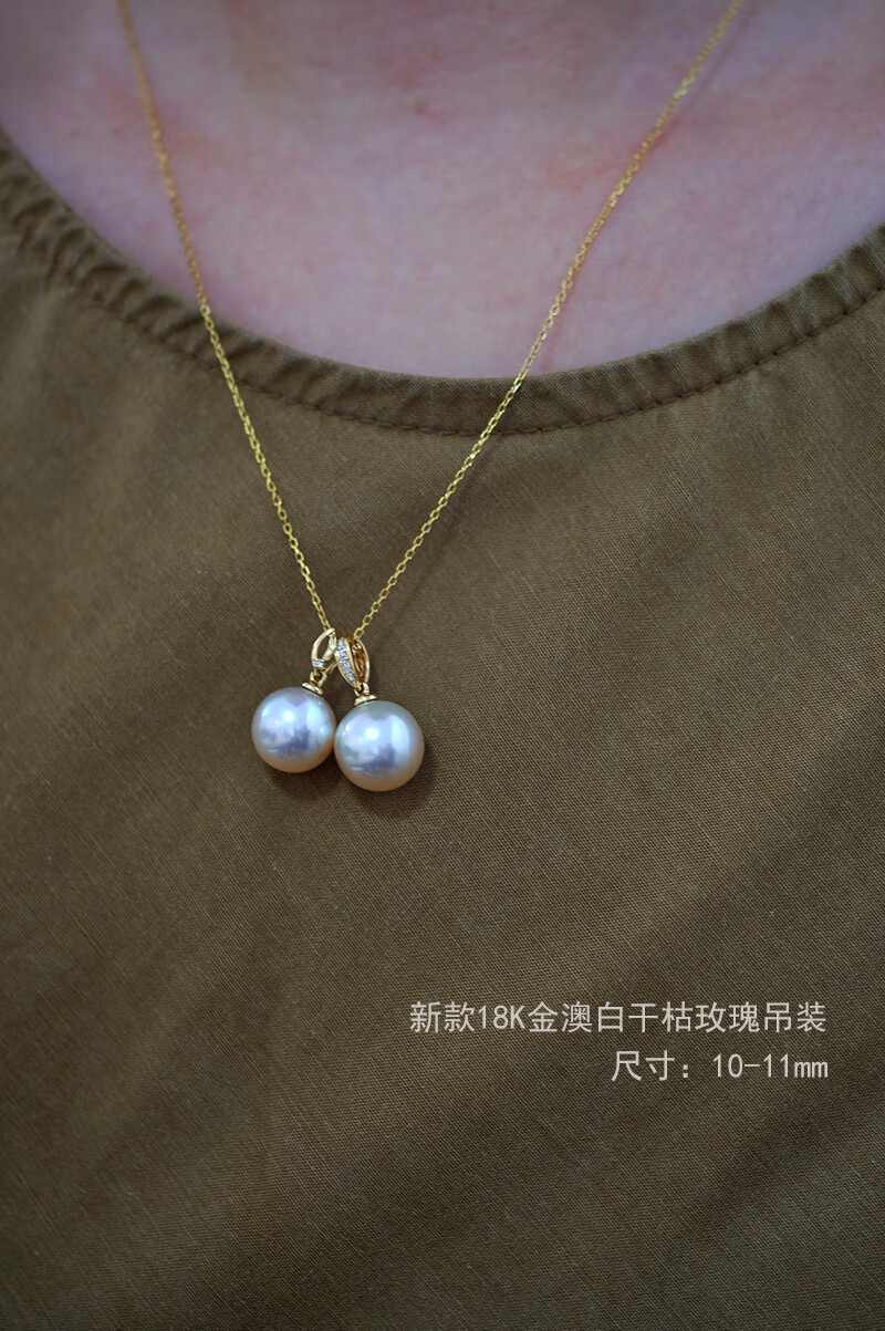 V&C18K Diamond Australian White Dry Rose Pendant Champagne Seawater Pearl Necklace Perfect Round Extremely Bright 10-11 10-11mm Style 2 (excluding chain)