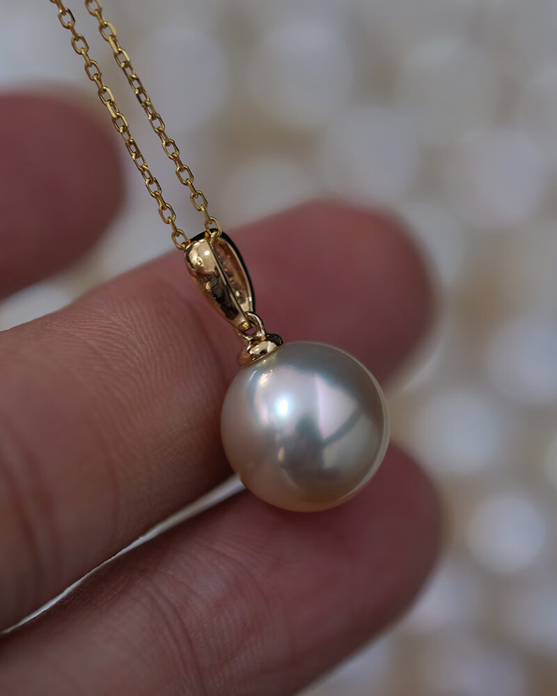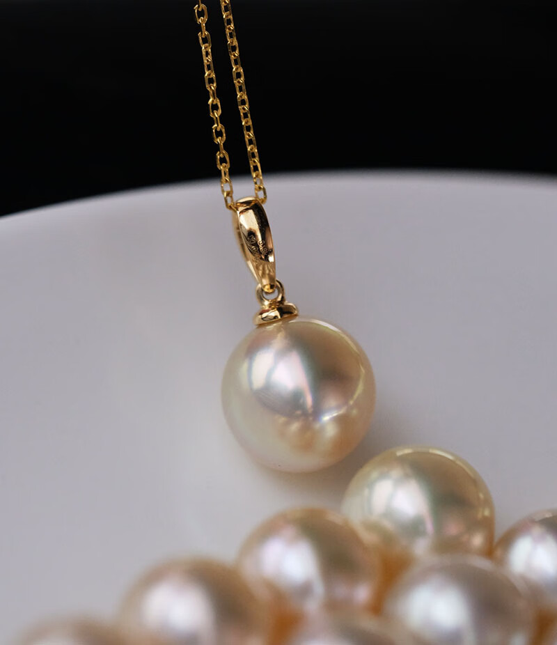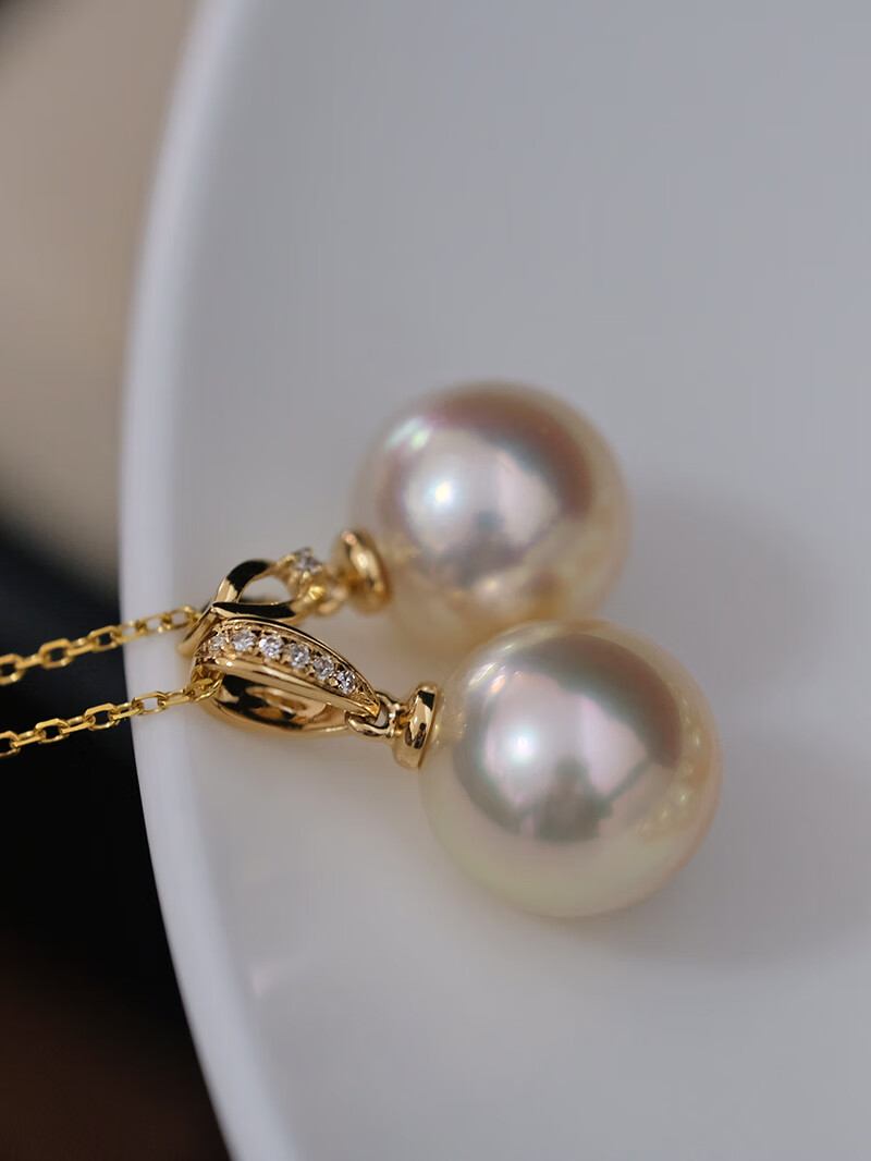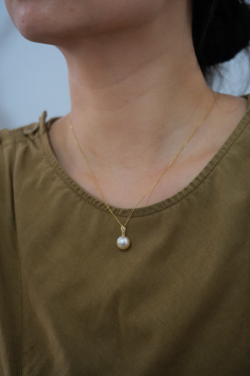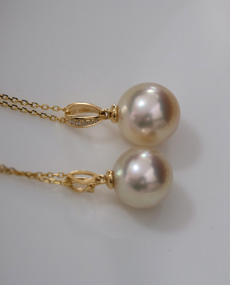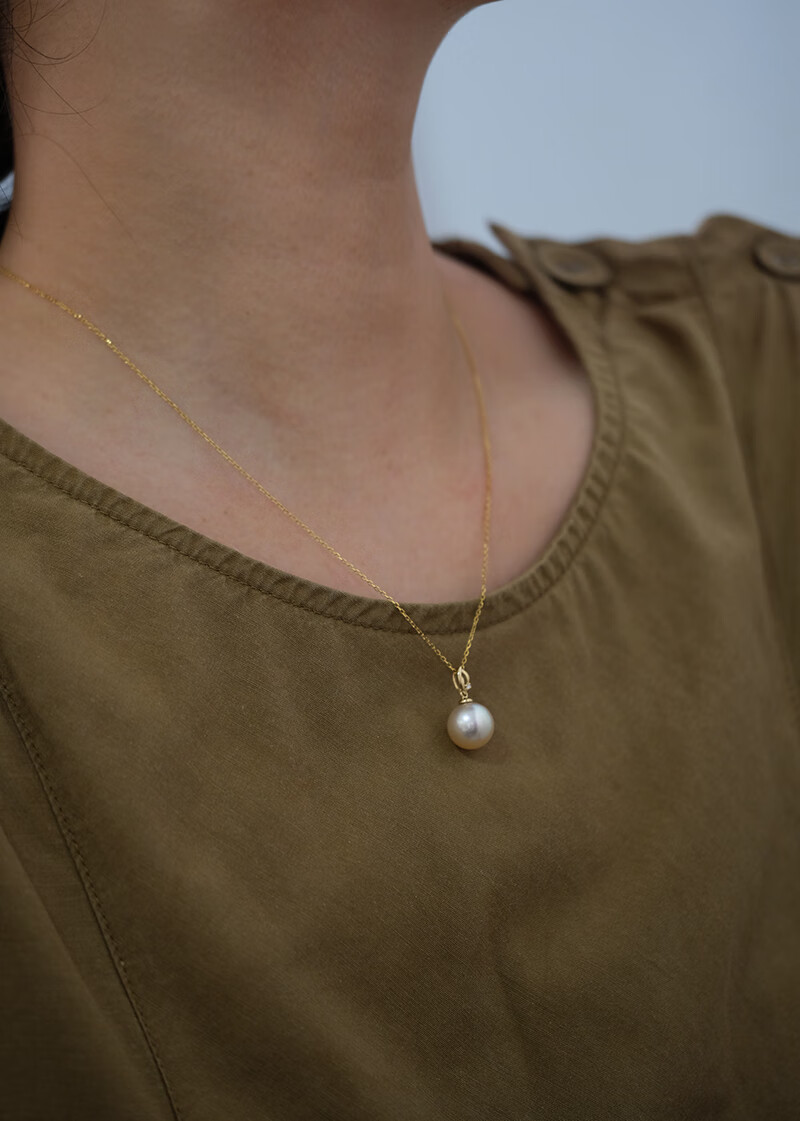 V&C18K Diamond Australian White Dry Rose Pendant Champagne Seawater Pearl Necklace Perfect Round Extremely Bright 10-11 10-11mm Style 2 (excluding chain)