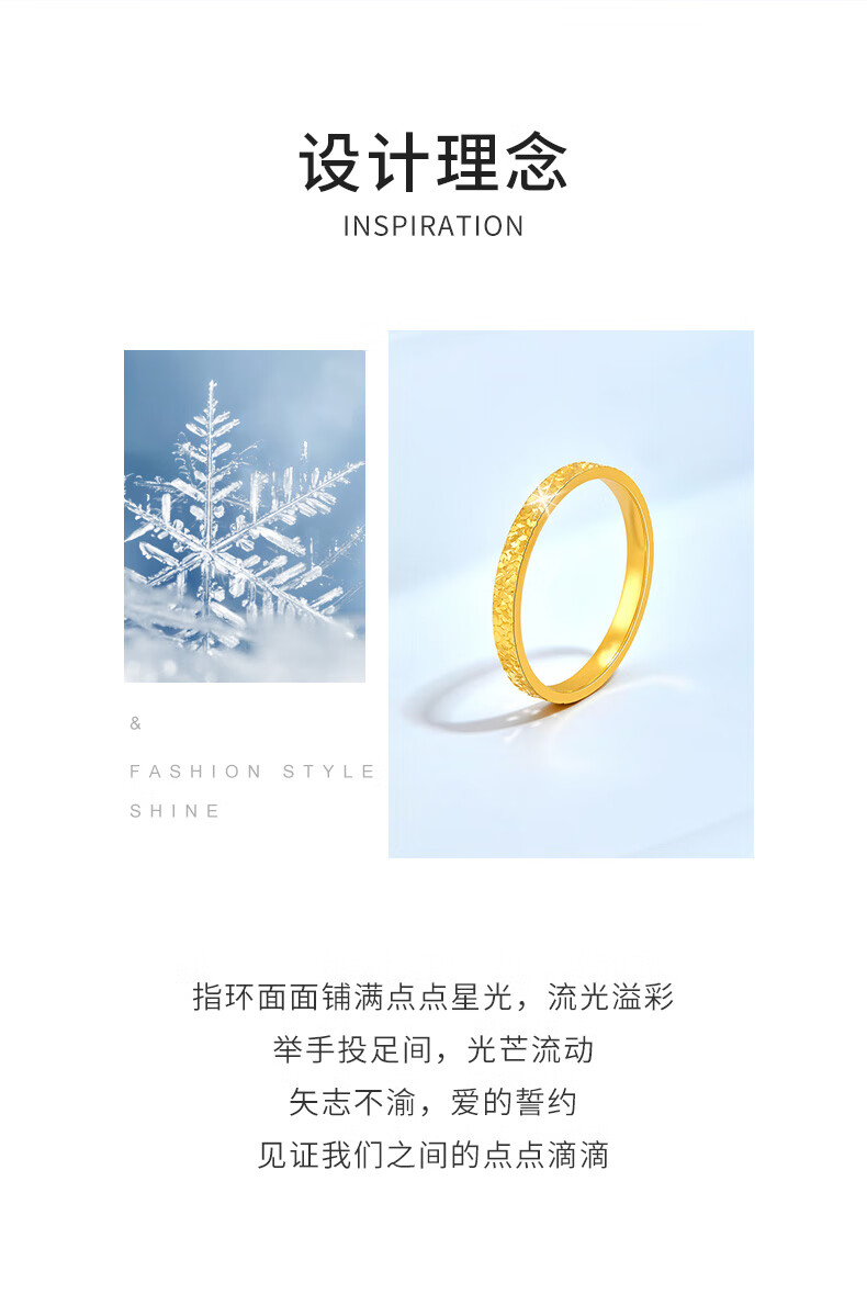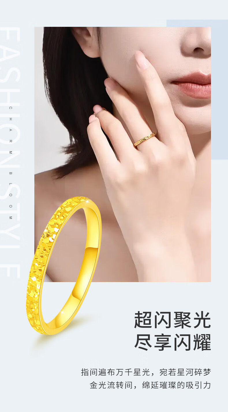 CHINA GOLD Crushed Ice Gold Ring Women's Crushed Gold Pure Gold Ring Valentine's Day Practical Birthday Gift for Girlfriend and Wife Women's No. 11 About 1.2g