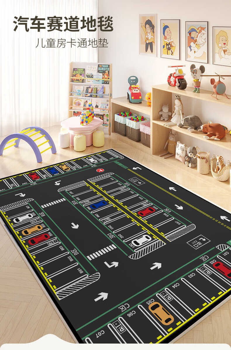 Guiqi cartoon carpet household children's room crawling mat parking lot living room sofa coffee table mat kindergarten game mat parking lot simulation parking space carpet 80*120cm