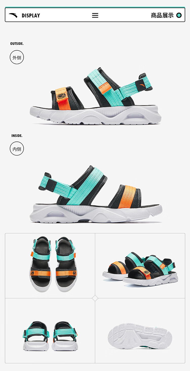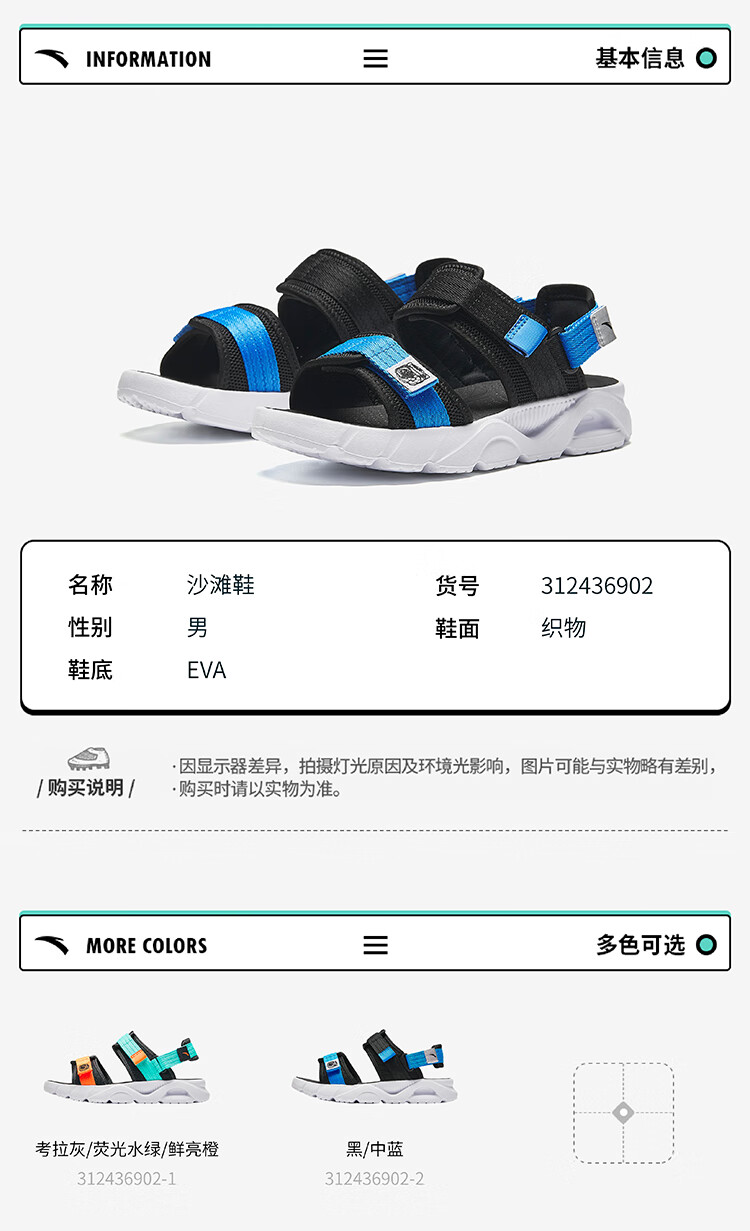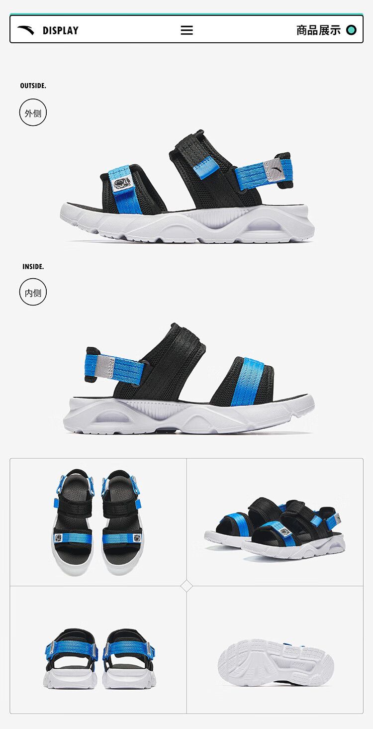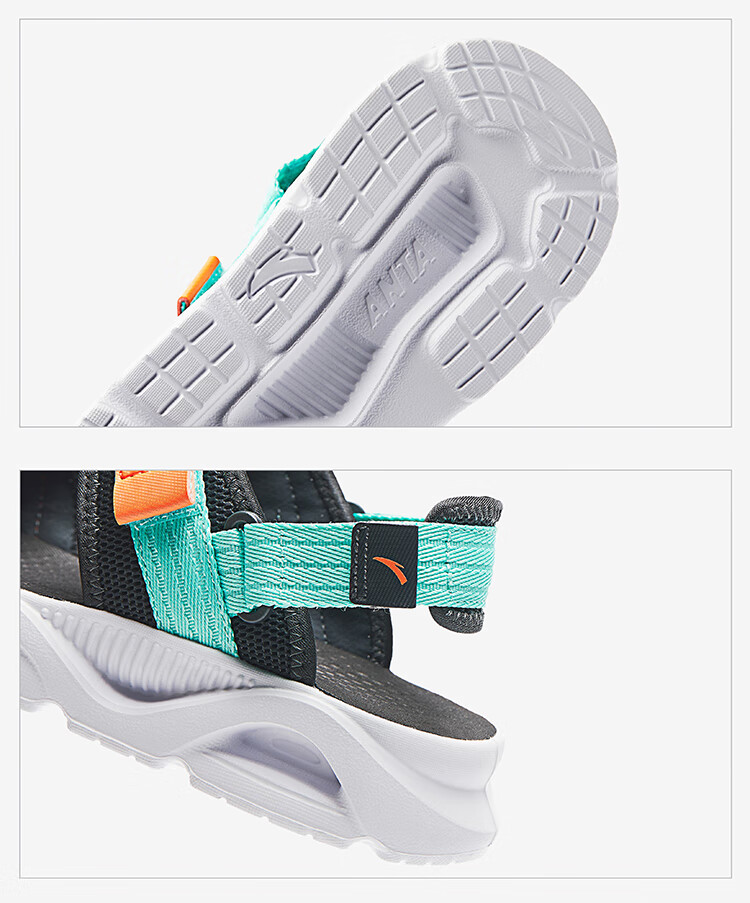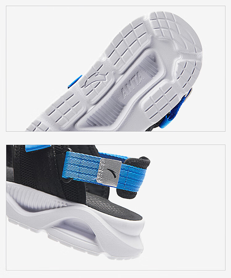 ANTA children's sandals, boys' beach shoes, summer open-toe arch student outdoor sandals, black/medium blue-2 33, inner length 20.5cm