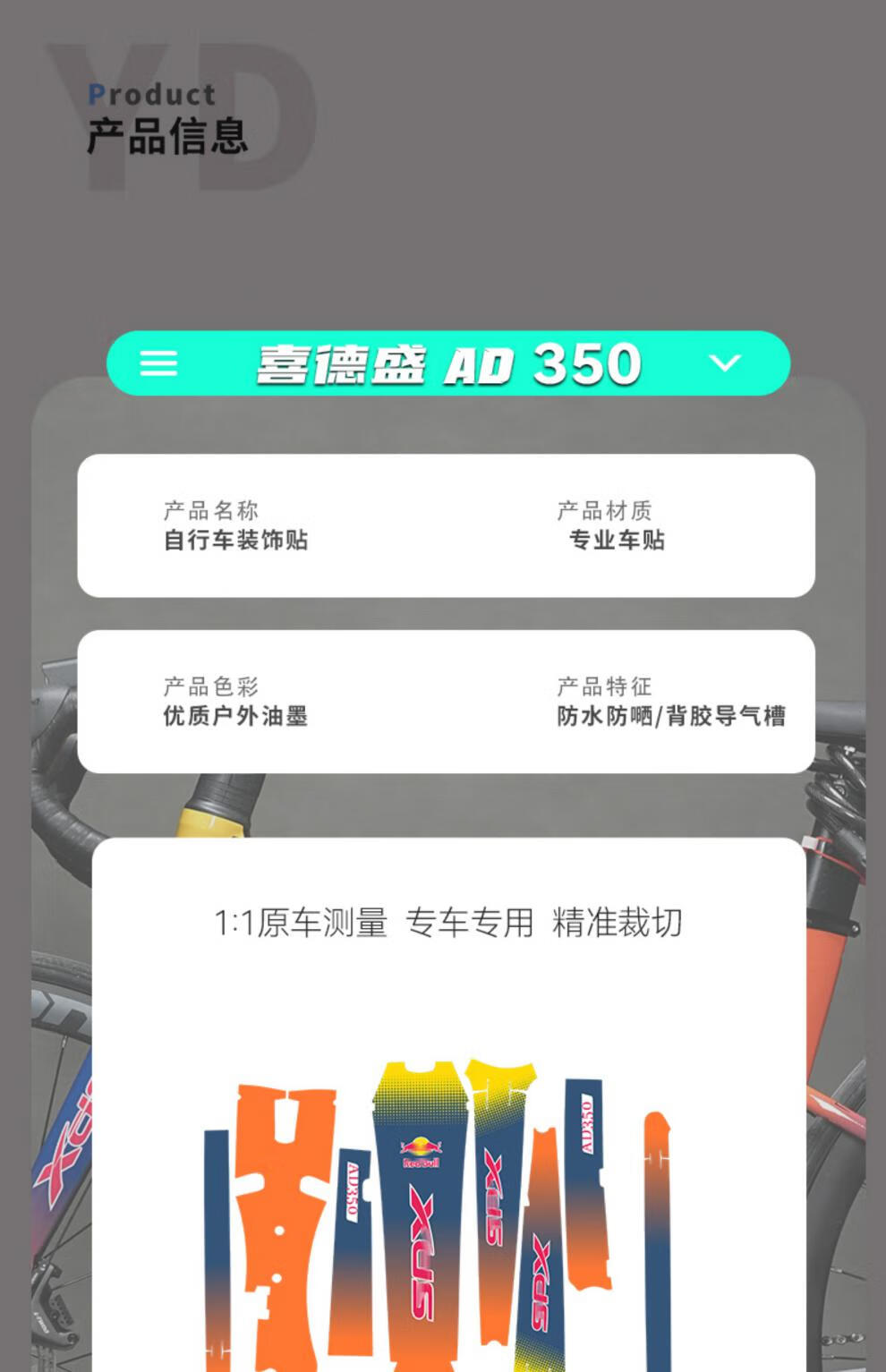 Guka (guka) Xide Sheng AD350 tire sticker Xide Sheng AD350/300 full car sticker road frame print latte art (45 yards) Red Bull-full car latte art
