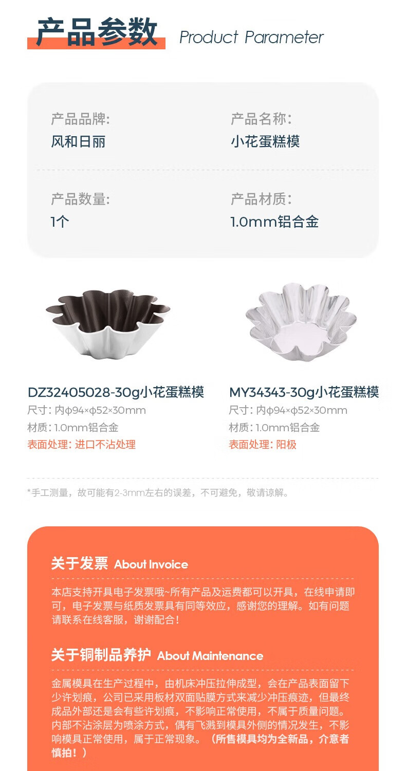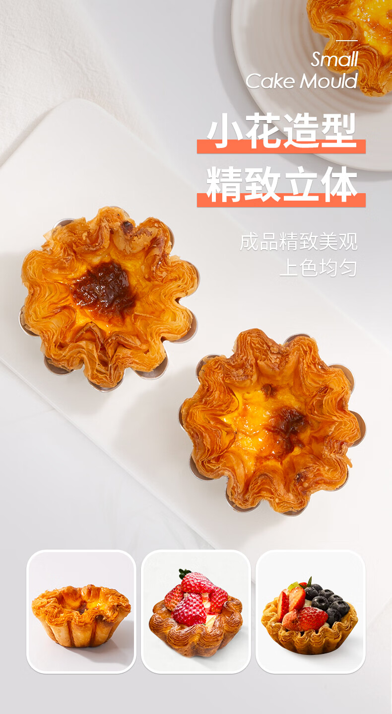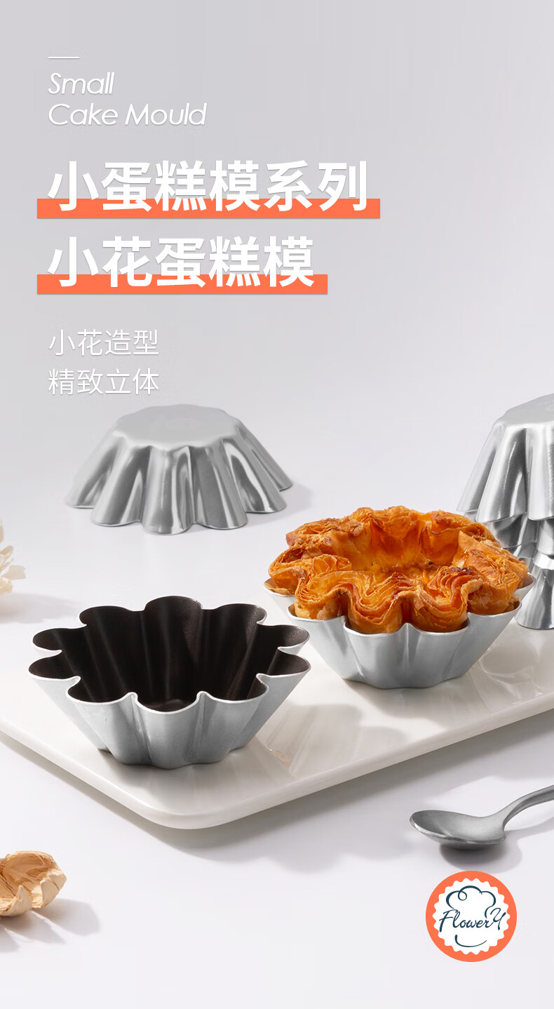 Fenghelili flower cake mold anode flower-shaped non-stick French egg tart chrysanthemum pudding mold croissant commercial baking tool anode flower cake mold-single MY34343