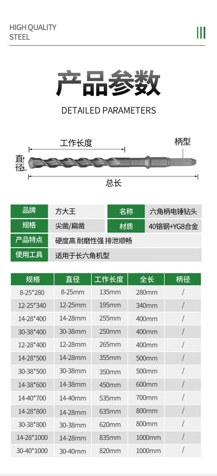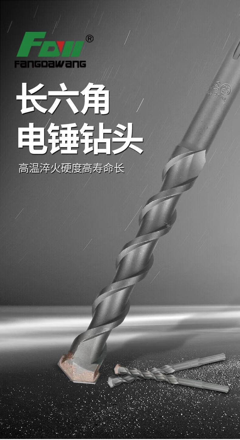Fang Dawang five-pit drill bit electric hammer drill bit SDS-MAX extended wall turn head special two-pit three-slot impact drill bit for planting bars 22*800mm five-pit drill bit