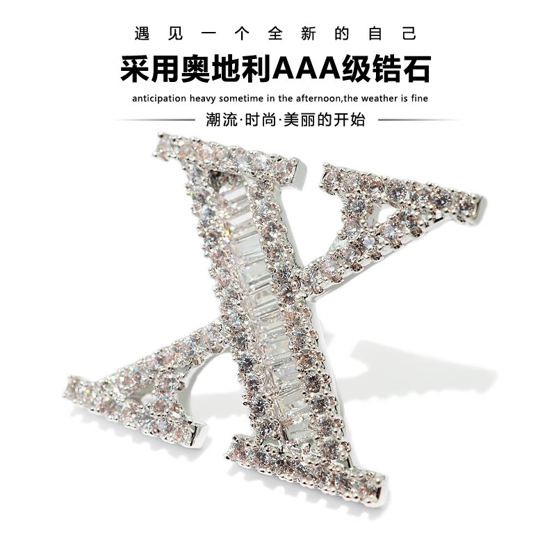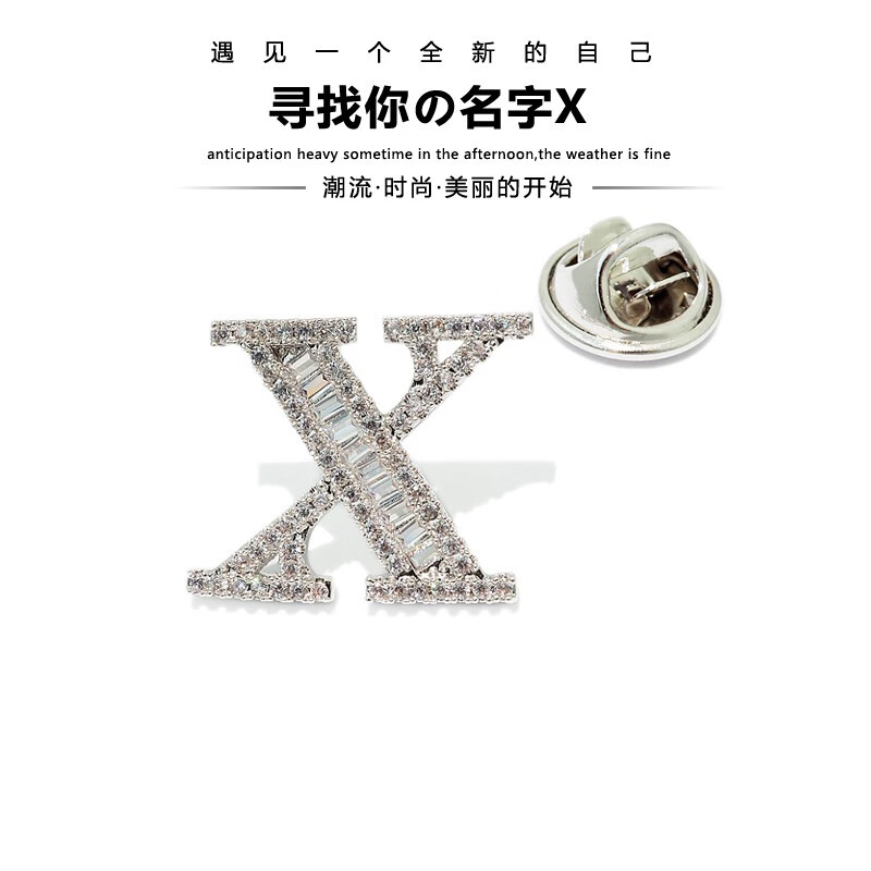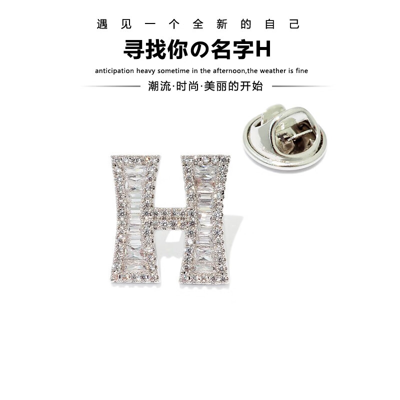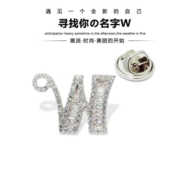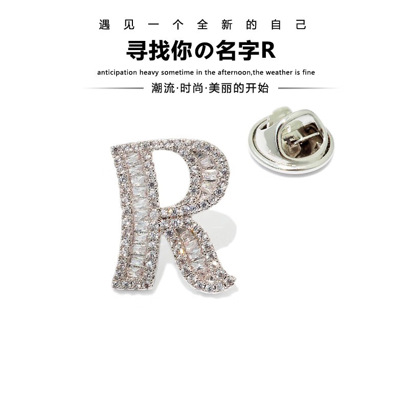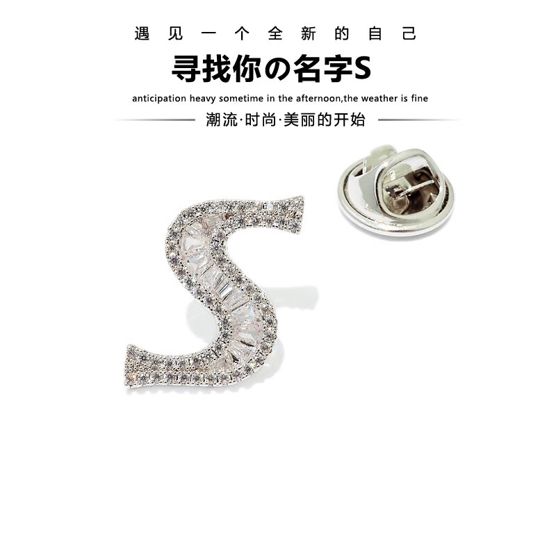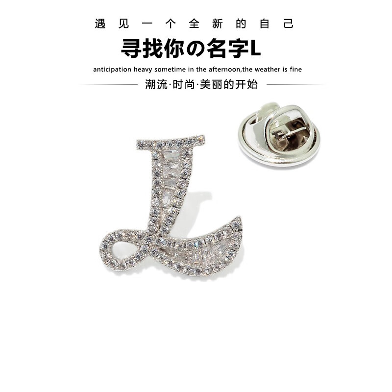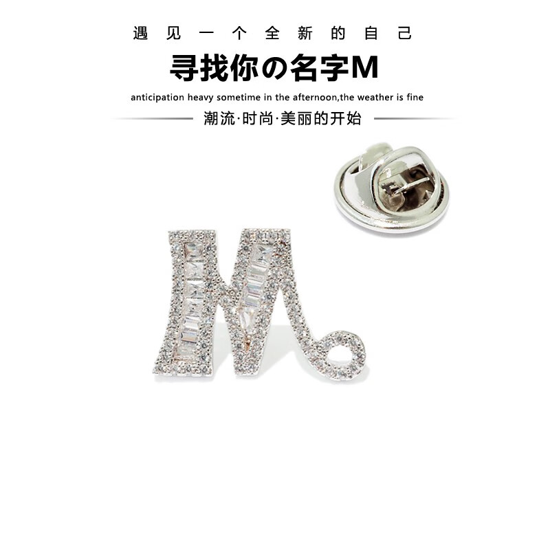 QUAMER gold store style your name personalized Korean letter brooch women's anti-exposure buckle suit pin fixed your name A