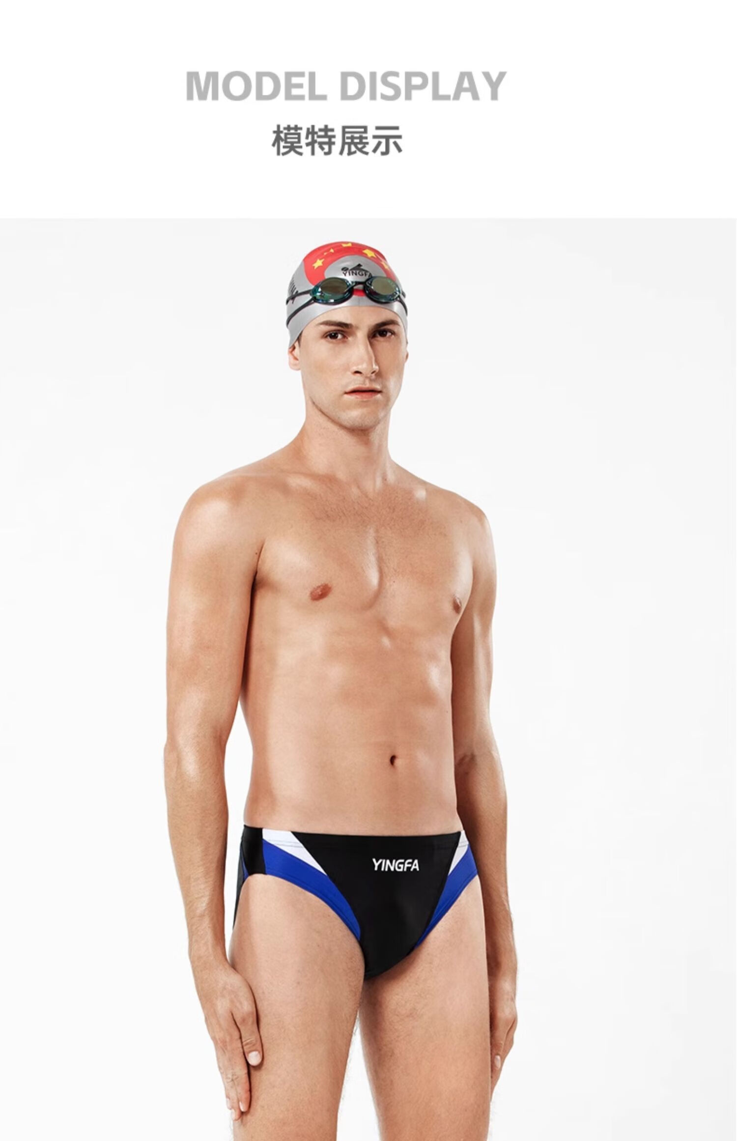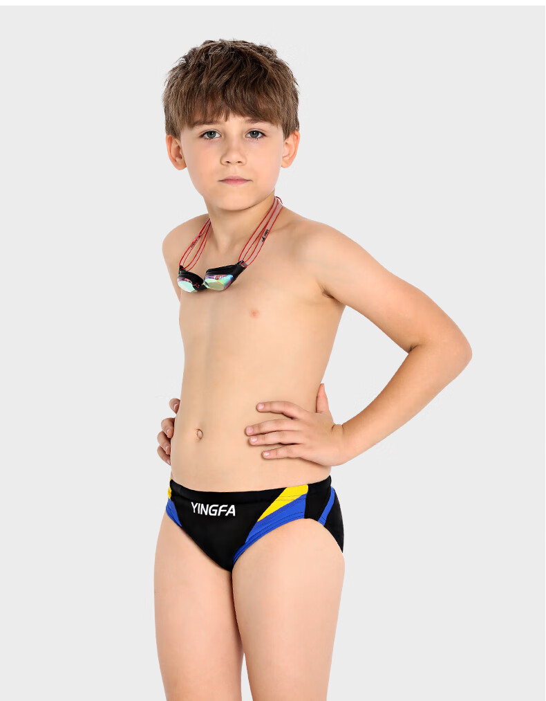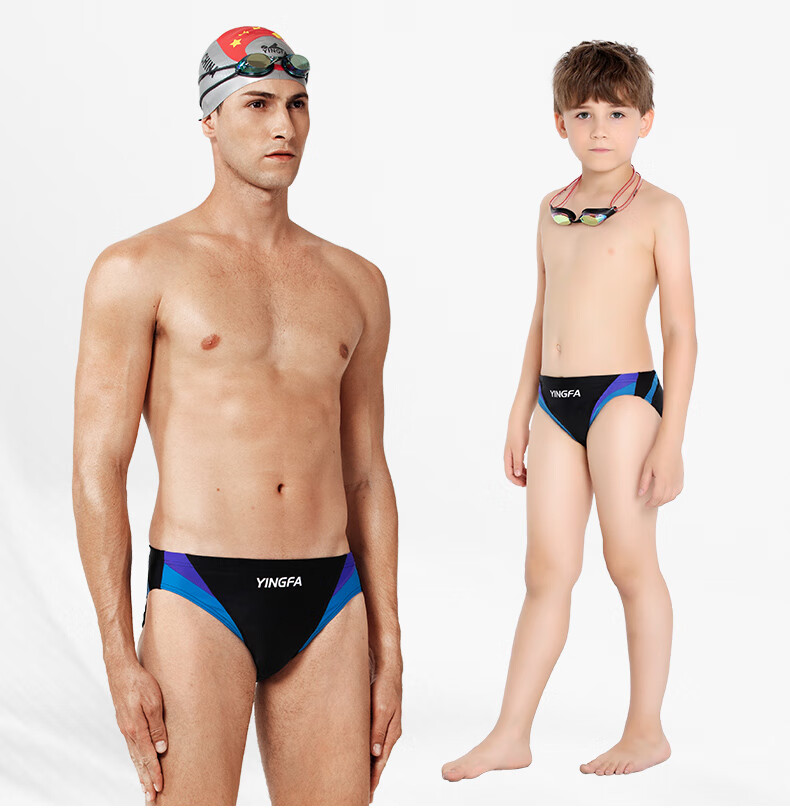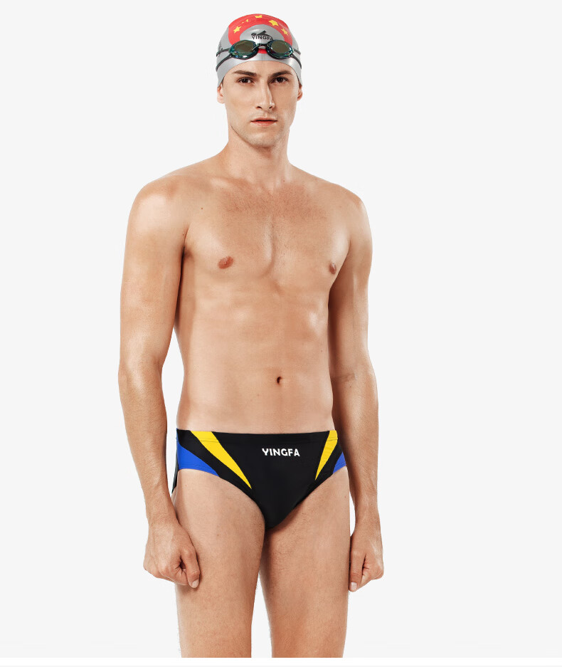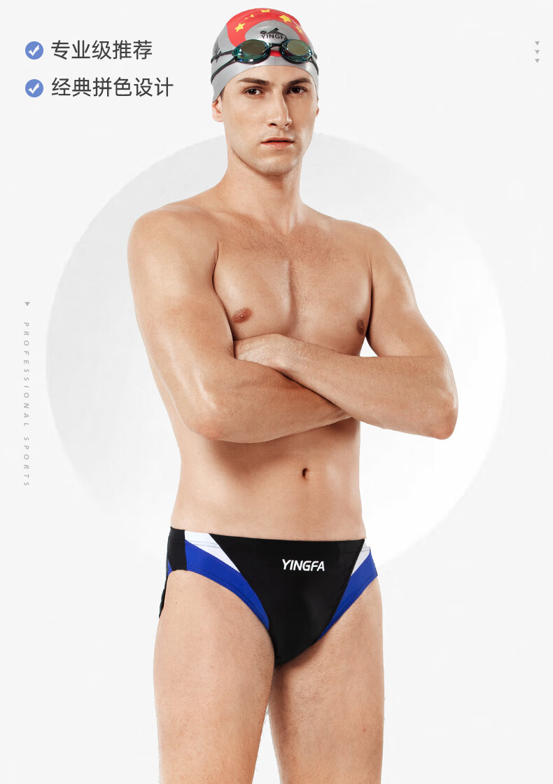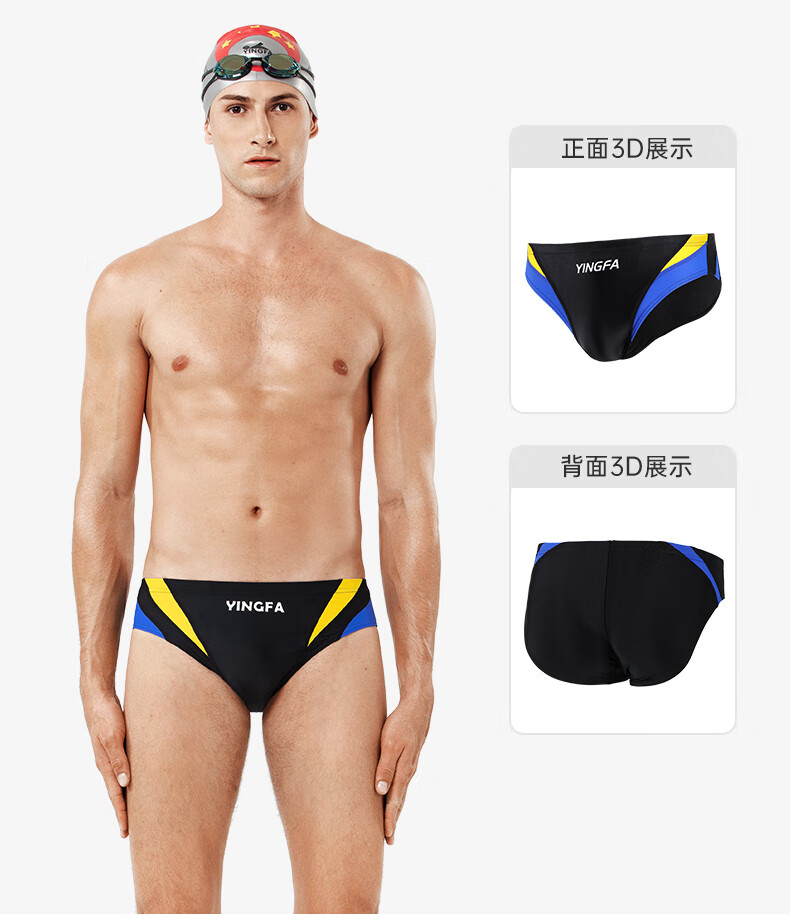 英发男士大码三角拼色泳裤泳衣儿童成人学生青少年游泳比赛训练游泳裤 蓝拼橙9617-4 XXL【建议体重100-120斤】