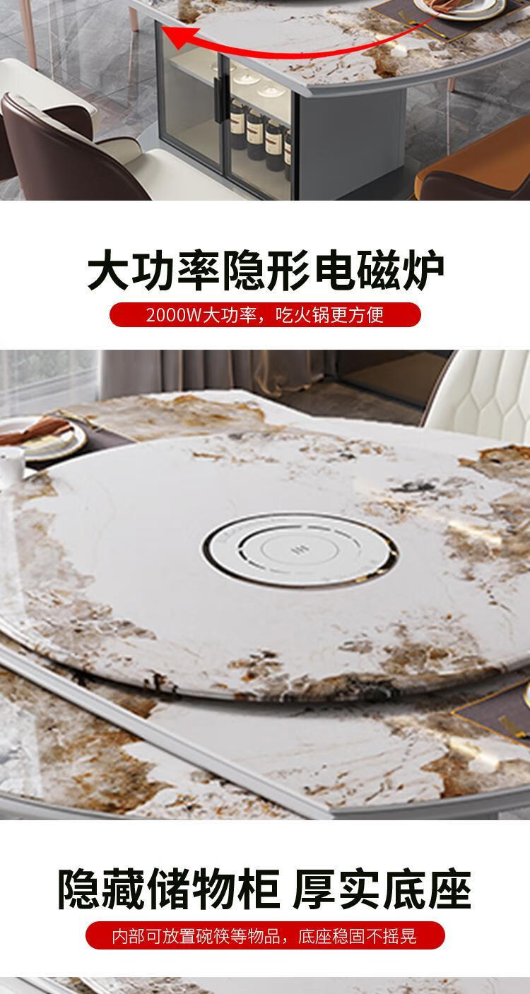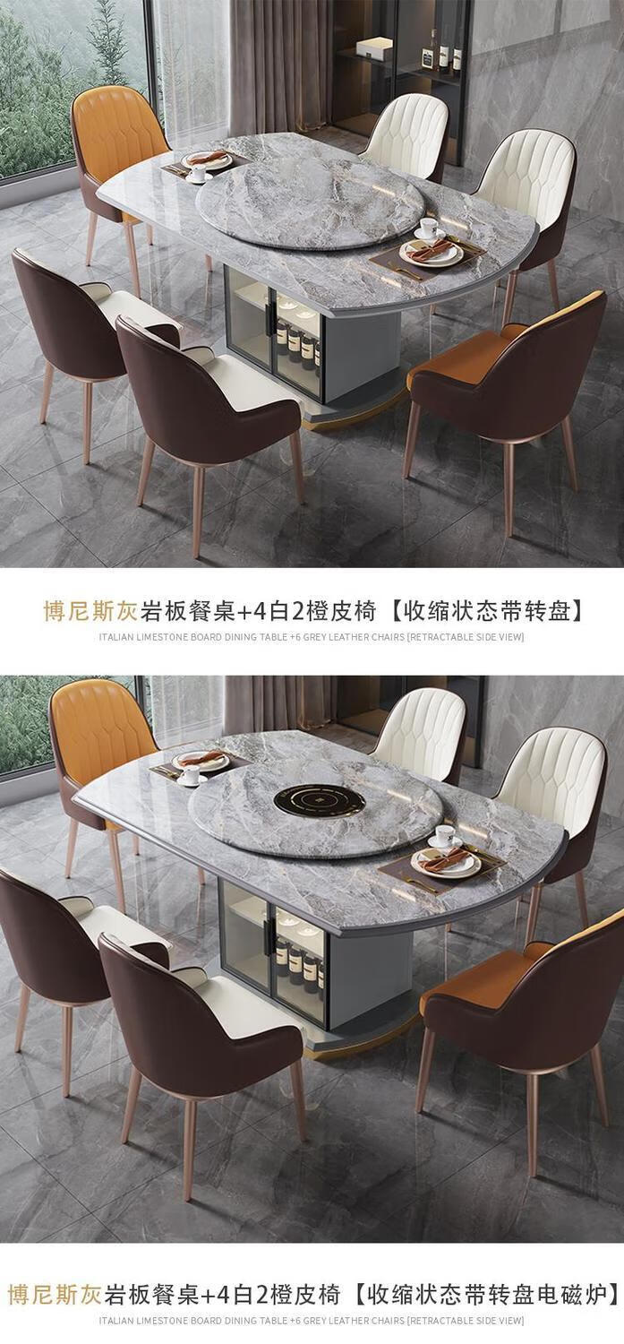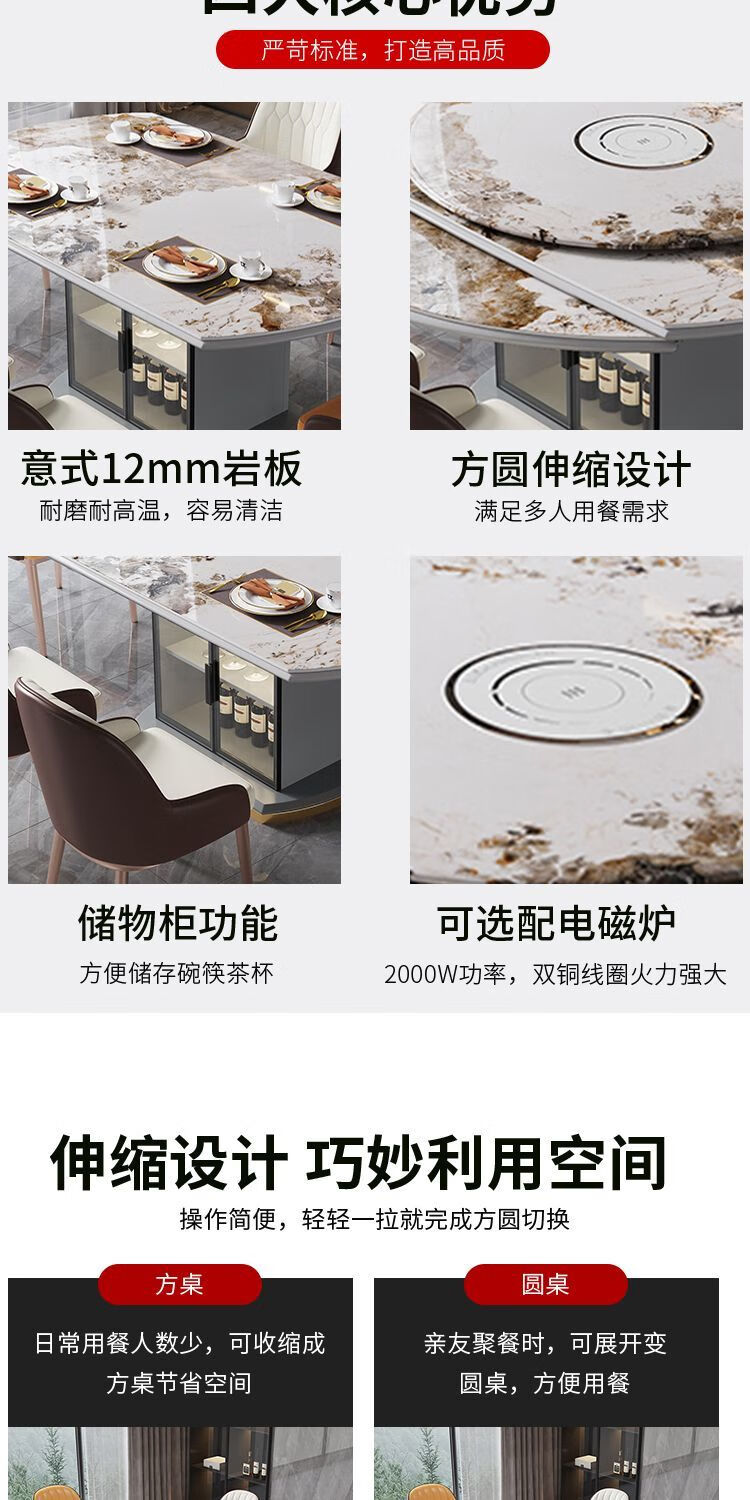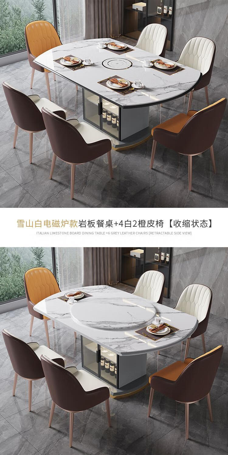 2025 new storage slate dining table and chair combination foldable square and round table retractable induction cooker 1.2mm bright slate turntable induction cooker 1.5 meters 10 chairs