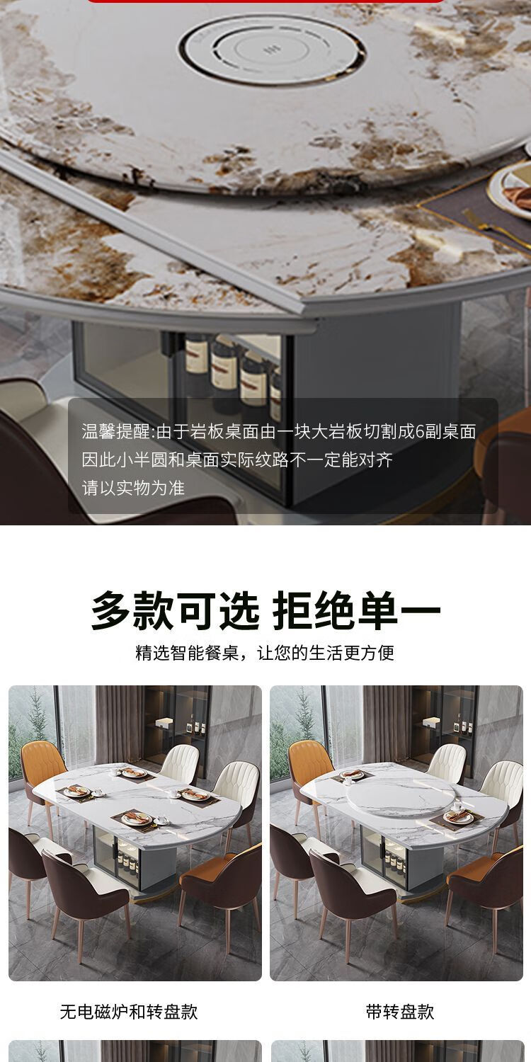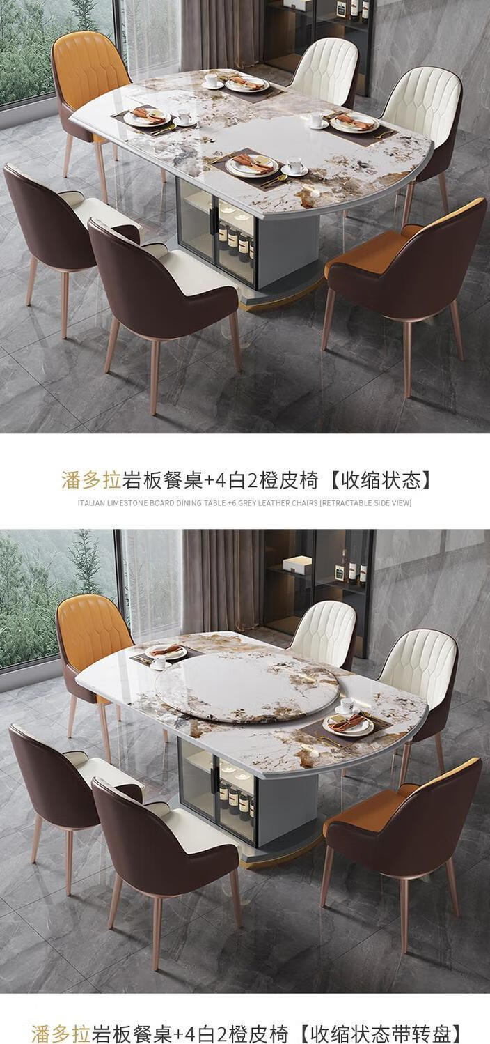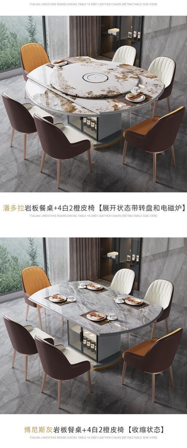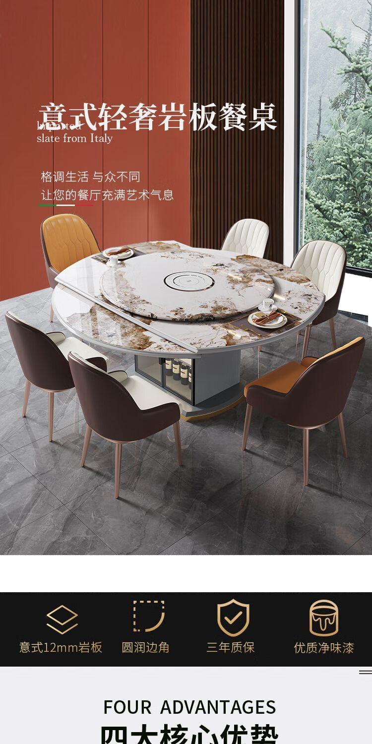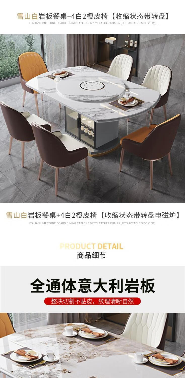 2025 new storage slate dining table and chair combination foldable square and round table retractable induction cooker 1.2mm bright slate turntable induction cooker 1.5 meters 10 chairs