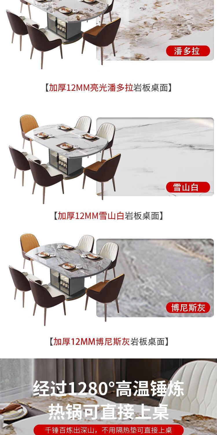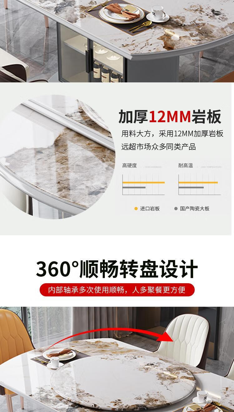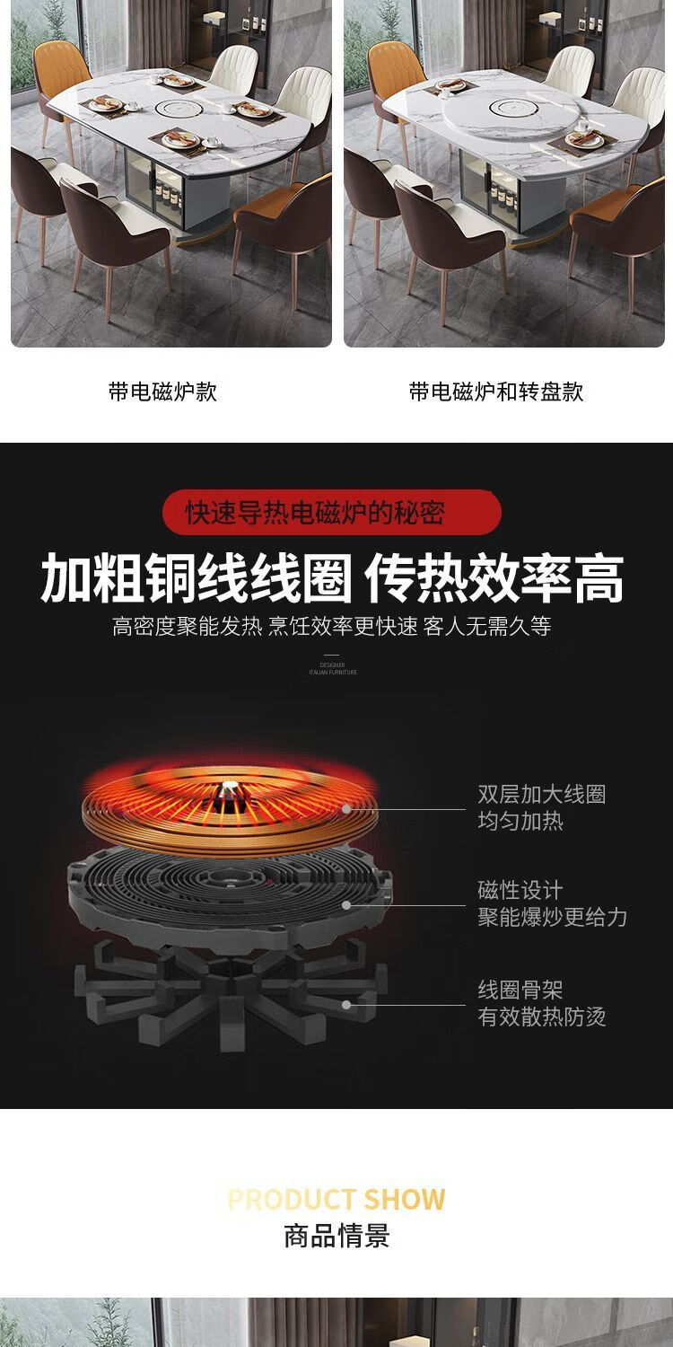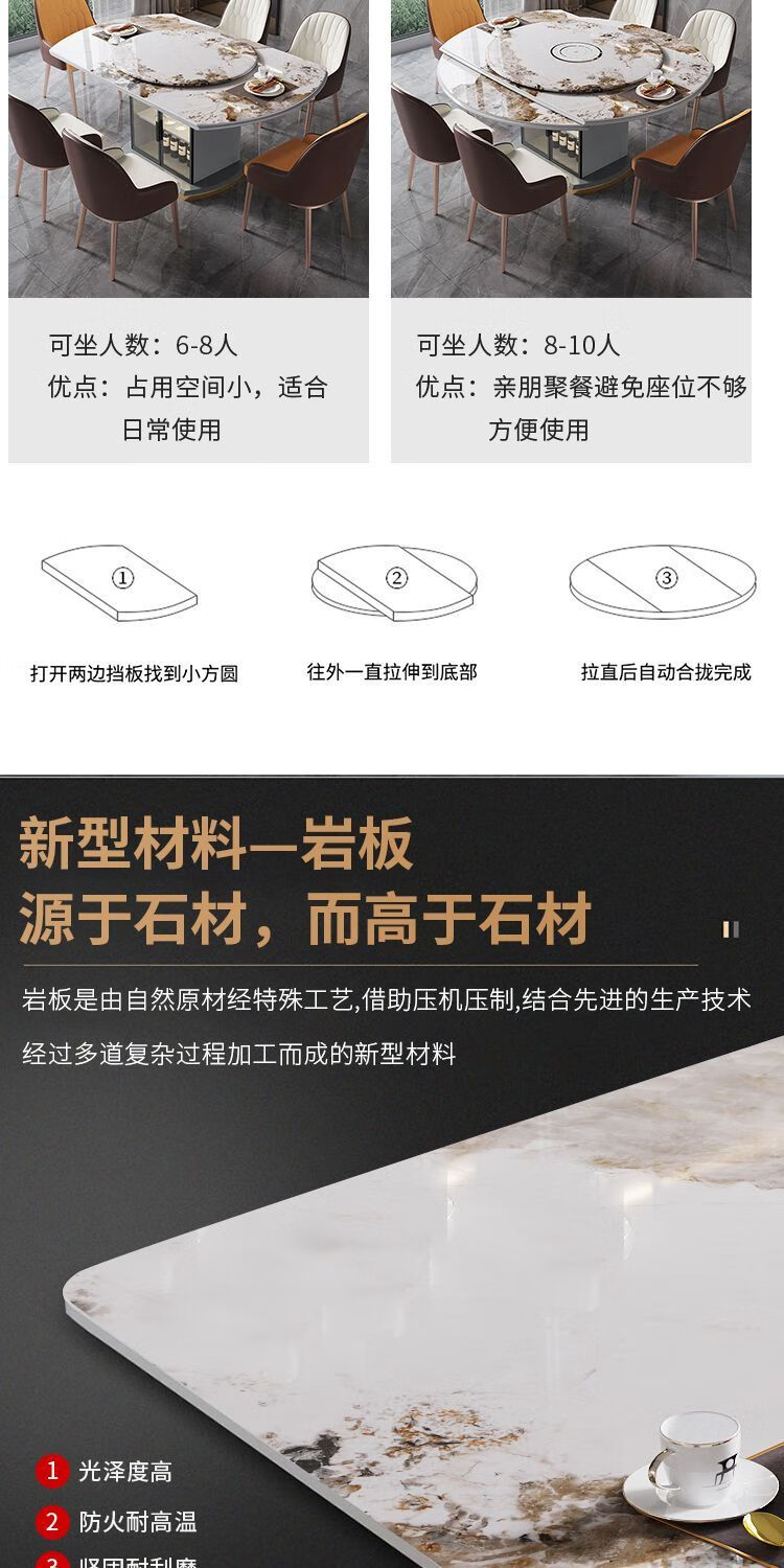 2025 new storage slate dining table and chair combination foldable square and round table retractable induction cooker 1.2mm bright slate turntable induction cooker 1.5 meters 10 chairs