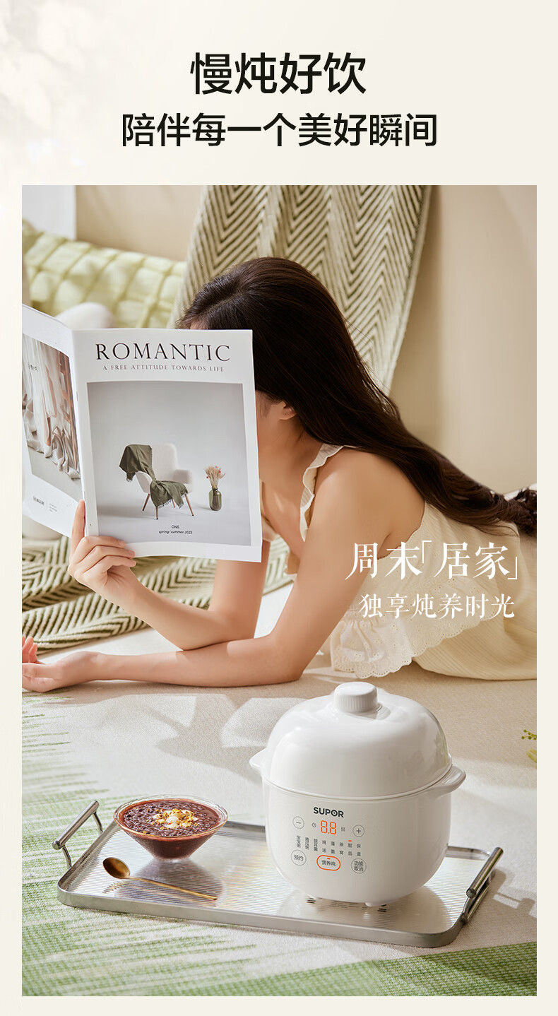 SUPOR electric stew pot, soup pot, 1 liter mini water-proof stew pot, ceramic smart reservation, multi-functional, small 1-2-3 people, household baby food supplement pot, bird's nest artifact 1L DZ10YC882