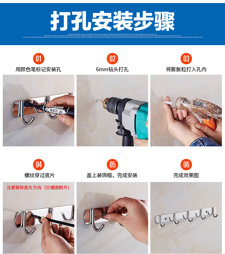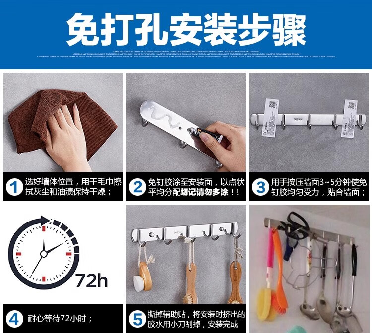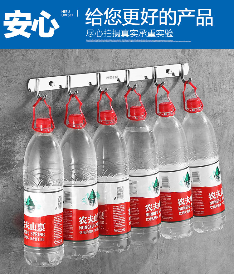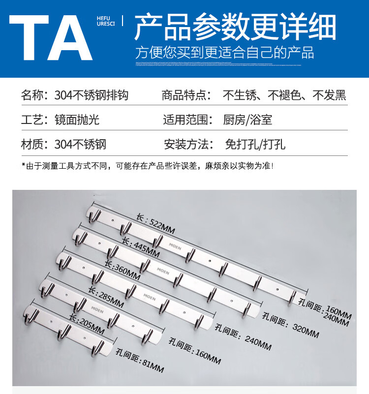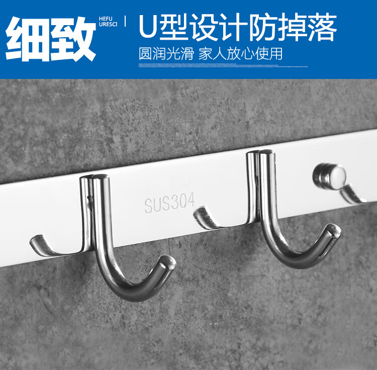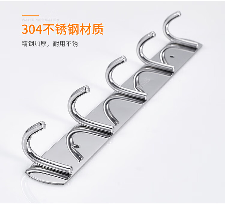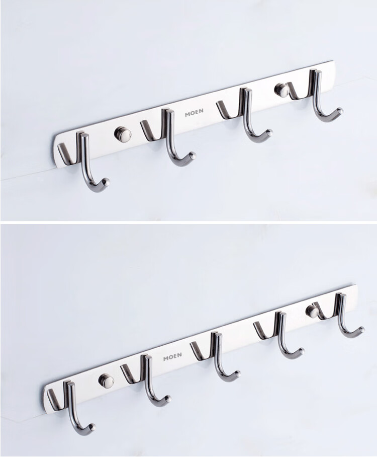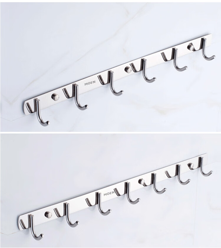 MOEN punch-free 304 stainless steel row hooks coat and hat hooks kitchen hooks bathroom bedroom door back towel wall hook 304-5 hook 36cm