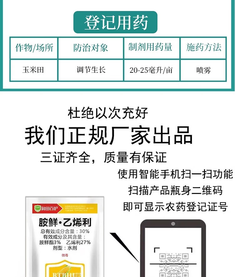 30% amine fresh ethephon, special growth regulator for corn, chlormequat, special fertilizer to control growth, resist lodging and increase yield 300ml