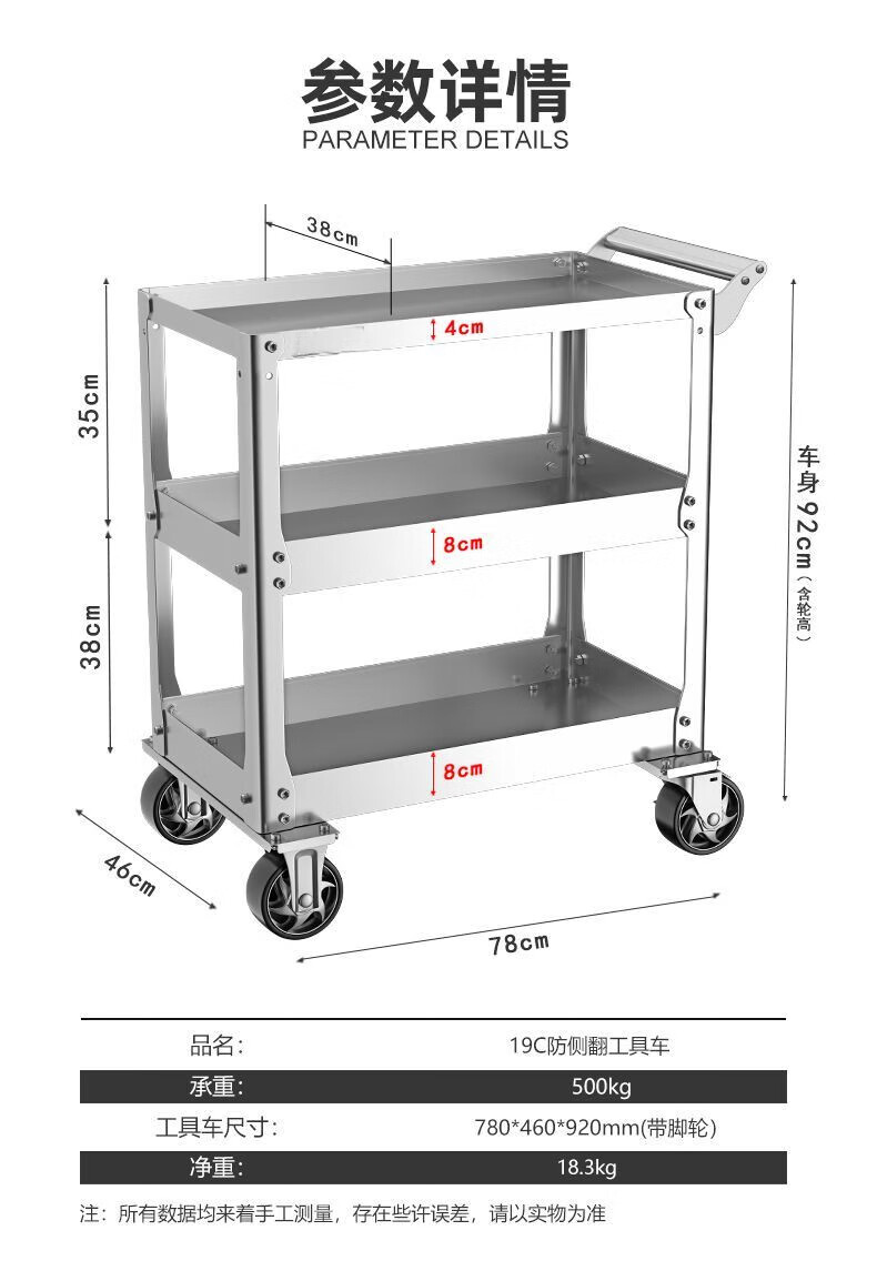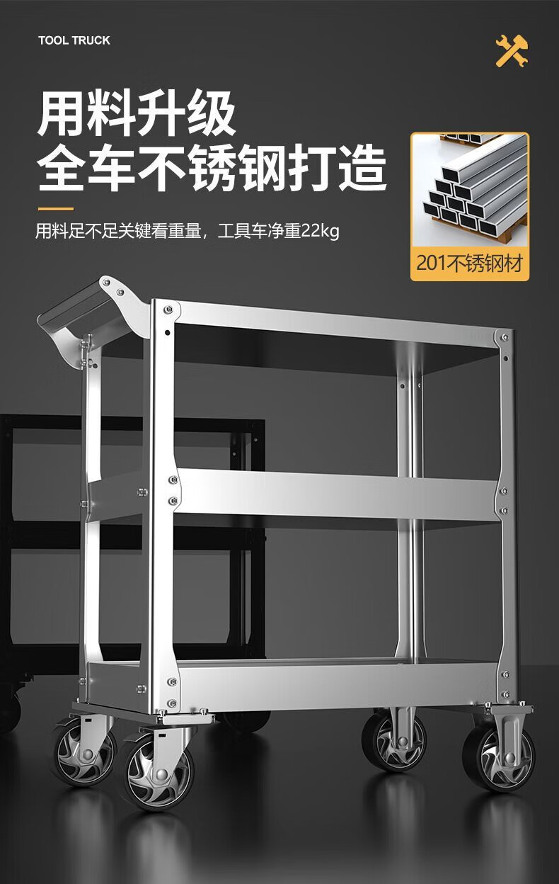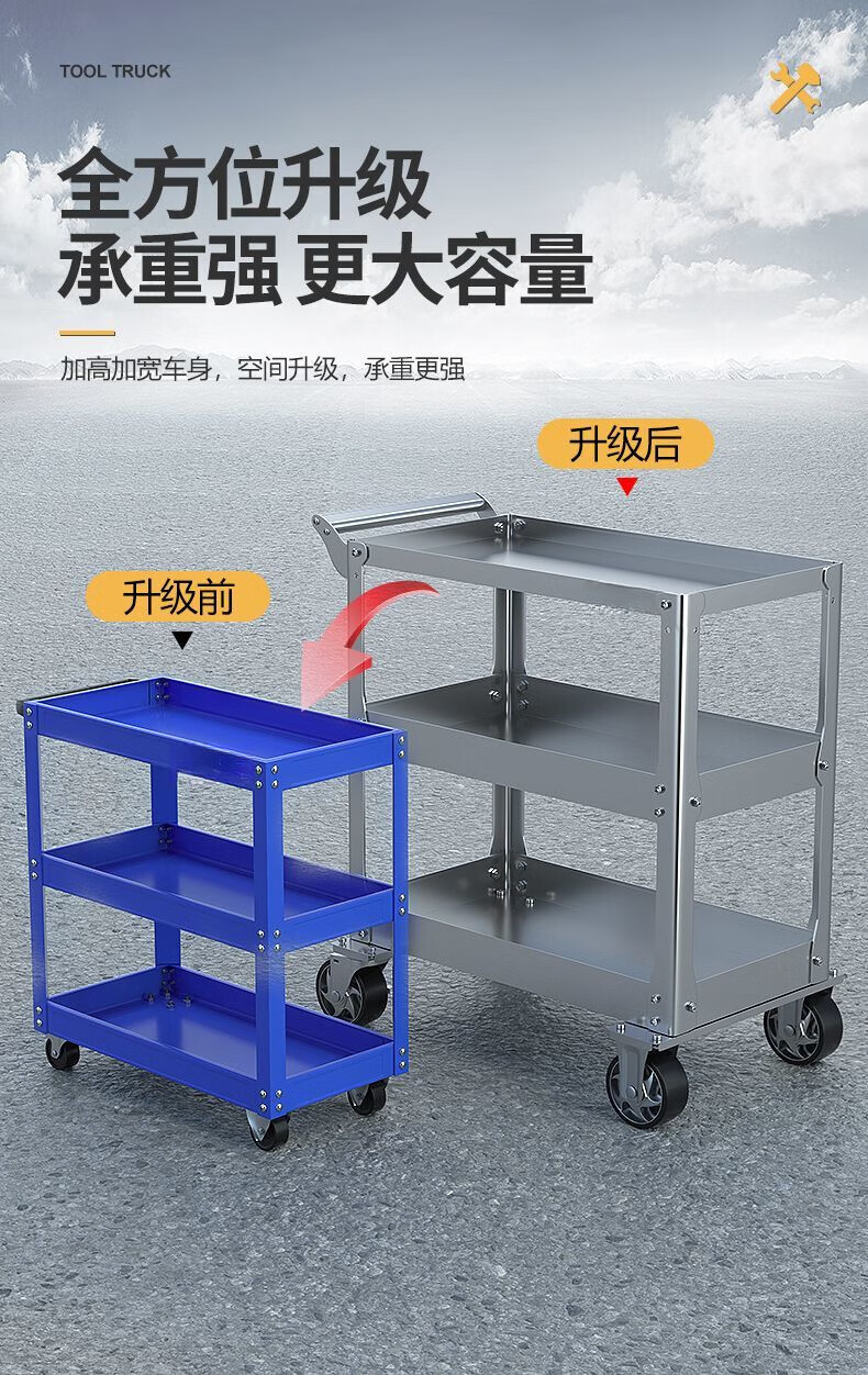 FANCYCHIC tool cart stainless steel trolley three-layer multi-functional workbench mobile wheeled workshop auto repair and maintenance 19C blue gray tool cart widened to prevent rollover