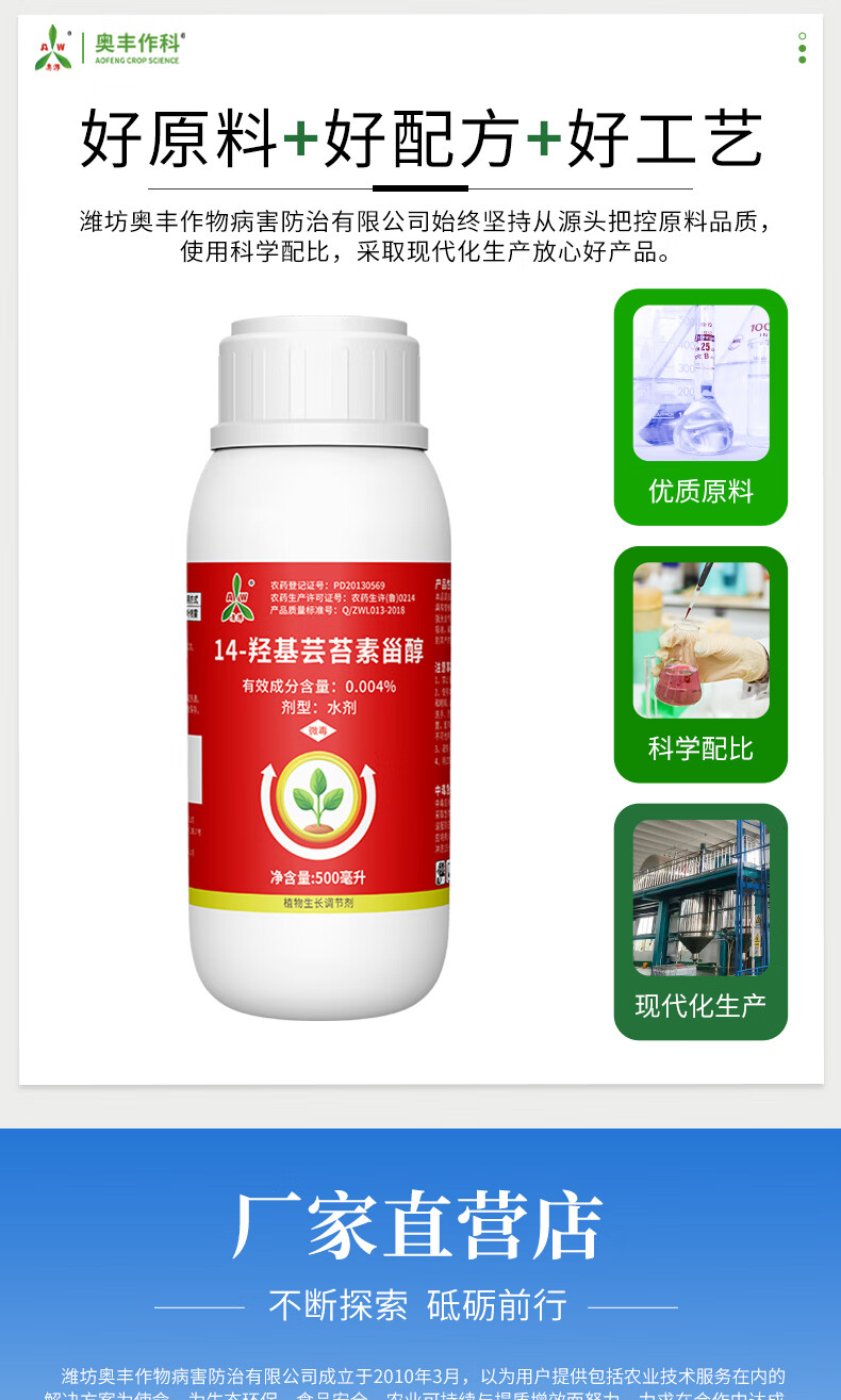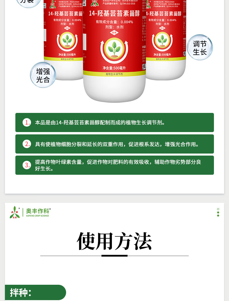 Aofeng boss lady 14 hydroxybrassinoids highly active Aowei old brand agricultural fruit tree, vegetable and flower growth regulator to promote photosynthesis 500ml*2 bottles