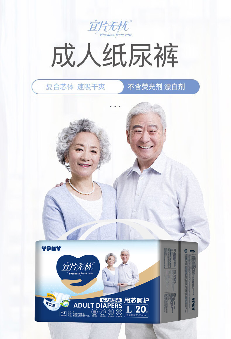 Yipian worry-free adult diapers for the elderly, leak-proof and comfortable diapers, XL size 1 box (4 packs)