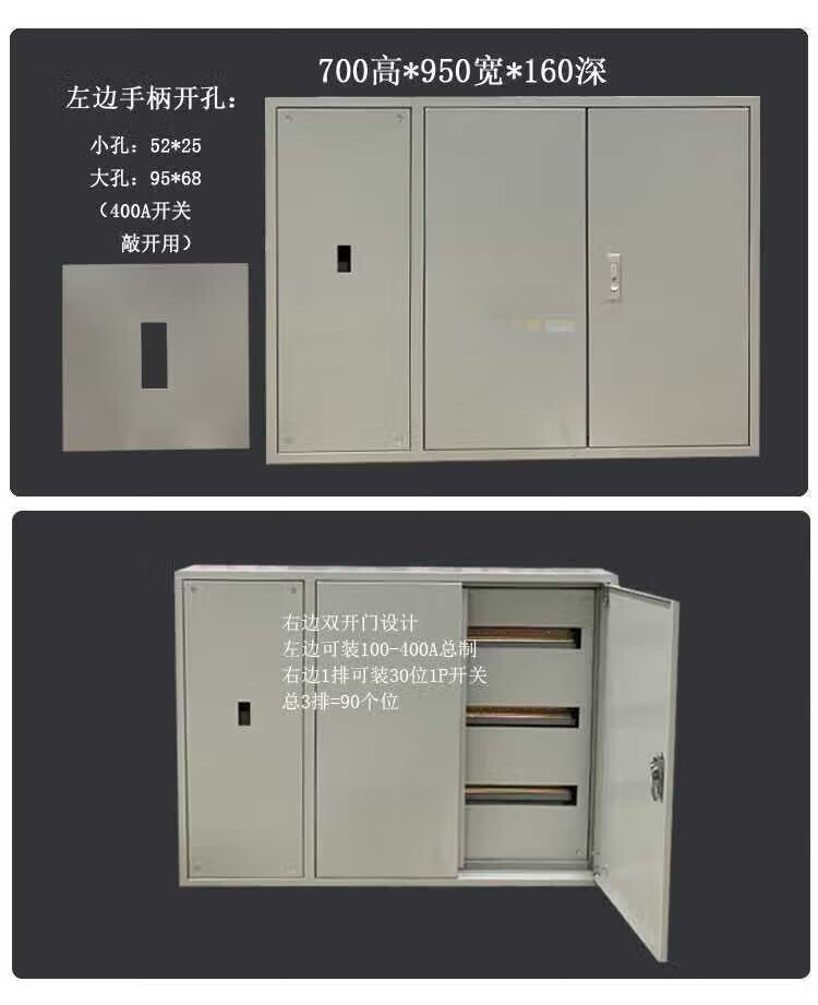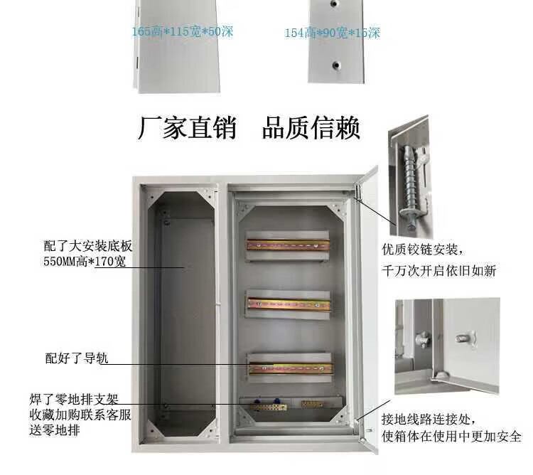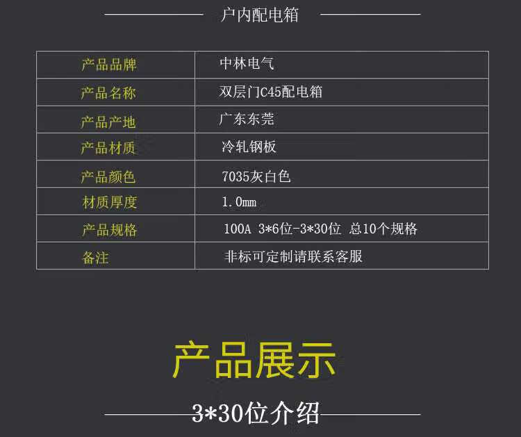 Zhiye double-door C45 distribution box customized complete set of engineering lighting switch box 100A total cabinet thickness 3 3*6 positions