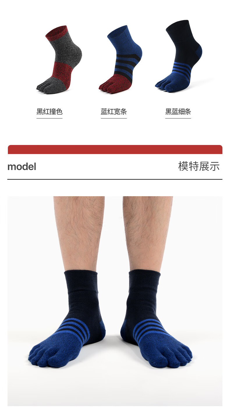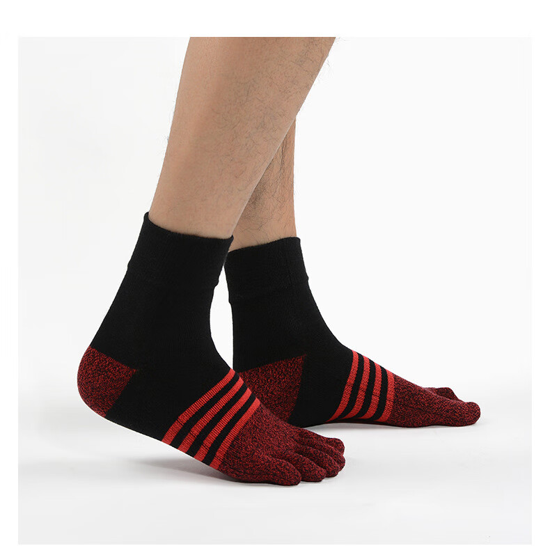 Huodiniao Autumn and Winter Yoga Socks Men's Pilates Toe Socks Non-Slip Socks Adult Indoor Fitness Running Sports Floor Socks Men's Mid-Tube Toe Socks - Black and Red