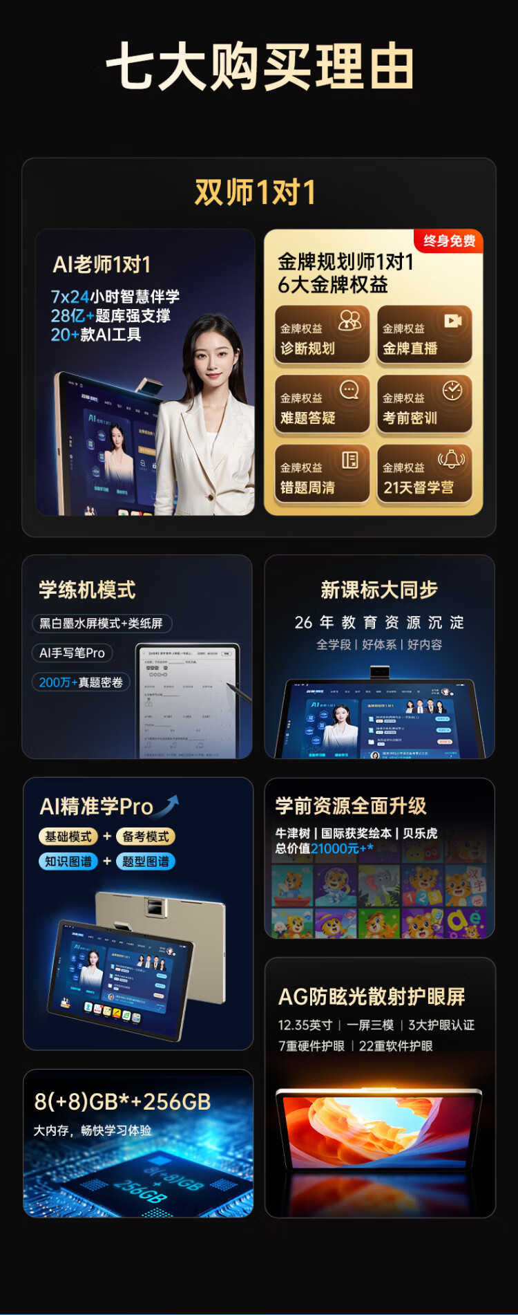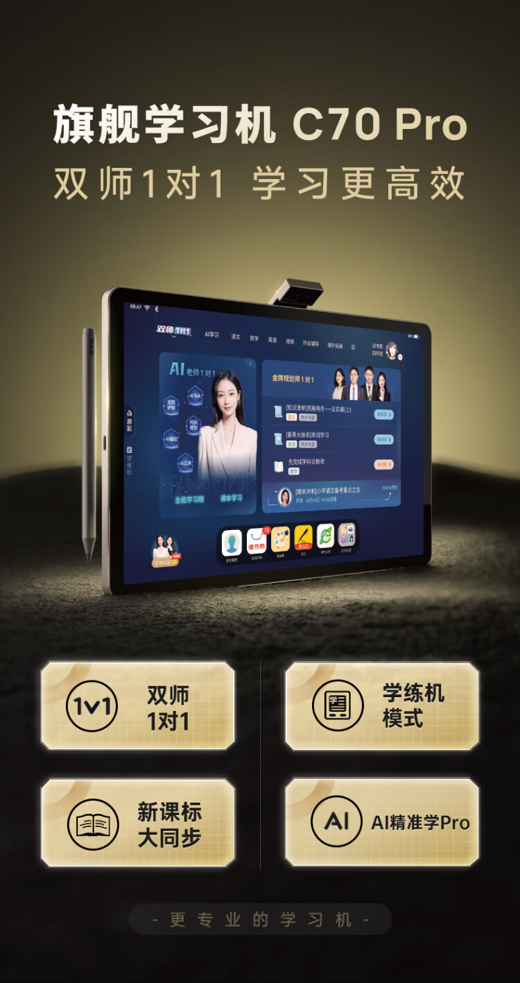 Dudulang C70pro learning machine 12.35-inch paper-like screen 16+256G learning machine Primary school junior high school high school synchronous learning machine problem video explanation student tablet tutoring machine National subsidy can be received C70pro learning and training all-in-one 16+256G