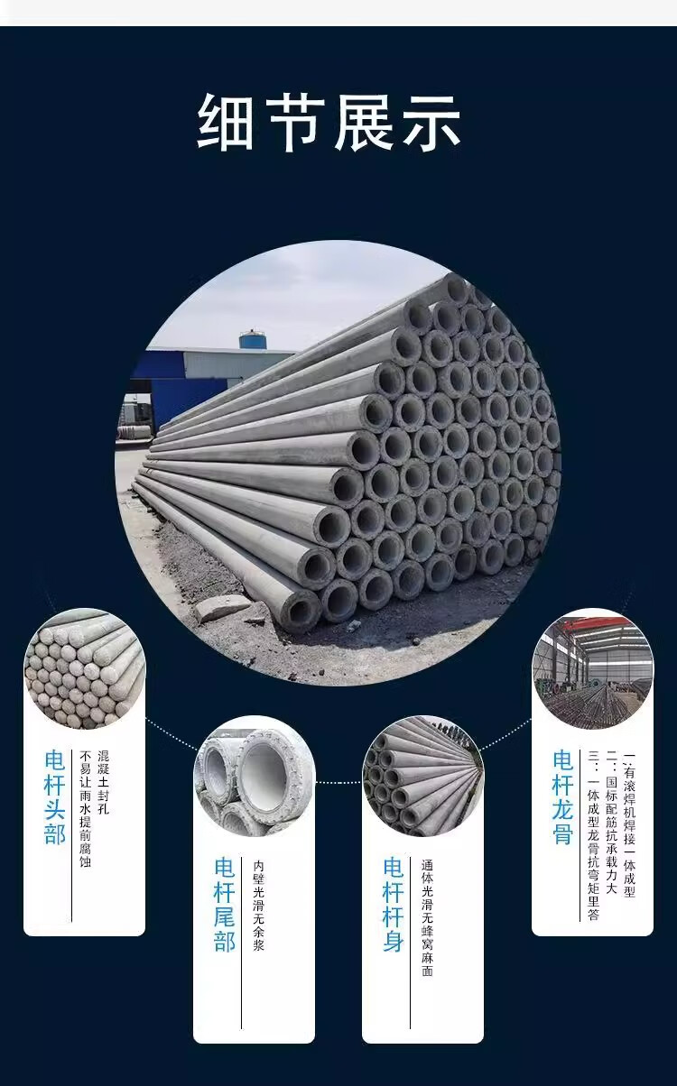 Prefabricated cement telephone poles Prefabricated national standard concrete telephone poles High-voltage wiring power supply poles 8 meters 12 meters 12 meters 230 prestressed telephone poles deposit