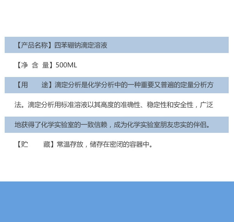 Titrant sodium tetraphenylborate titration solution 0.02mol/L molar analysis titrant standard solution 500ml