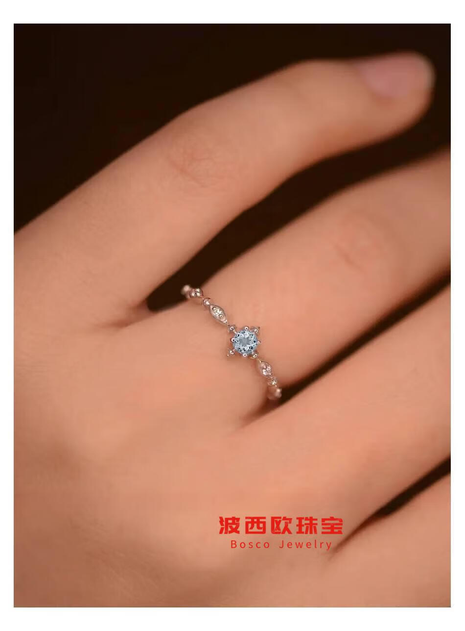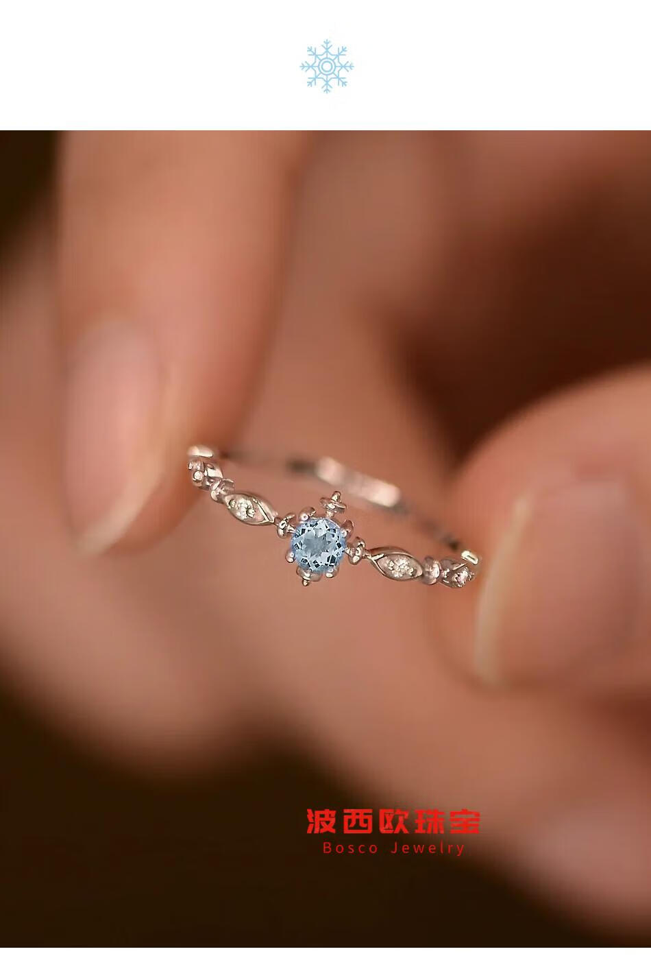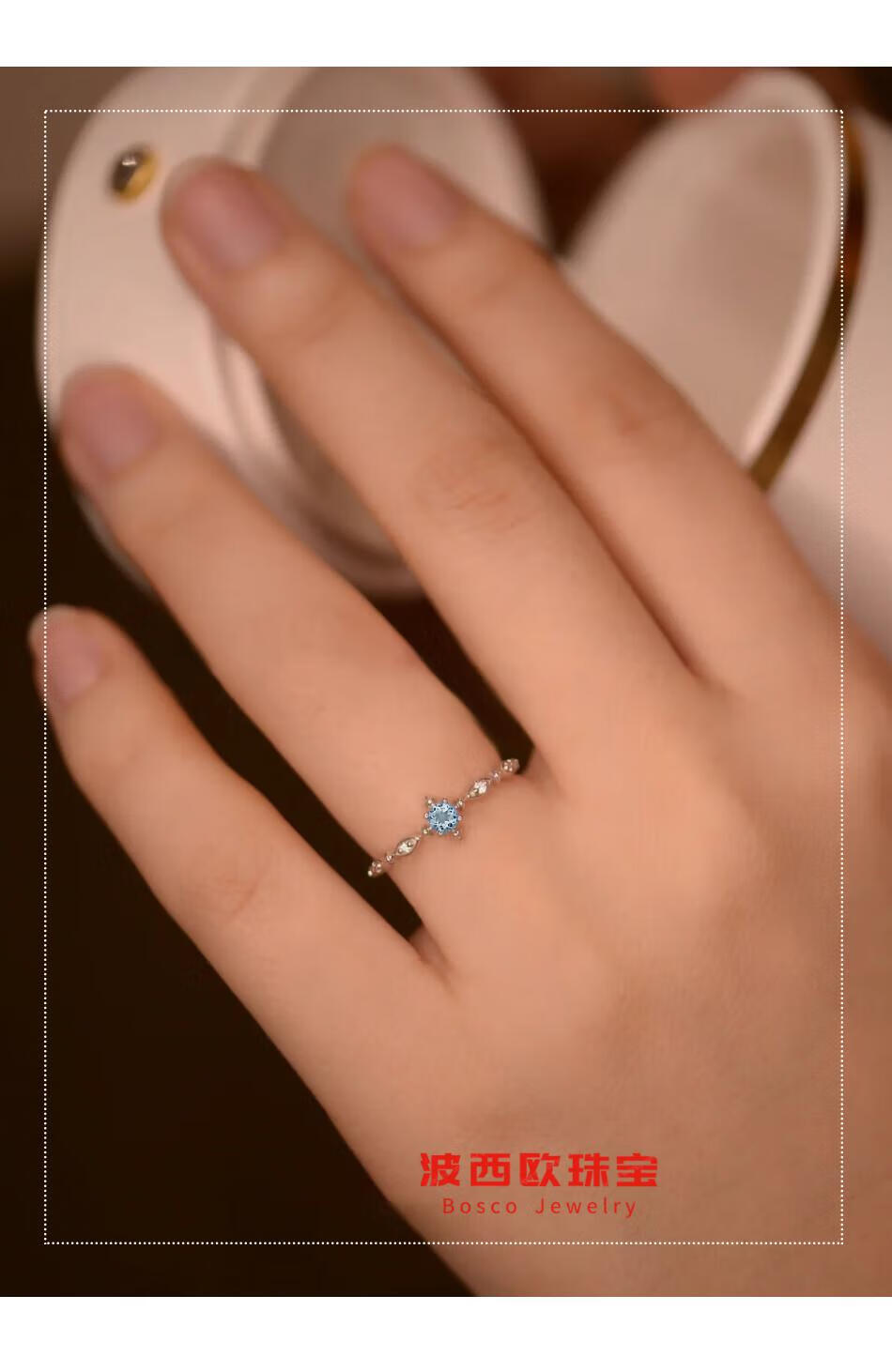 DR-FLVVS Fat Donglai's same aquamarine ring ins niche design 925 silver agete female Japanese light luxury snowflake opening platinum aquamarine ring opening adjustable