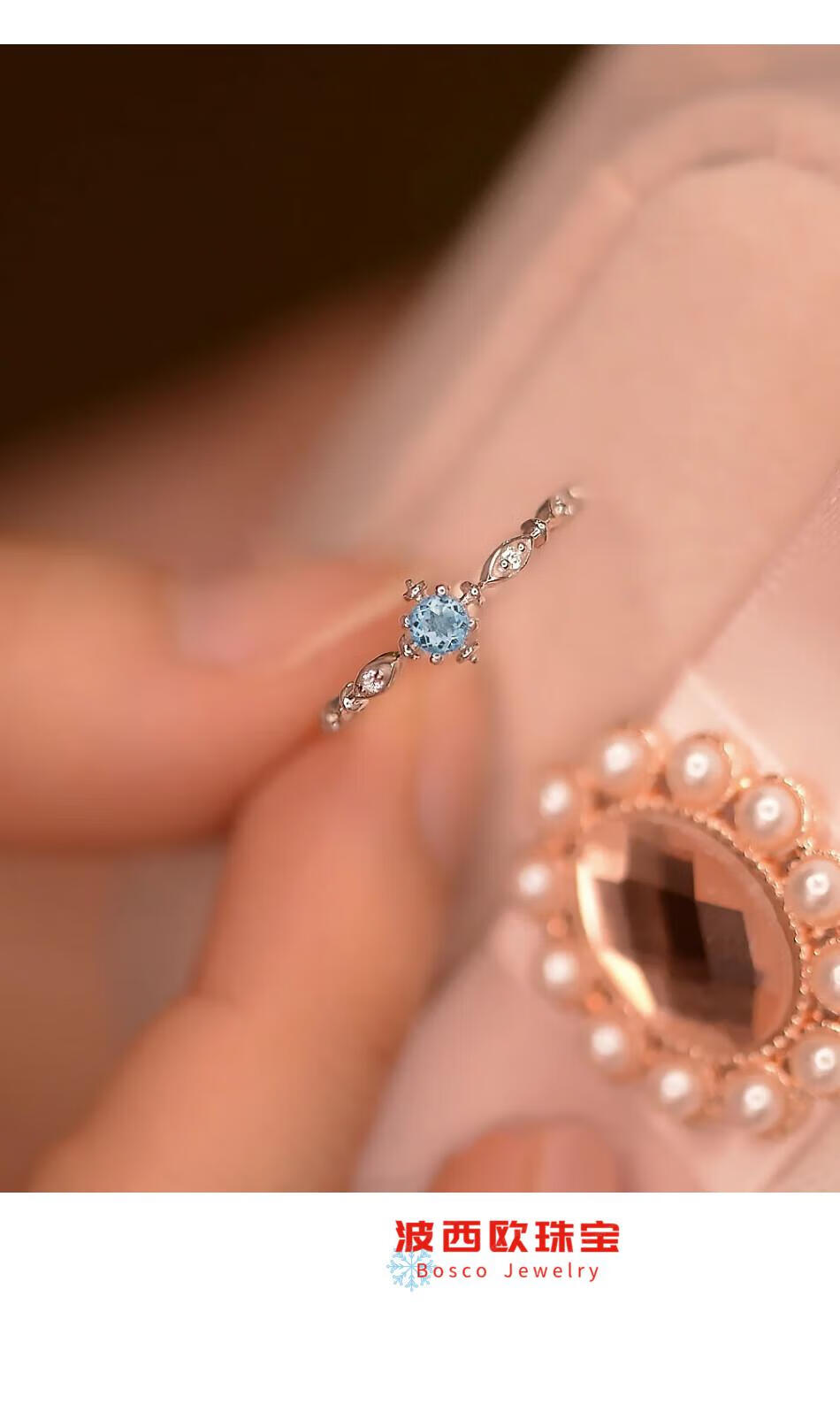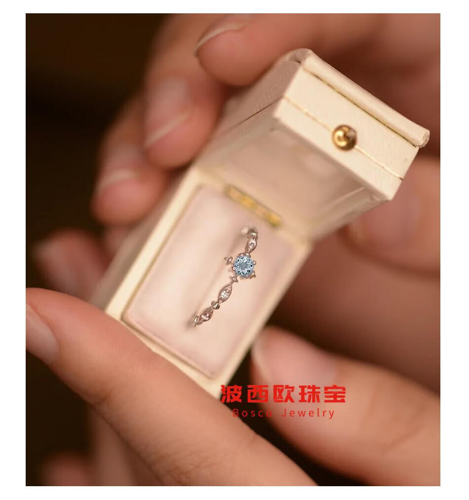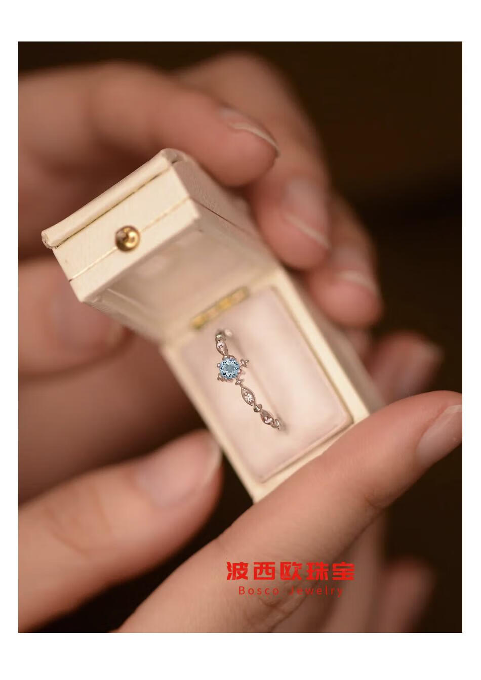 DR-FLVVS Fat Donglai's same aquamarine ring ins niche design 925 silver agete female Japanese light luxury snowflake opening platinum aquamarine ring opening adjustable