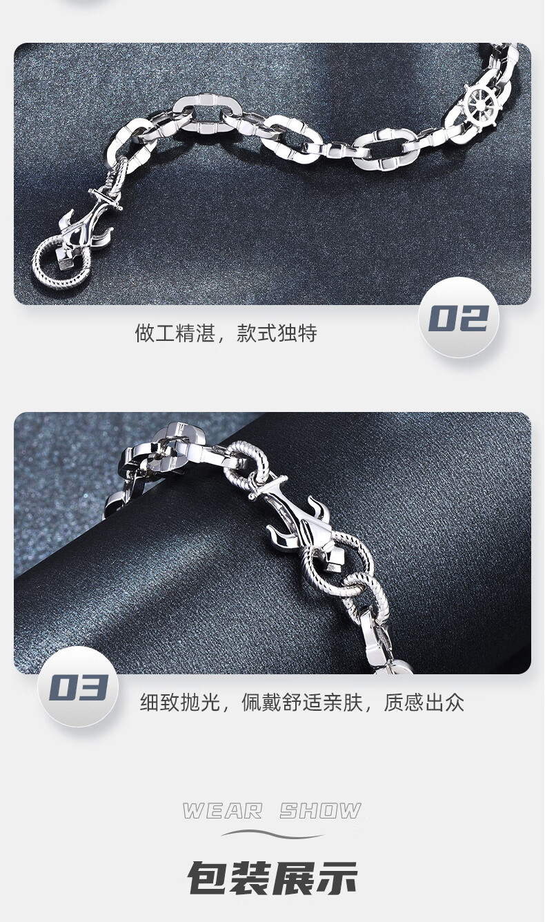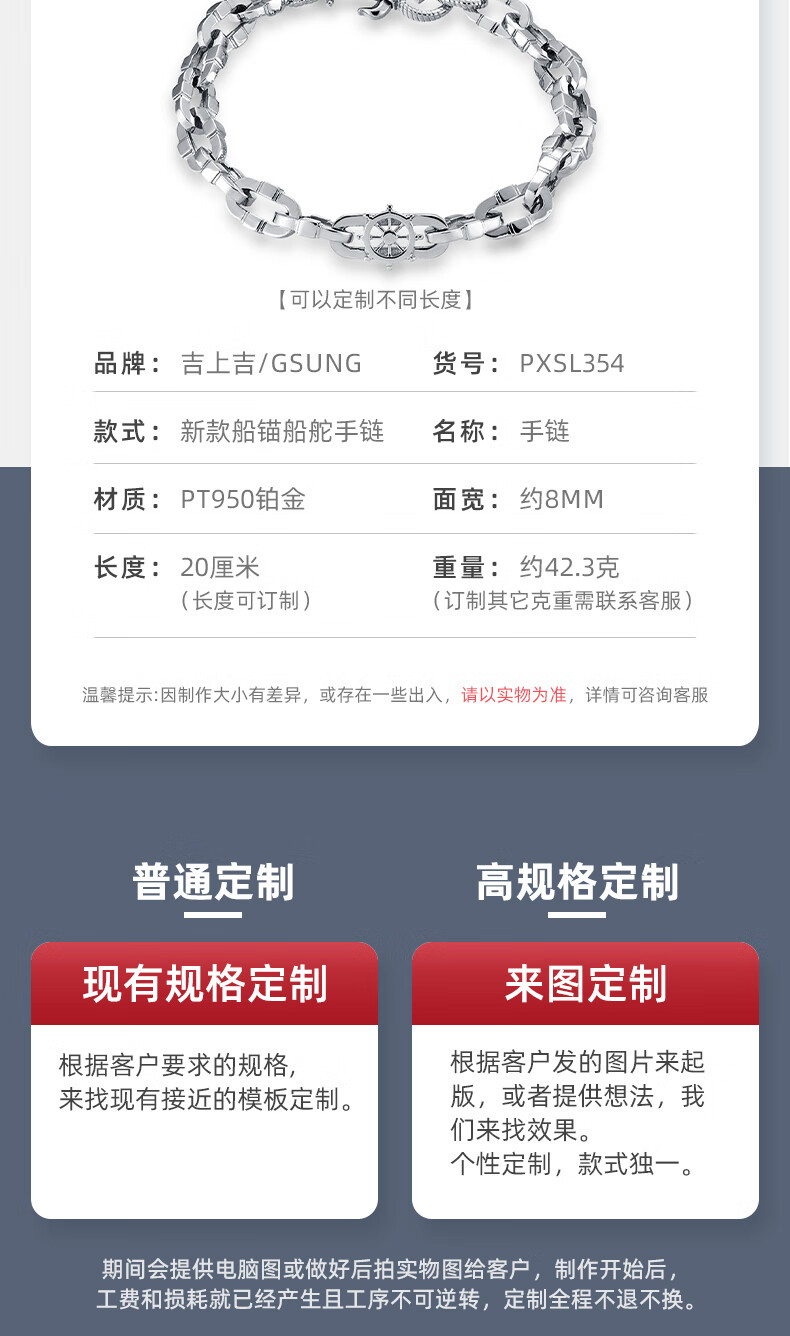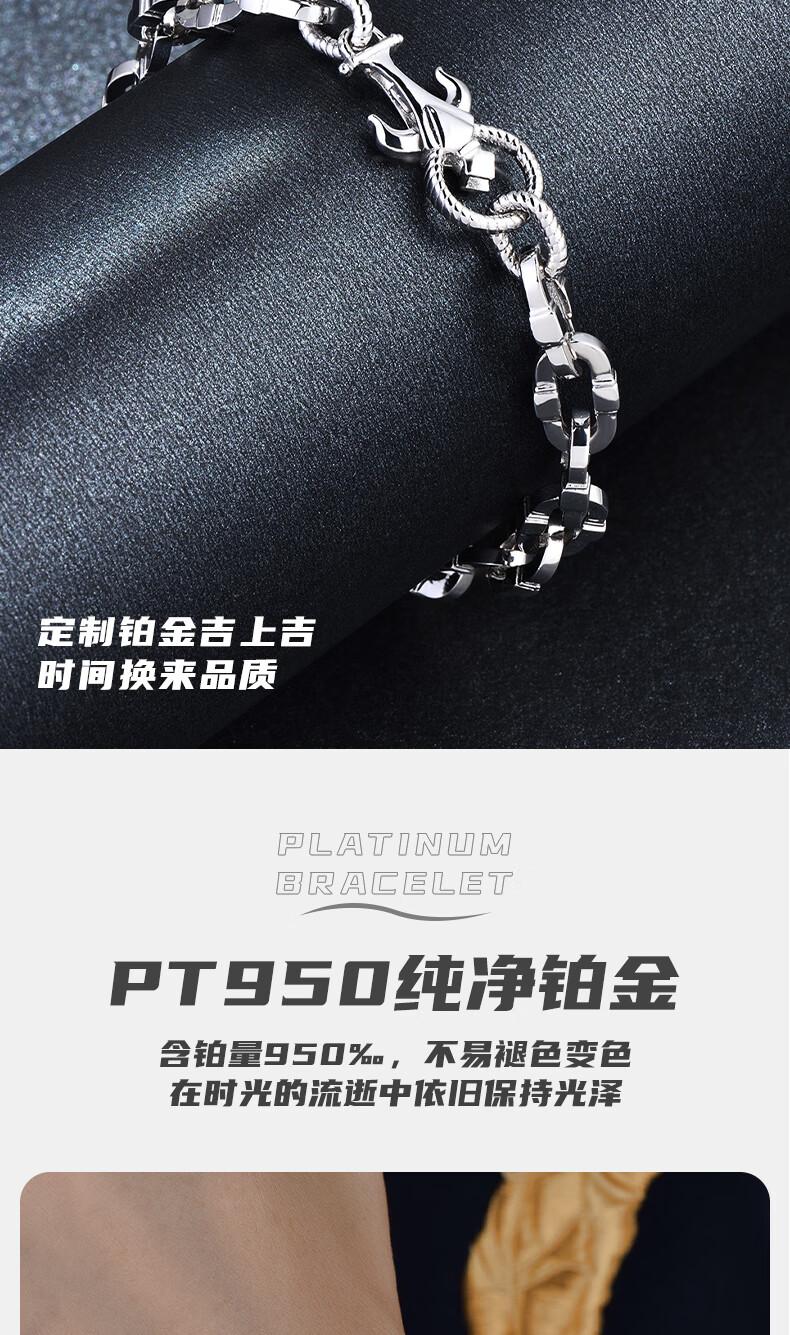 GsunG platinum bracelet men's new PT950 anchor bracelet, personalized, fashionable and atmospheric platinum men's bracelet rudder PT950 bracelet about 43 grams 20 cm pre-ordered
