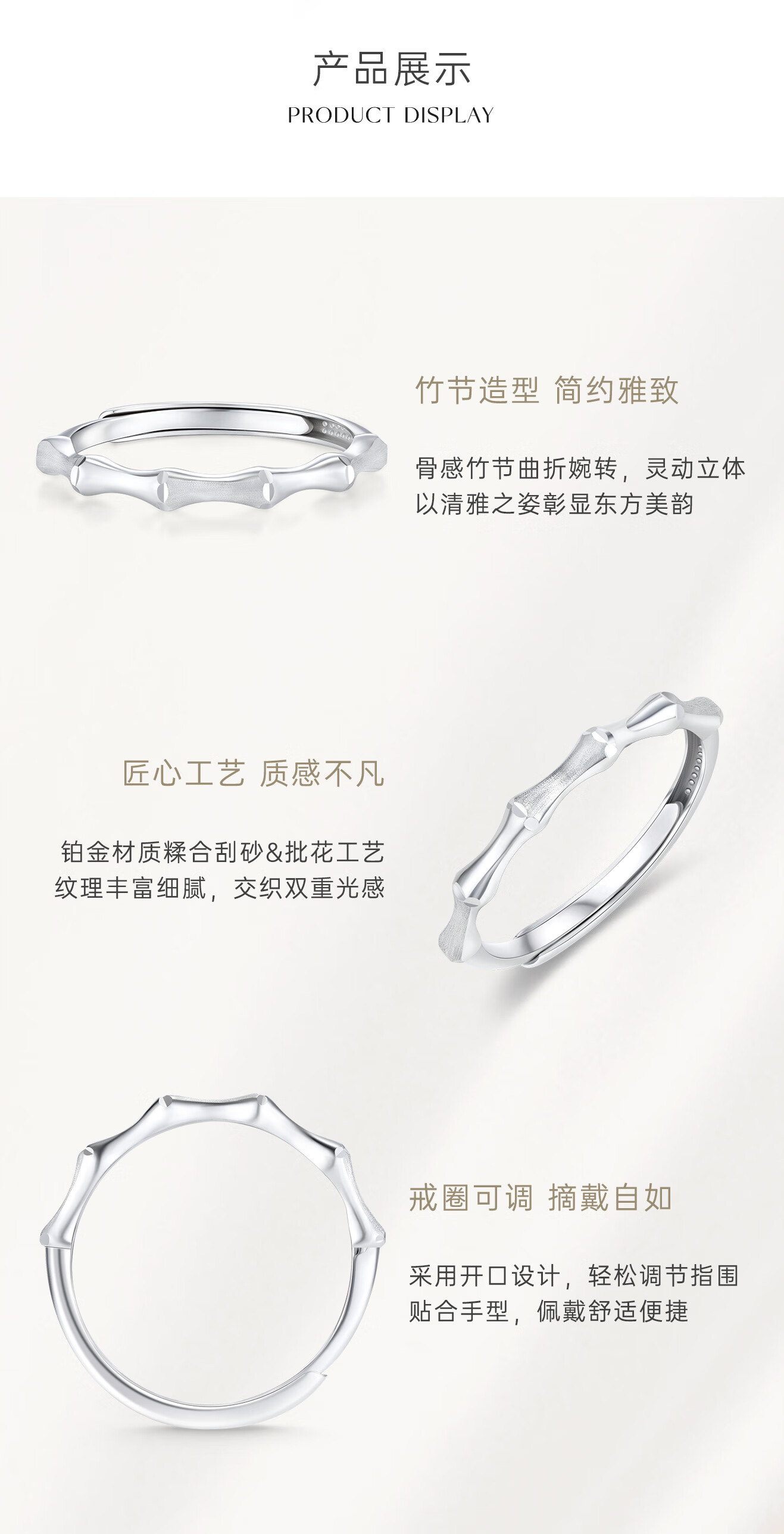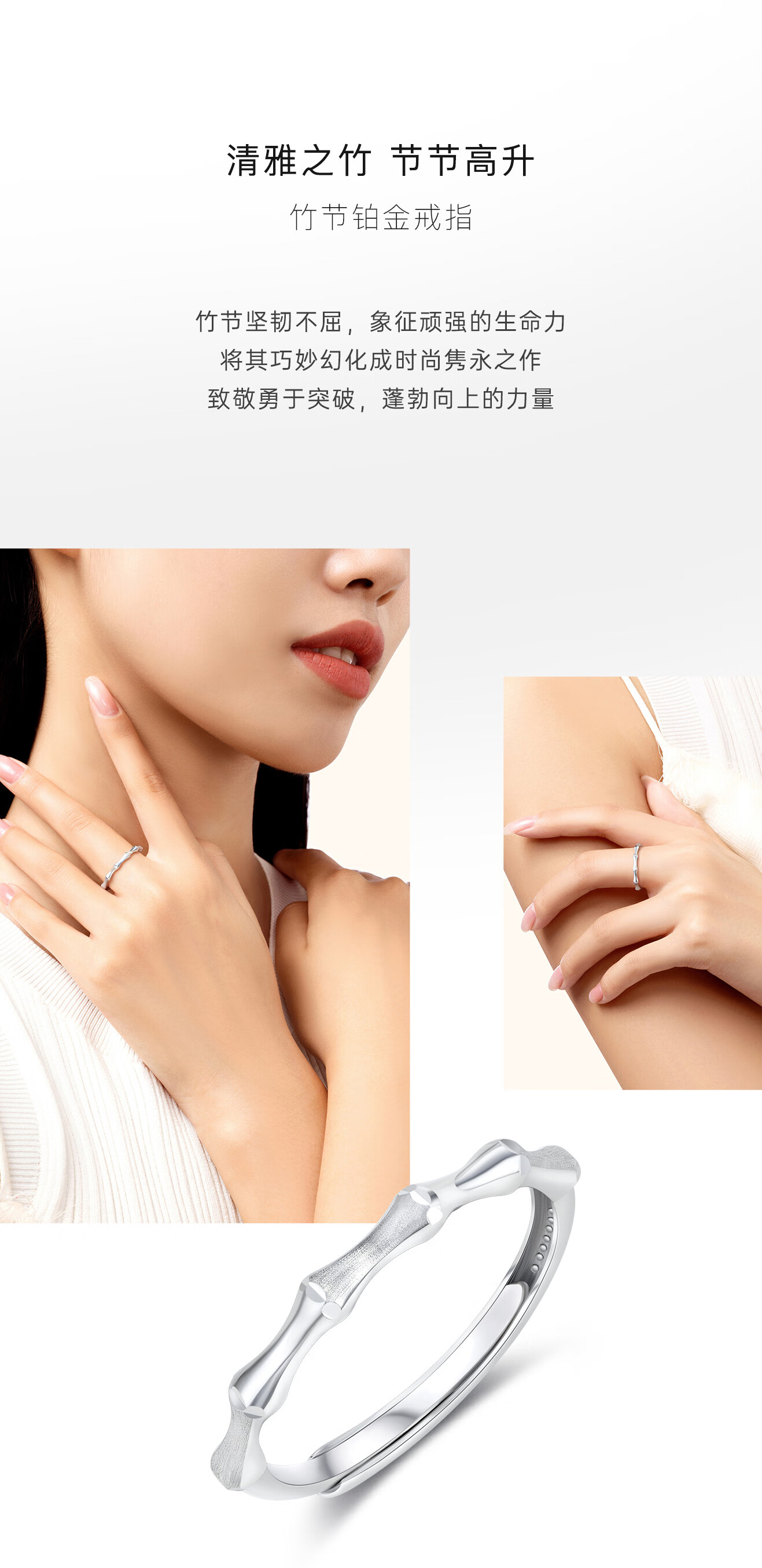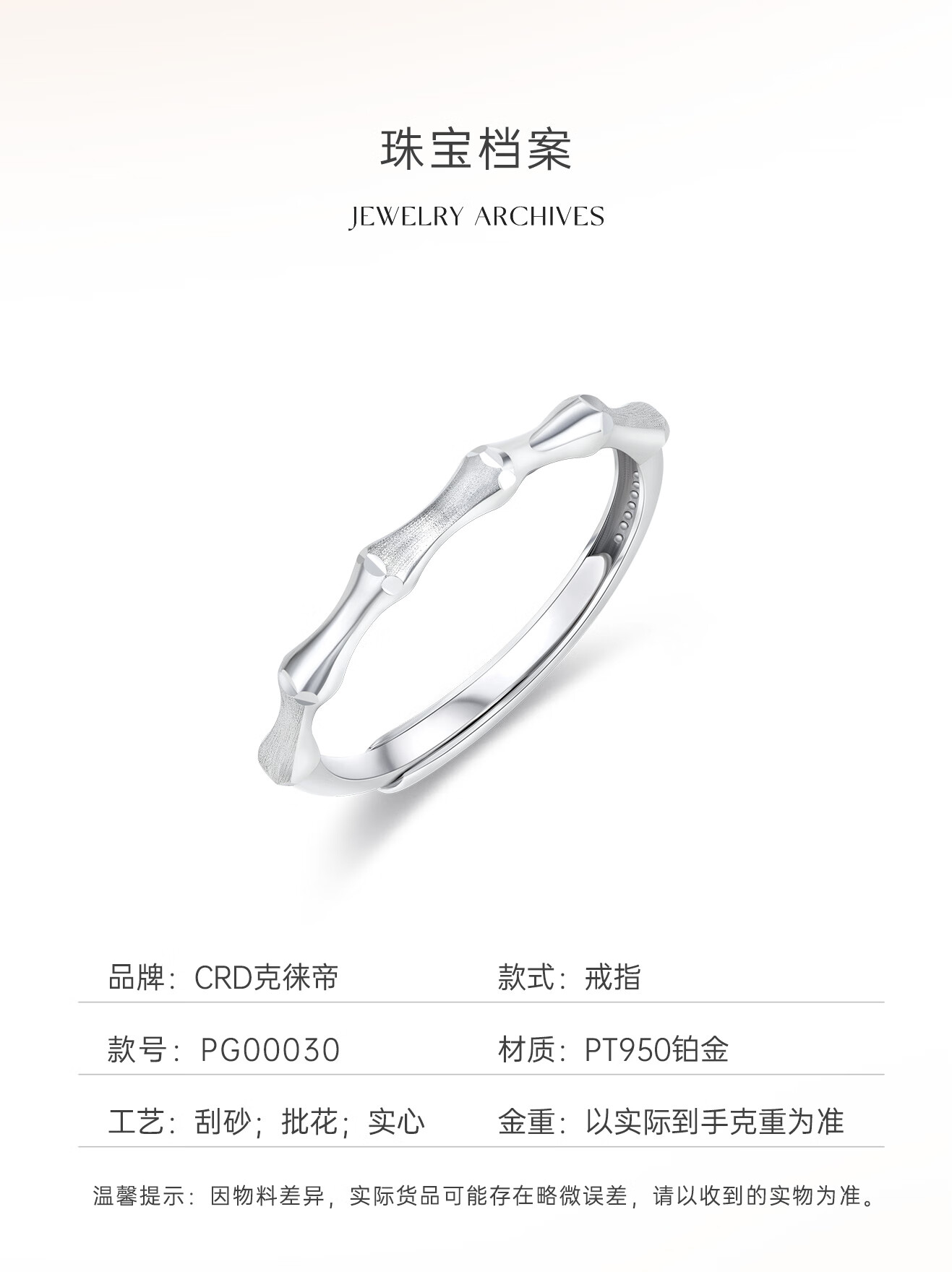 CRD Ke Laidi Spot Sparkling Bamboo Platinum Ring pt950 Evergreen Bamboo Gaosheng Solid Live Versatile 2.10g