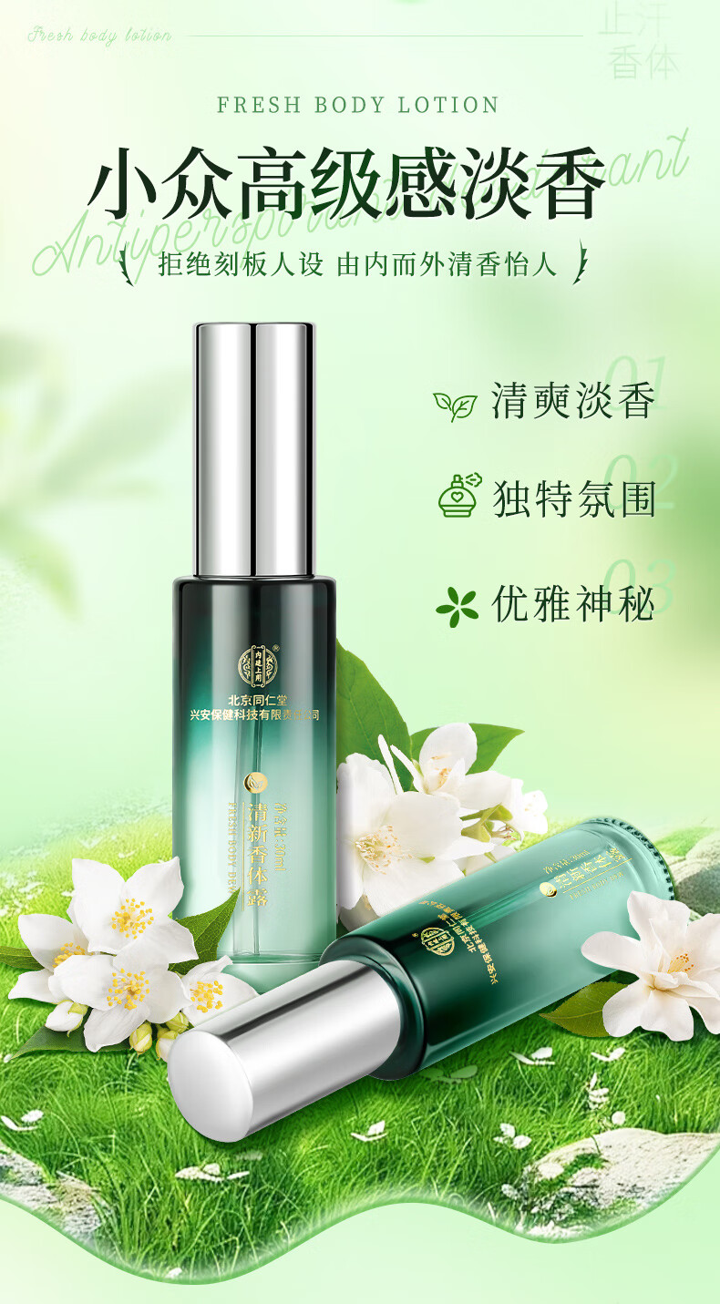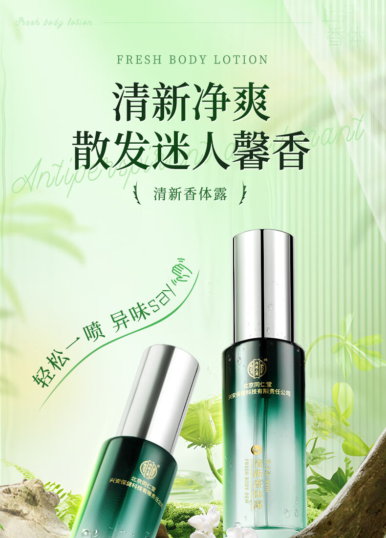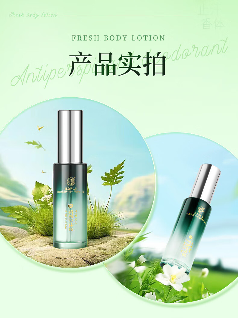 Beijing Tongrentang Fresh Deodorant Spray for Inner Courtyard, Non-body Odor, Special for Men and Women, Non-Deodorant, Antiperspirant and Underarm Odor, 60ml, 2 Bottles, Periodic Pack, Root Purifying Odor
