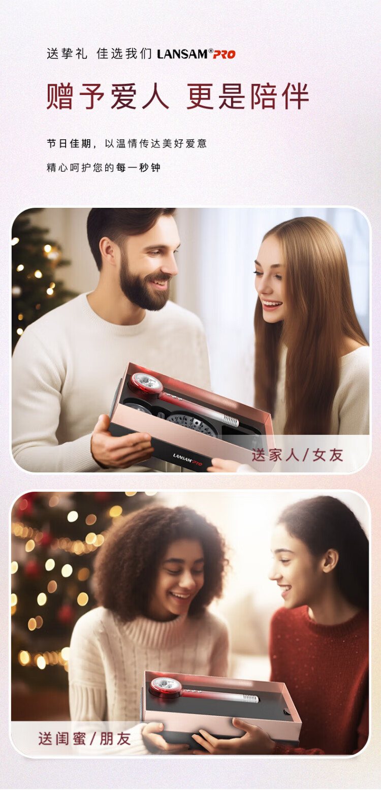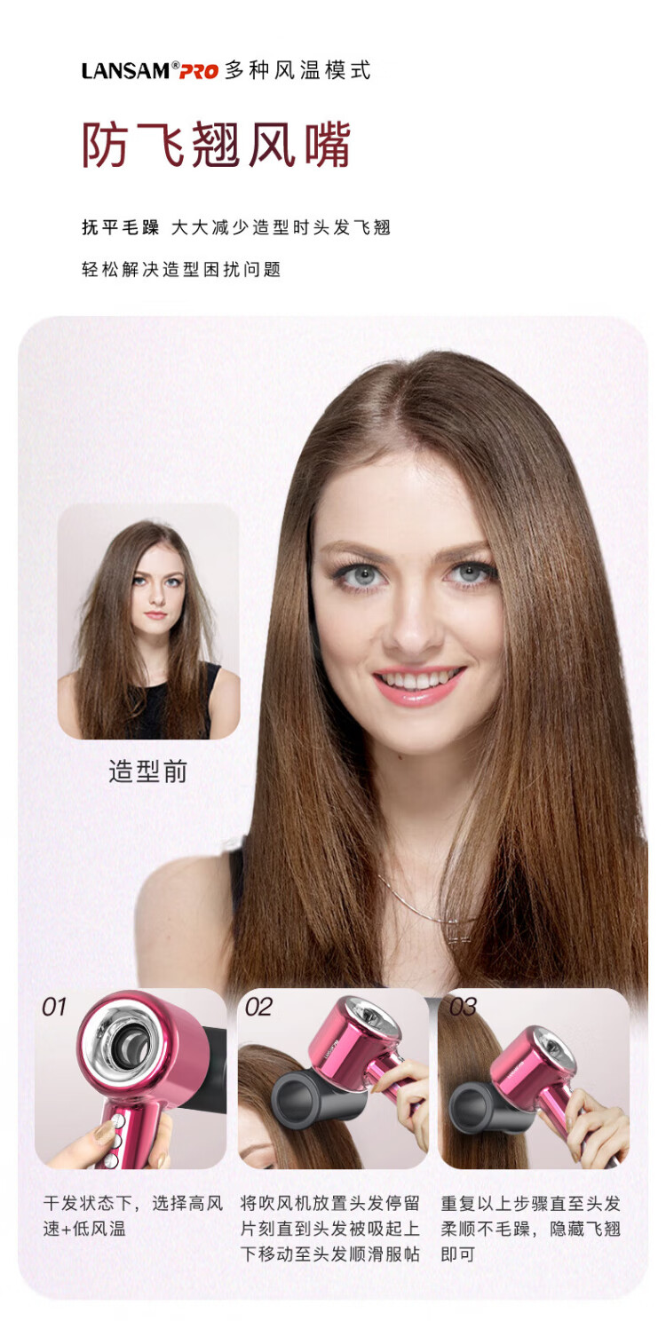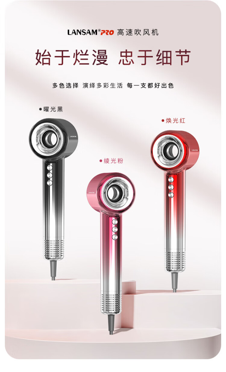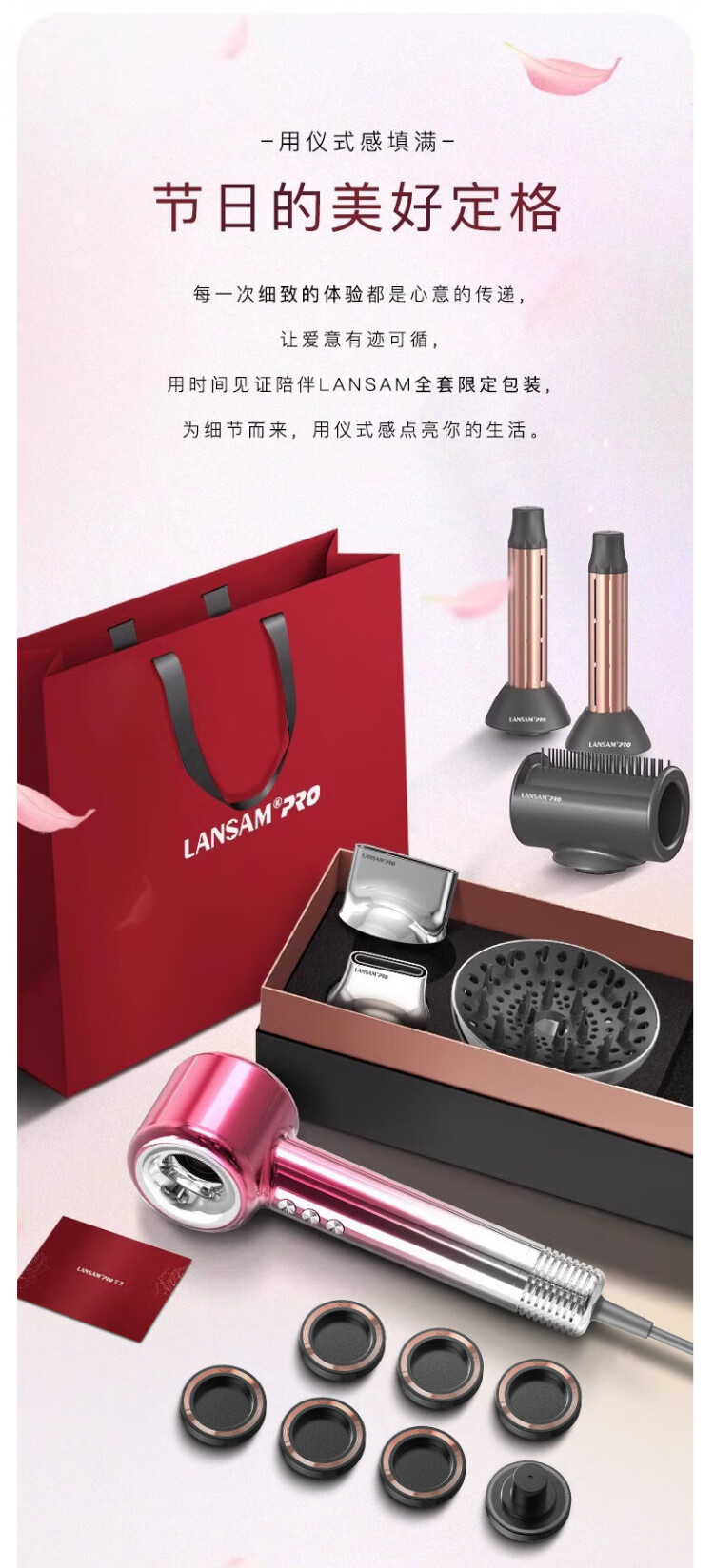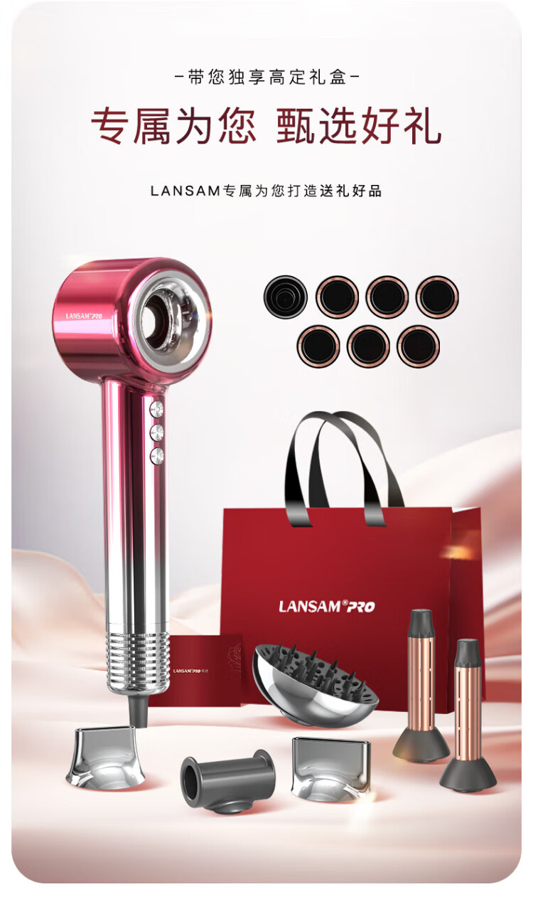 LANSAM zero-speed hair dryer household high-speed negative ion hair care high-speed quick-drying dryer-less leaf gift birthday gift for girls gift box version Yaoguang Black Youth Edition
