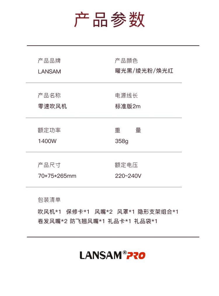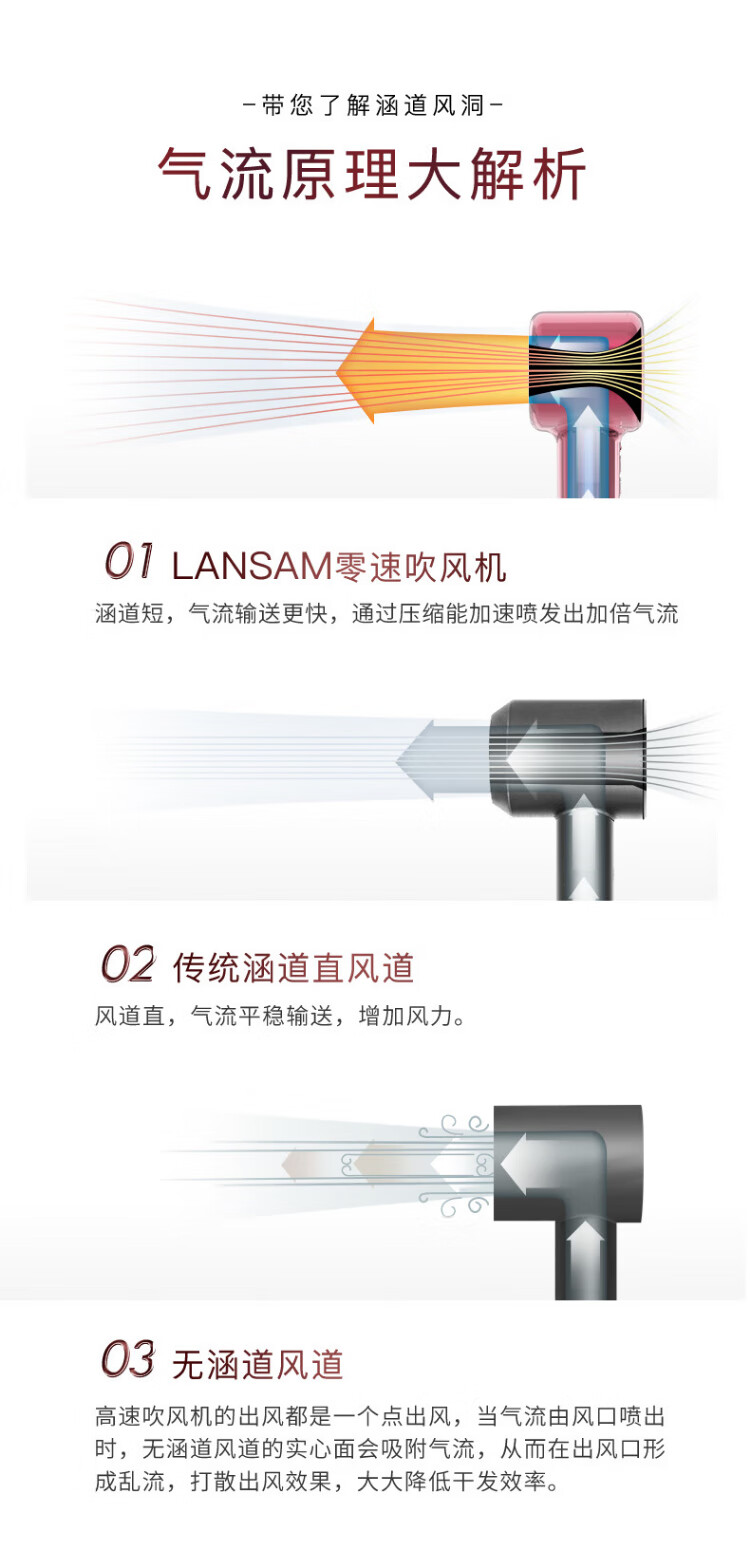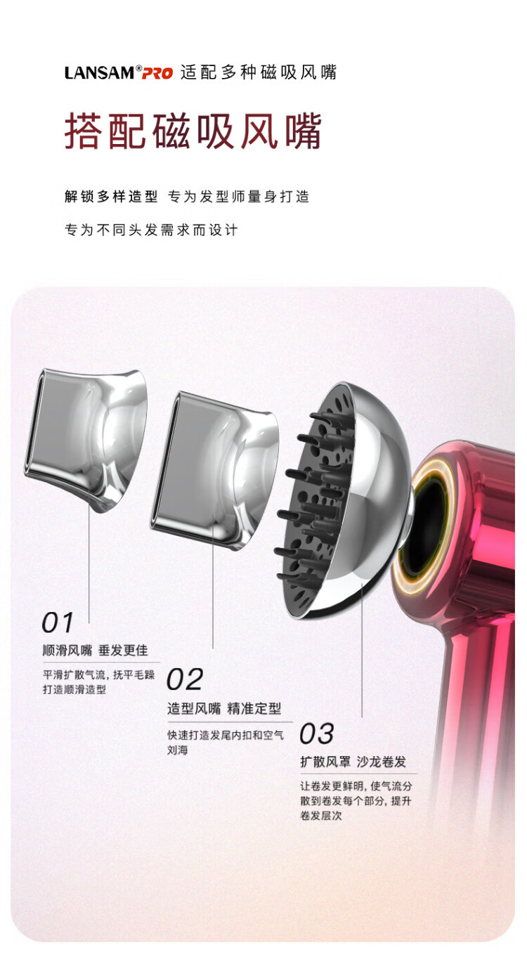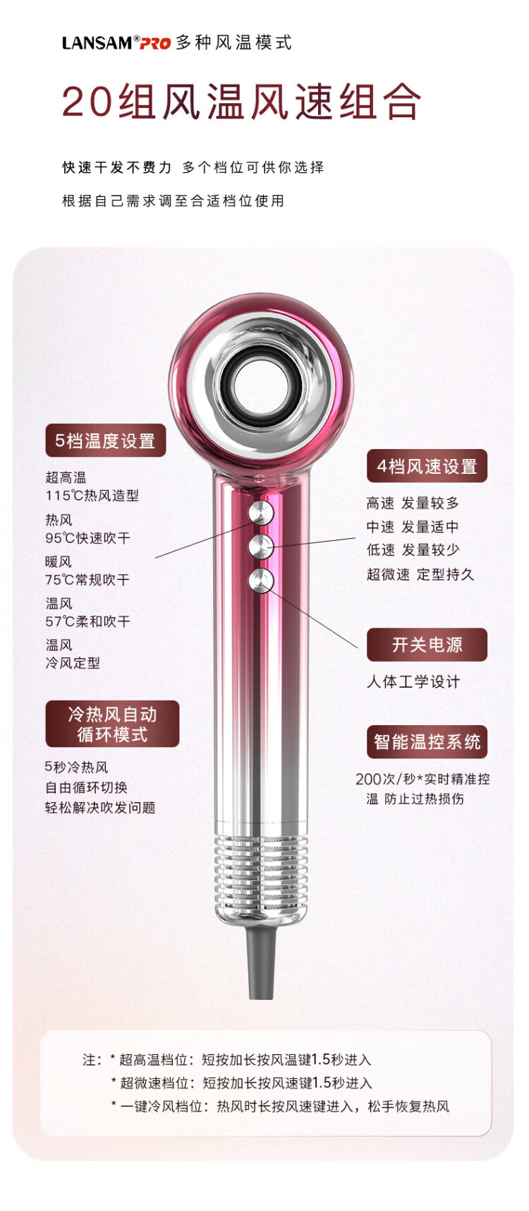 LANSAM zero-speed hair dryer household high-speed negative ion hair care high-speed quick-drying dryer-less leaf gift birthday gift for girls gift box version Yaoguang Black Youth Edition