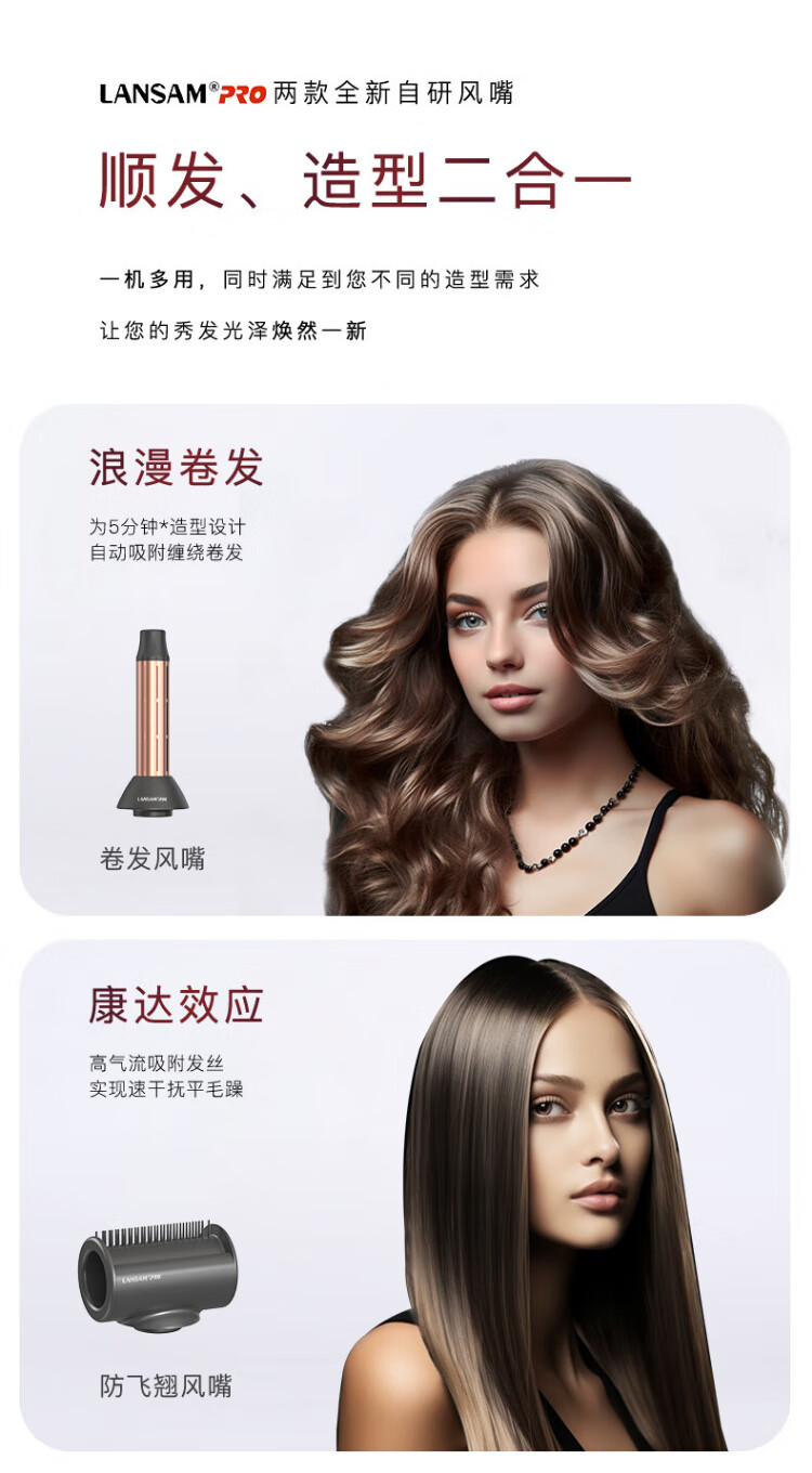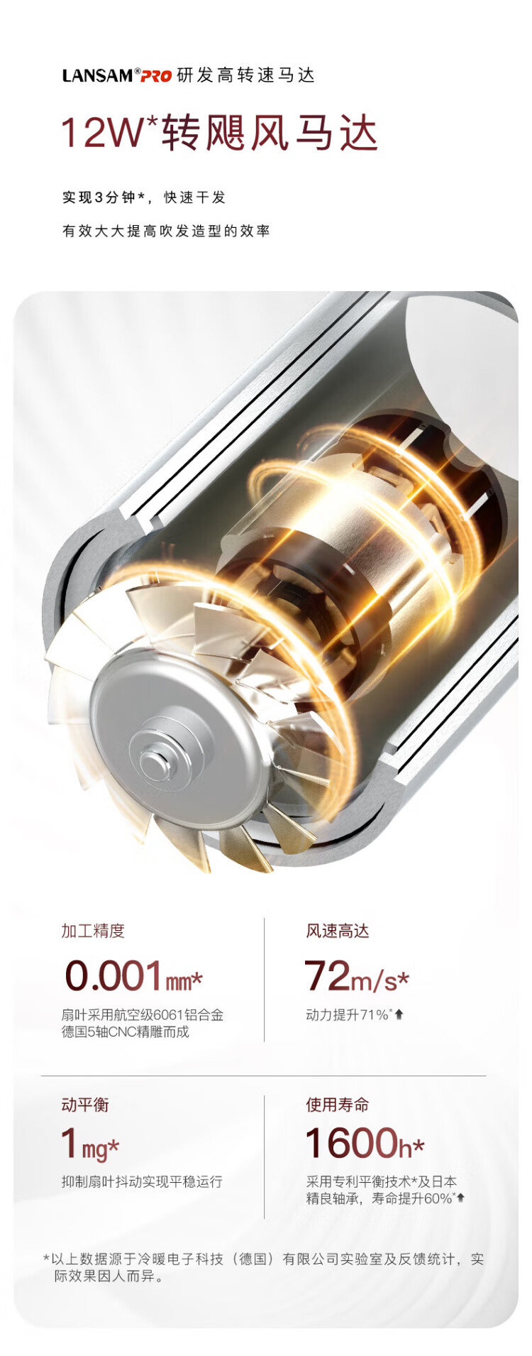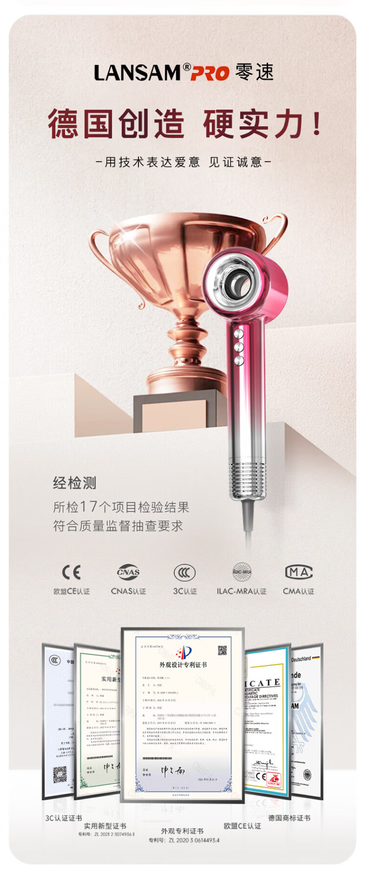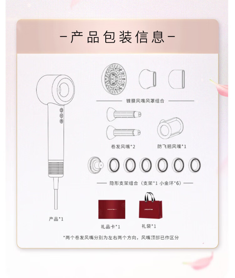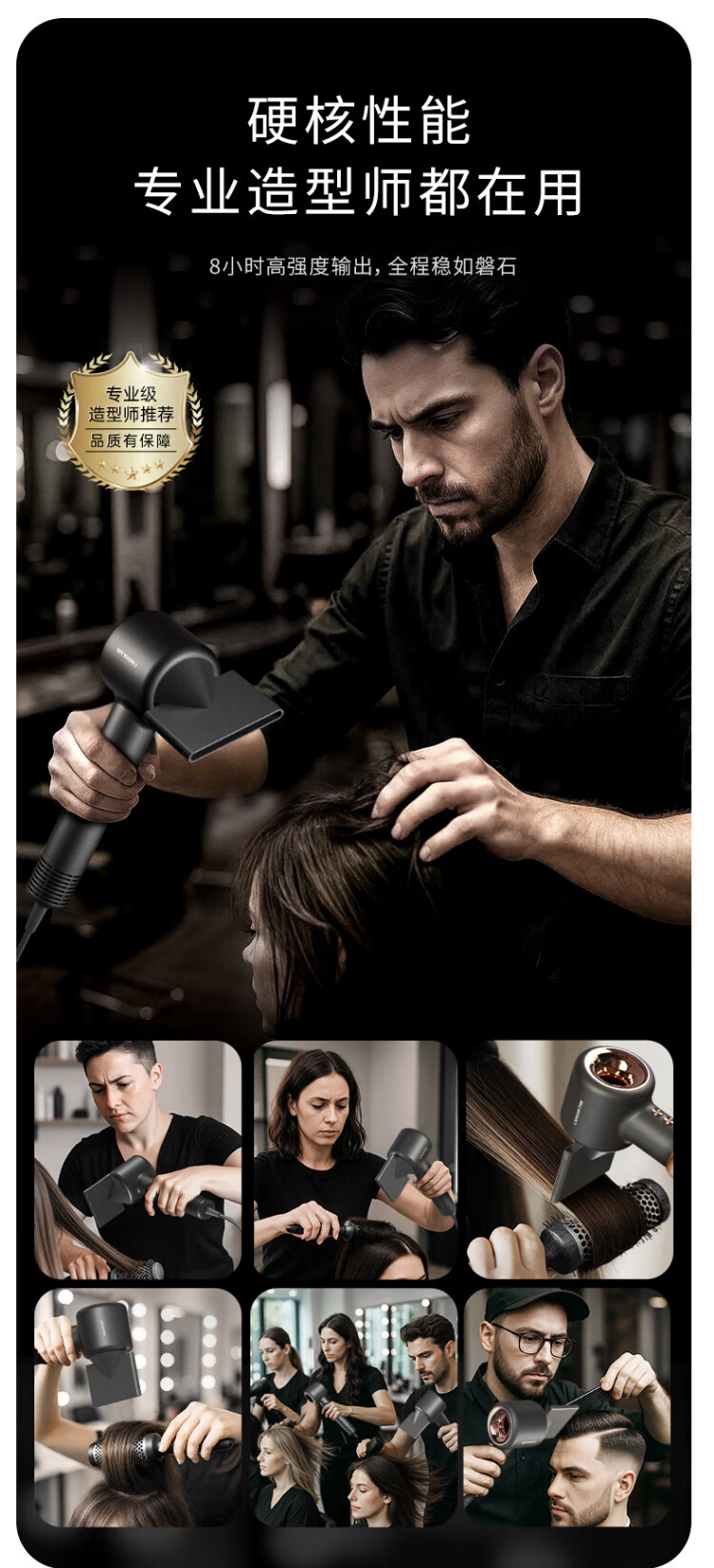 LANSAM zero-speed hair dryer household high-speed negative ion hair care high-speed quick-drying dryer-less leaf gift birthday gift for girls gift box version Yaoguang Black Youth Edition