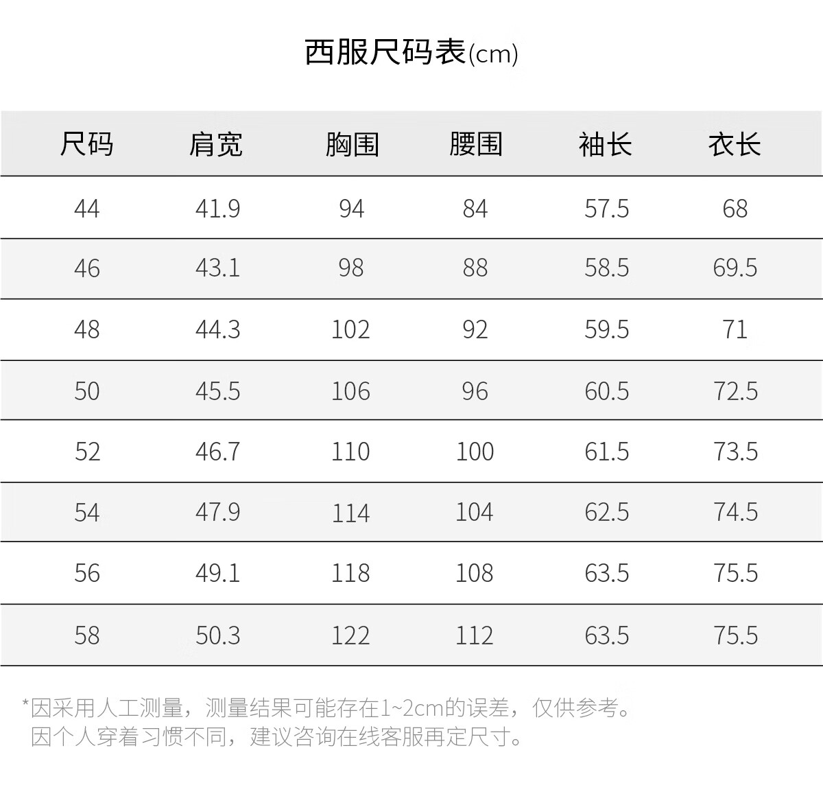 China (cm) 165 / 88-90 170 / 96-98 175 / 108-110 180 / 118-122 185 / 126-130