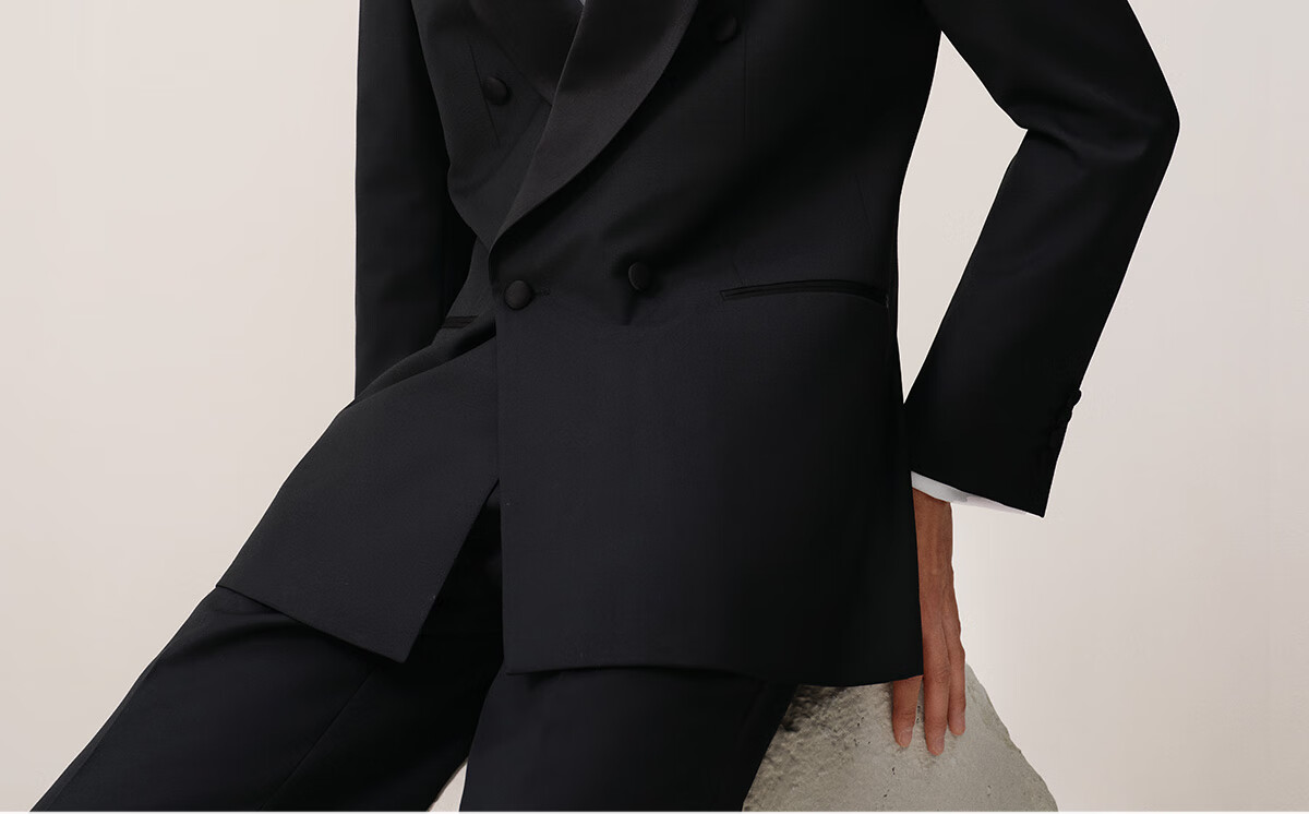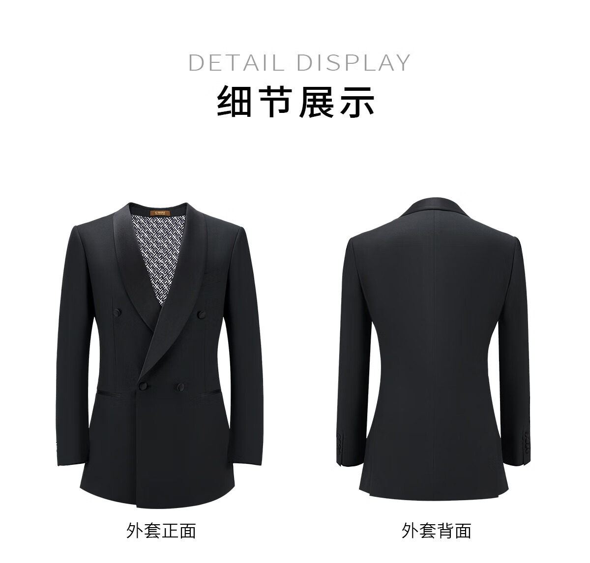 Guillaume Tuxedo Wool Suit Men's Double-Breasted Black Formal High-Grade Groom Wedding Dress Suit Swallowtail Black Top + Pants 48
