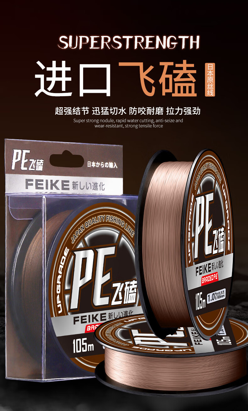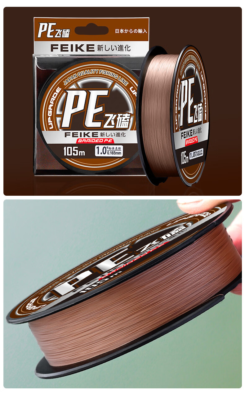 Japan imported super soft sub-line flying knock fishing line strong pull non-rolling nano flying knock main line laser fishing line 105 meters brown PE flying knock line 1 reel 0.2