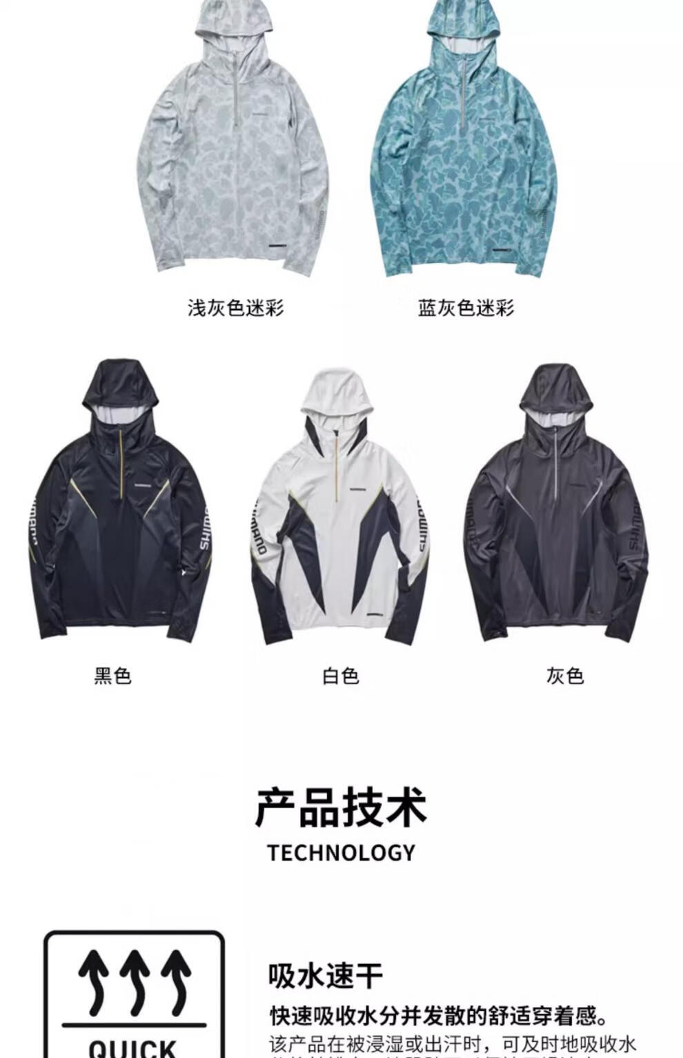 SHIMANO 24 models IN-053U sun protection clothing hooded long-sleeved anti-UV quick-drying insulated fishing clothing light gray camouflage L