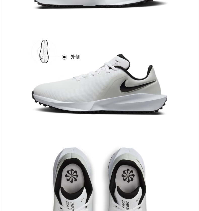 Nike men's and women's lightweight golf shoes (wide version) winter couple NIKE INFINITY G FN0565 100 white/black/white gold 41