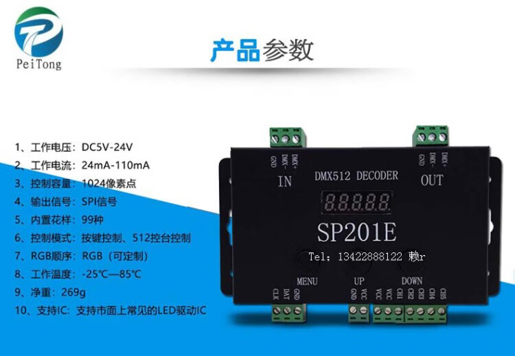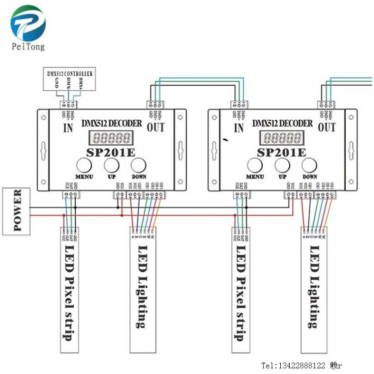DMX512 Symphony WS2811 full color light with LED controller stage light engineering sub-control SP201E SP201E (DMX512 DC5-24V