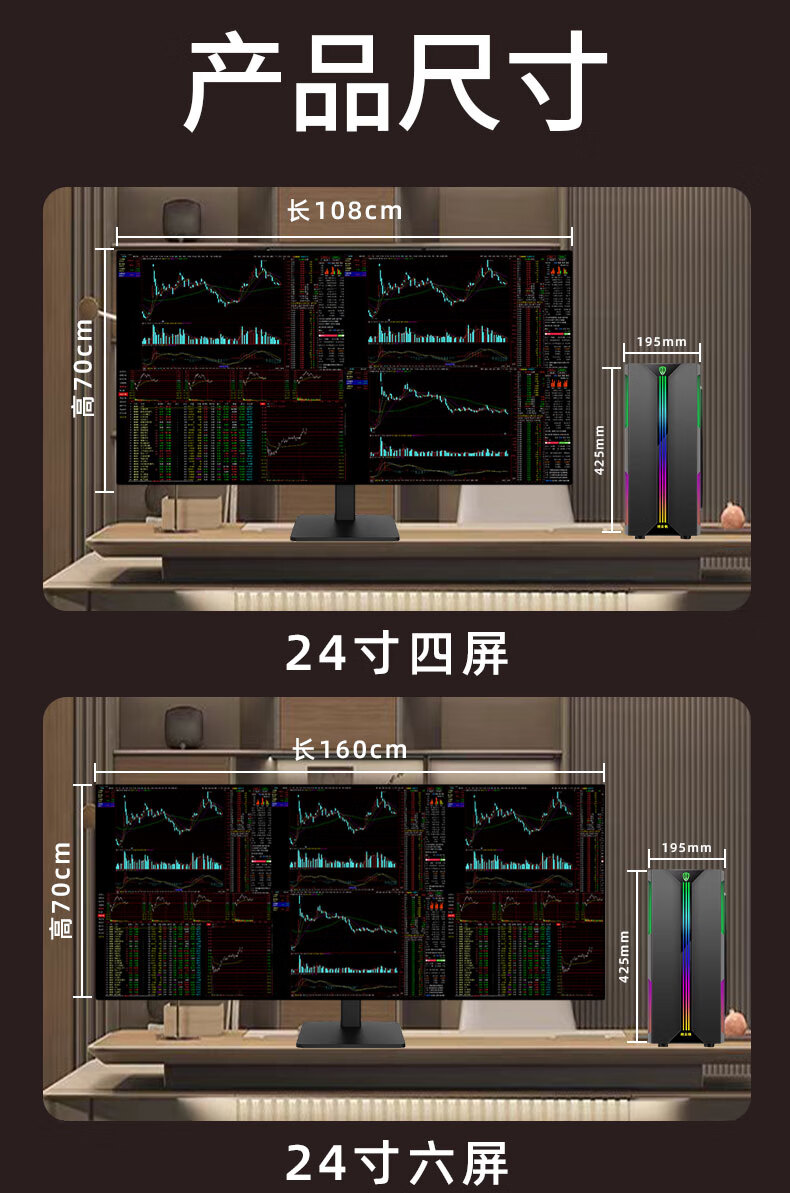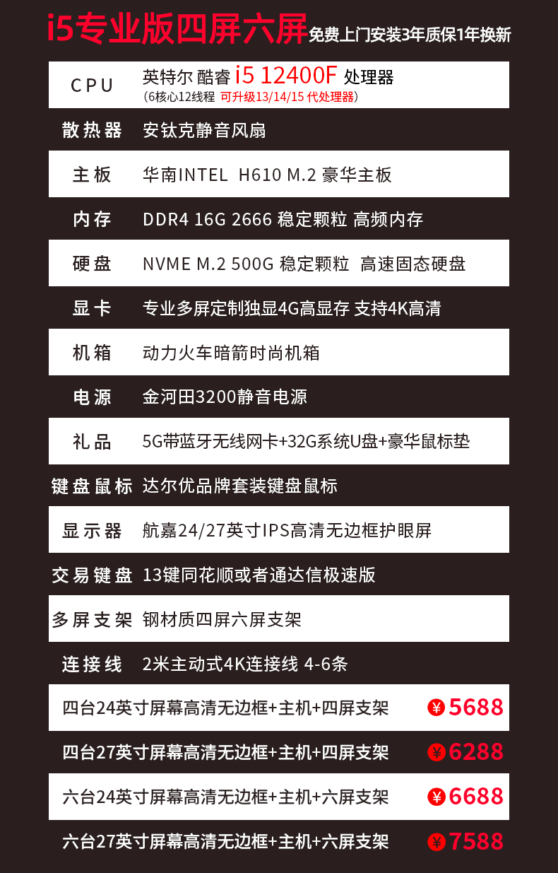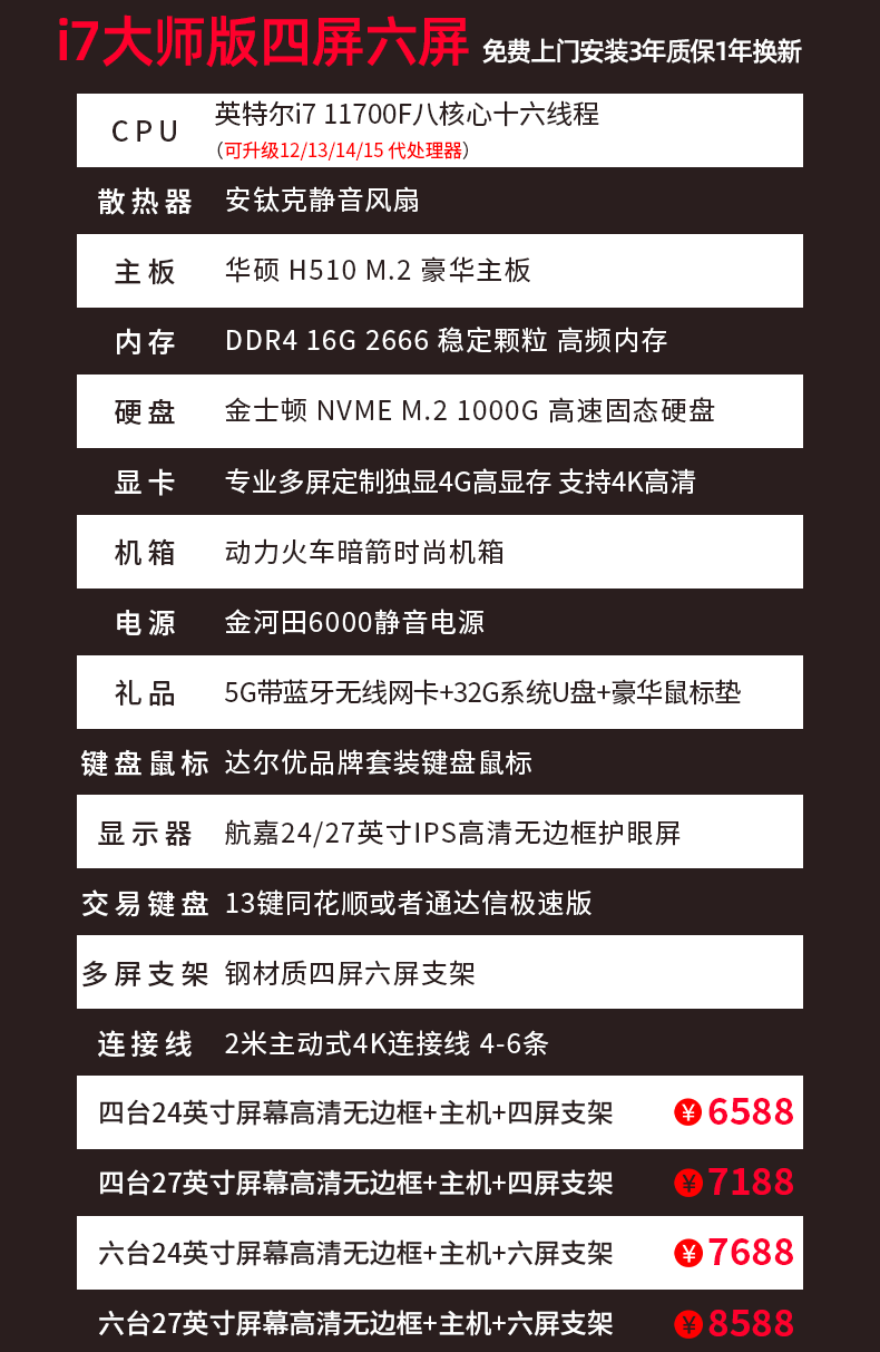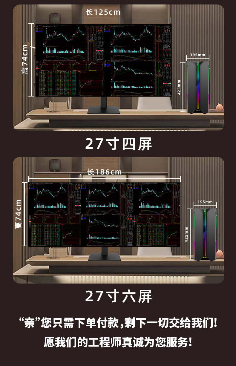 Titanium's nationwide door-to-door installation of professional multi-screen stock trading computers with four screens, six screens, eight screens and twelve screens supports private customization of institutional futures and stock trading virtual currency packages. Four-screen i7 Master Edition 24 HD borderless