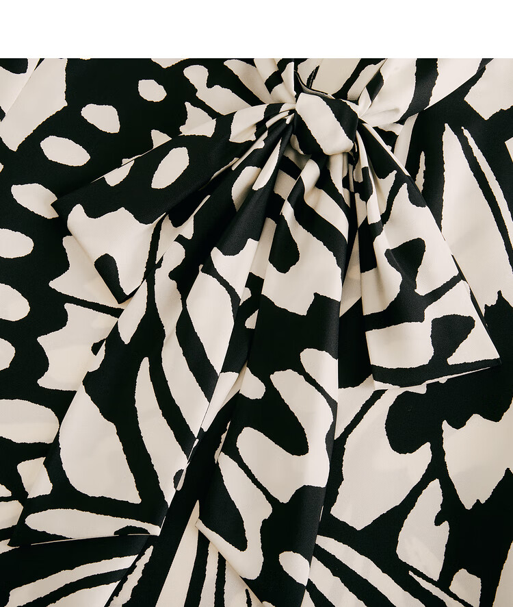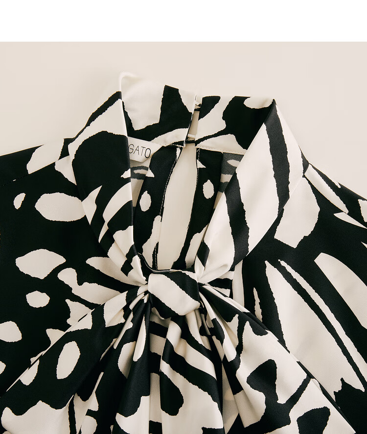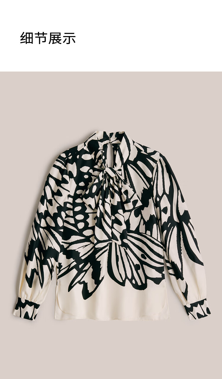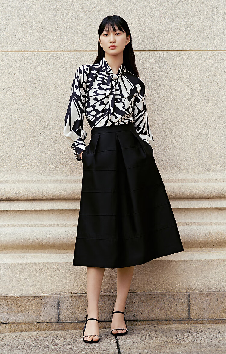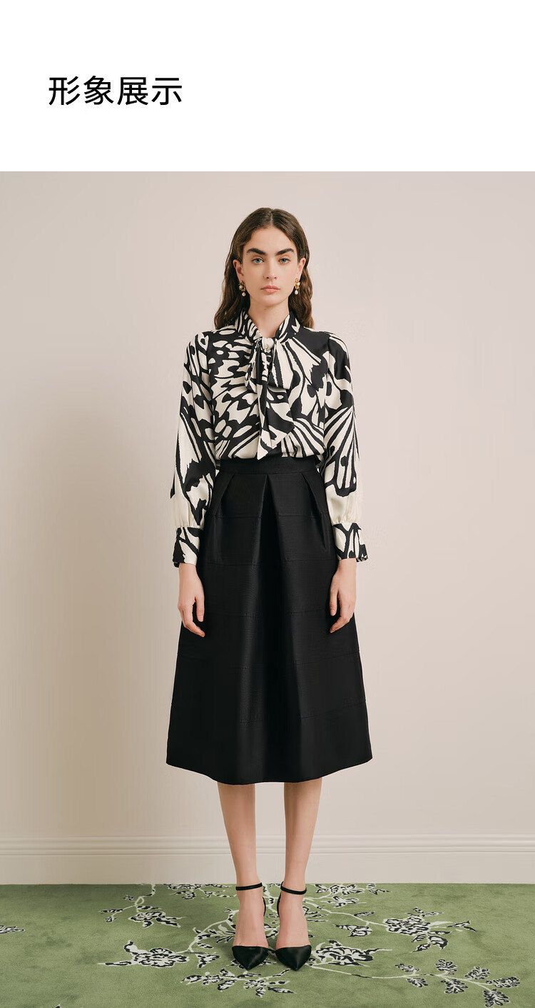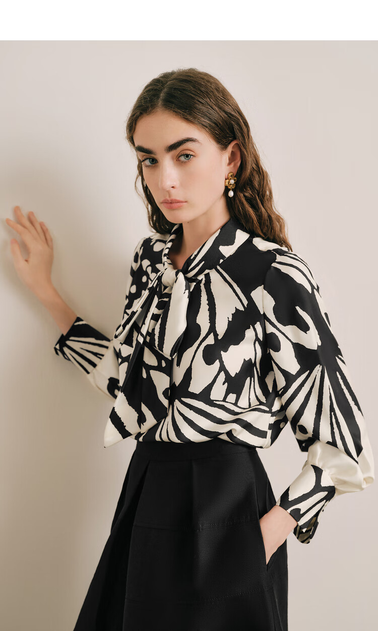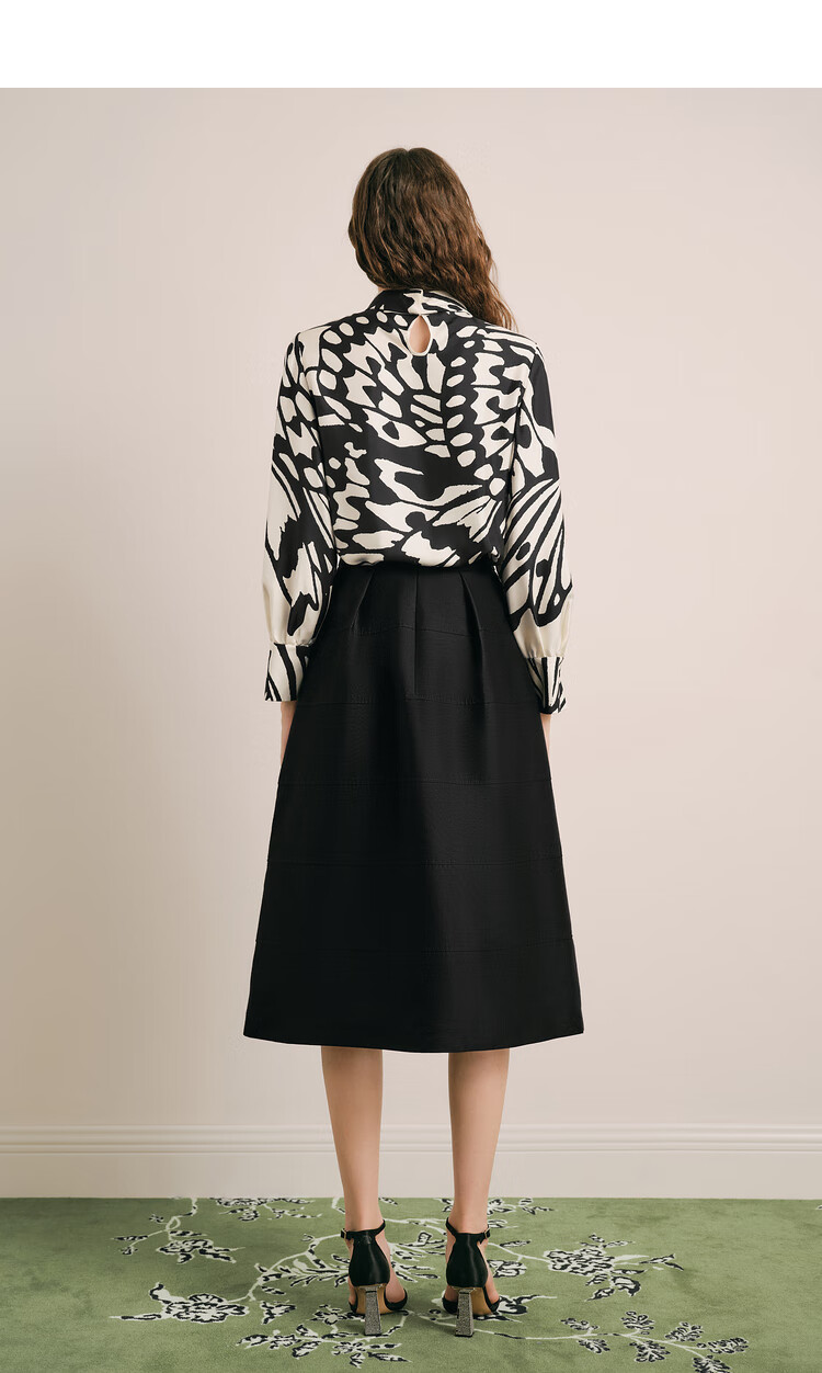 OBBLIGATO Autumn and Winter Luna Moth Print Mulberry Silk Bow Tie Collar Shirt Single Skirt Black XL