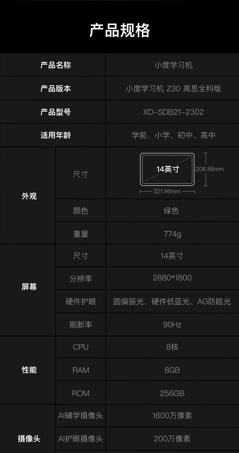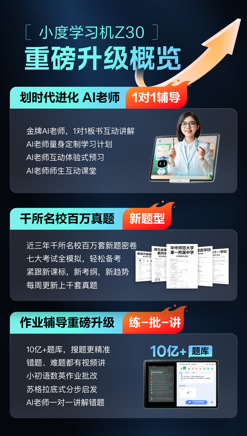 Xiaodu Learning Machine Z30 Gaosi General Edition Primary school to high school student tutoring tablet AI Wenxin large model Qingbei Teaching and Research Gaosi Class Related Baidu Netdisk Xiaodu Z30 Gaosi Full Science Edition Qingbei Teaching and Research