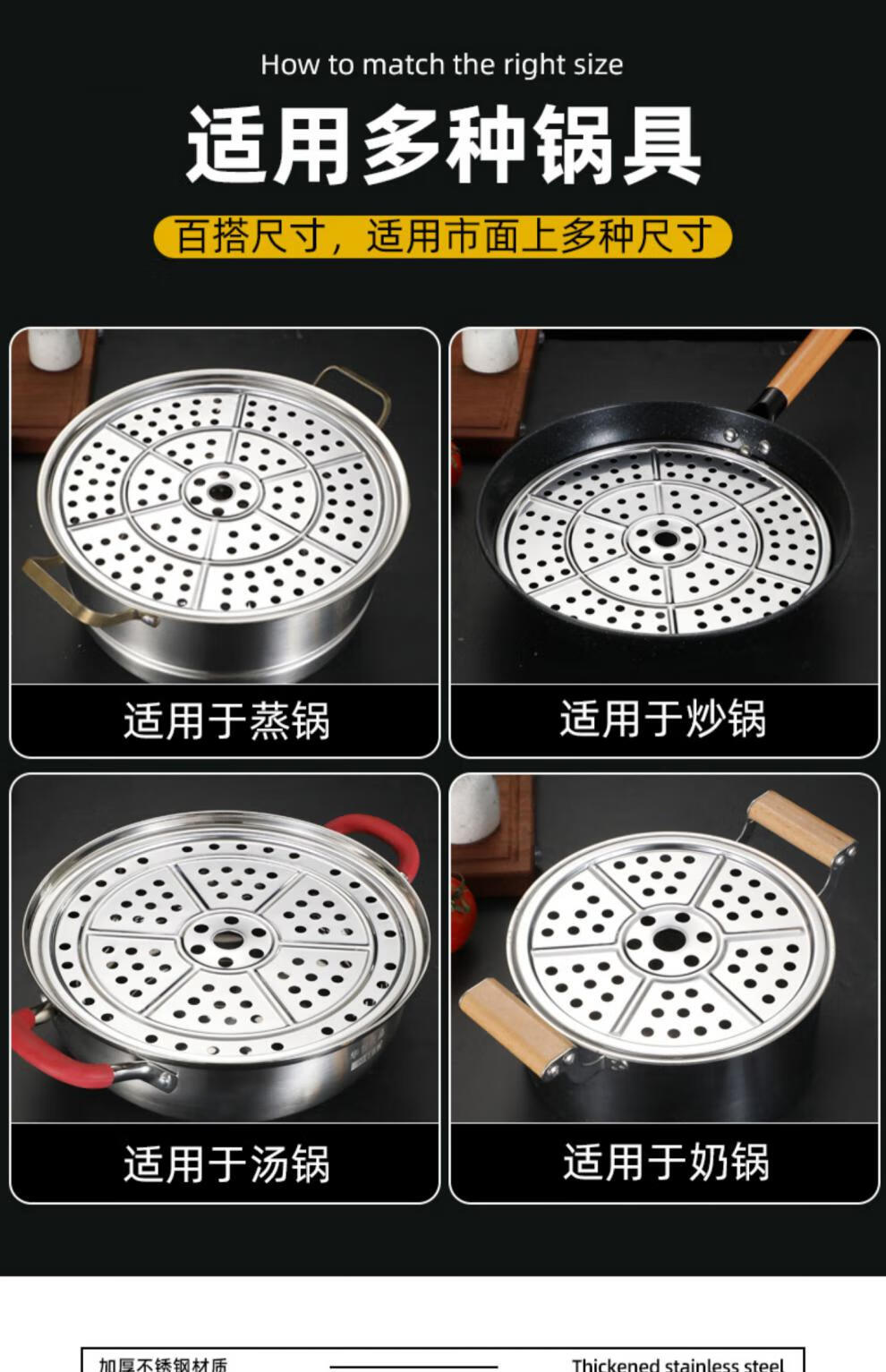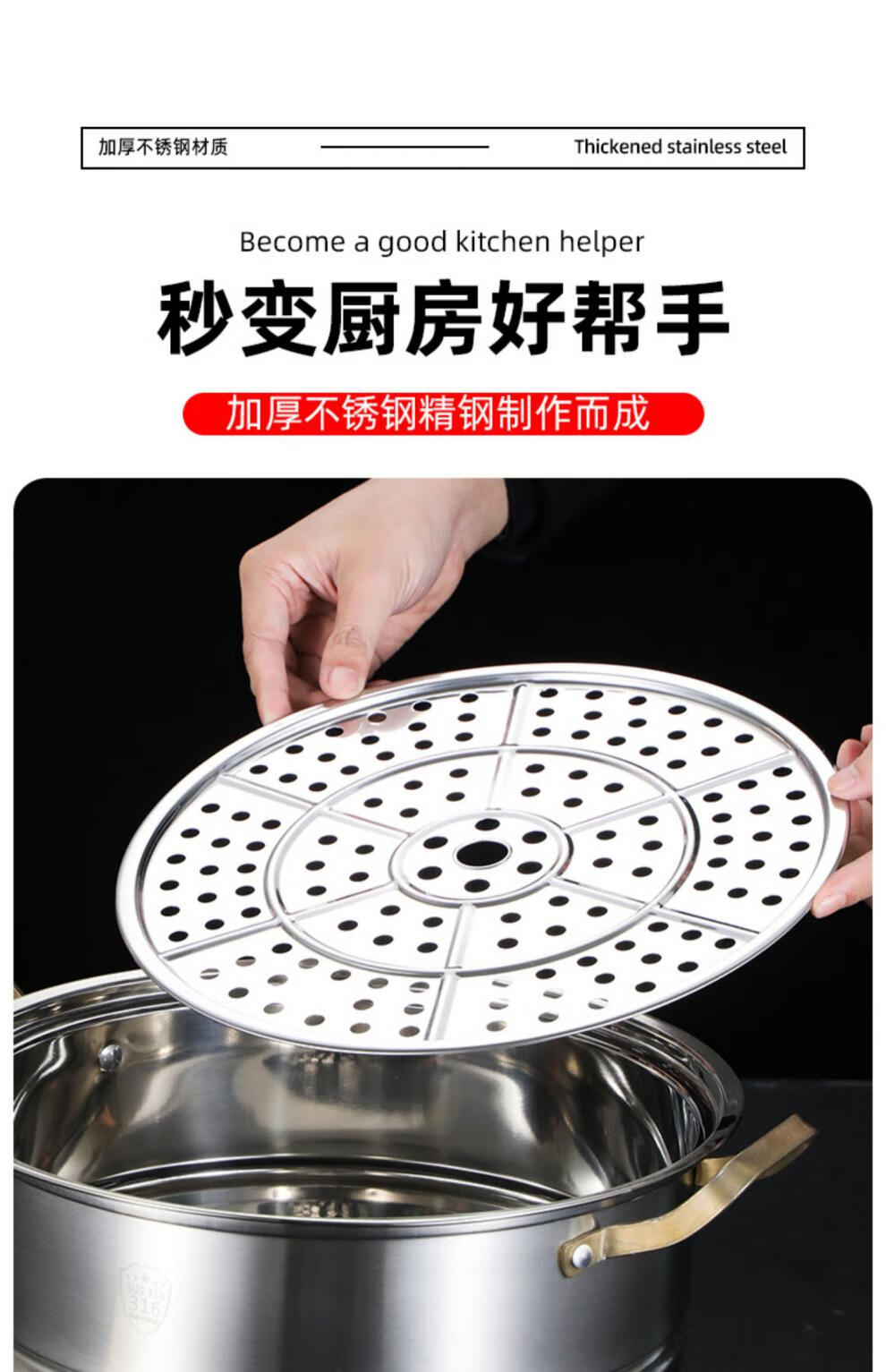 Jiaside 304 stainless steel steaming sheet thickened steaming plate rack kitchen household steamer grate wok steamer drawer water-proof steaming vegetable rack thickened steaming sheet 24cm