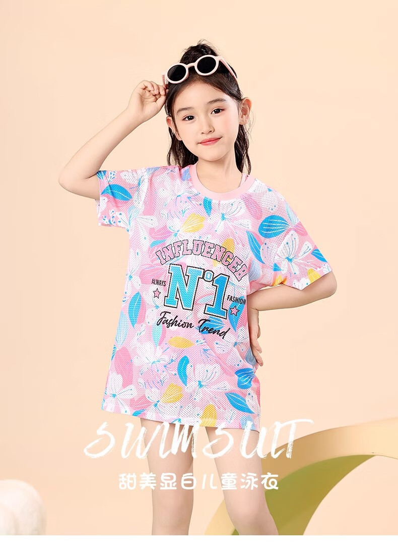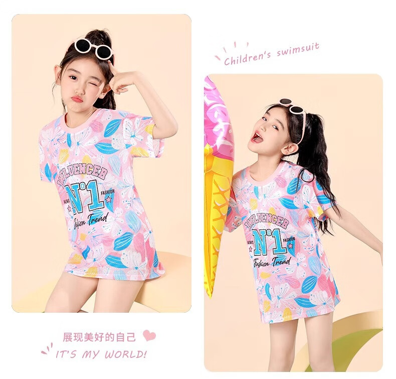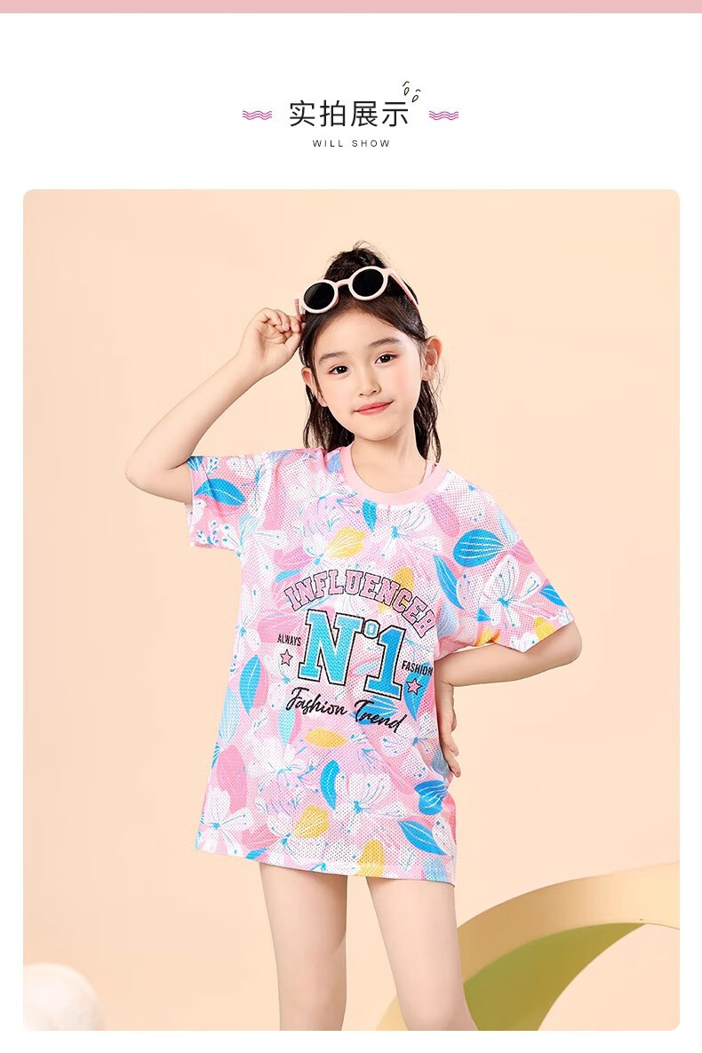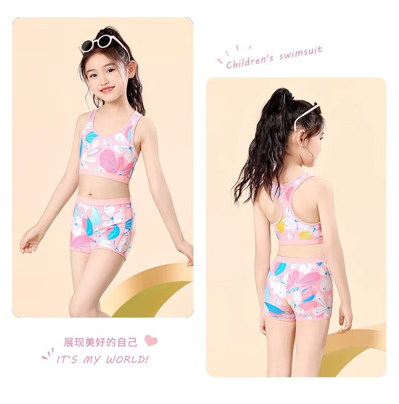 Youyou children's swimsuit girls split sun protection three-piece set 2025 new sweet princess quick-drying swimsuit for middle and large children pink 120 (XL recommended height 110-120cm)