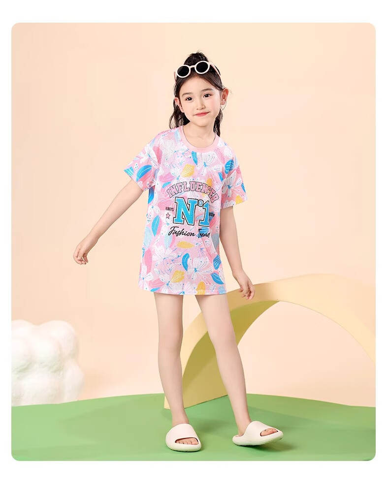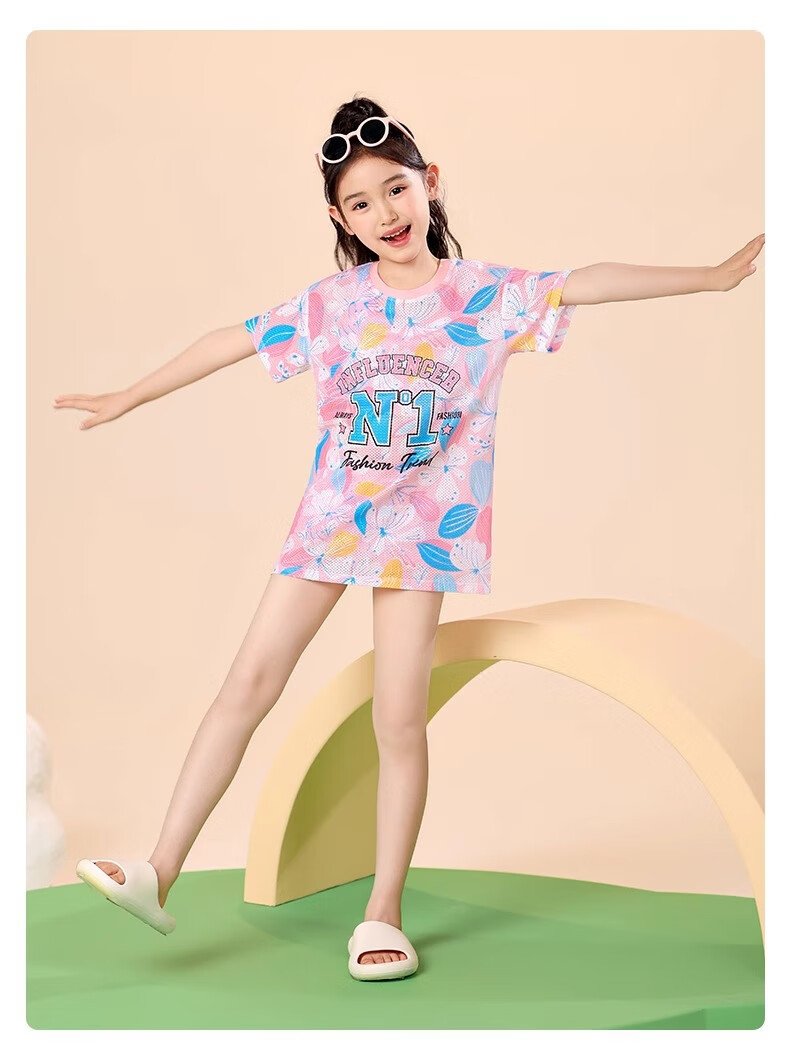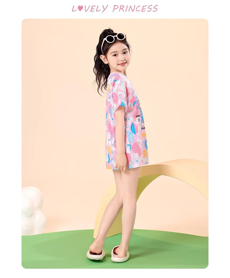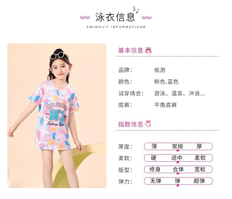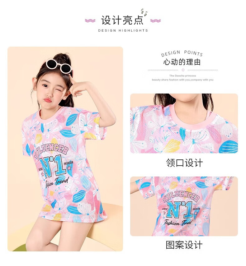 Youyou children's swimsuit girls split sun protection three-piece set 2025 new sweet princess quick-drying swimsuit for middle and large children pink 120 (XL recommended height 110-120cm)