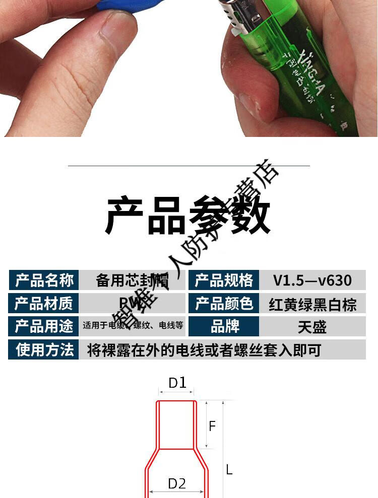 Cable spare core sealing cap thread protective sleeve core cap wire head dust cap flame retardant cable sheath cable core cap V2-2.5 square 2000 pieces please note the color