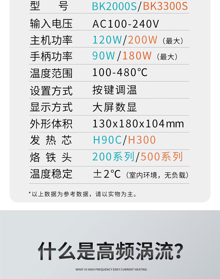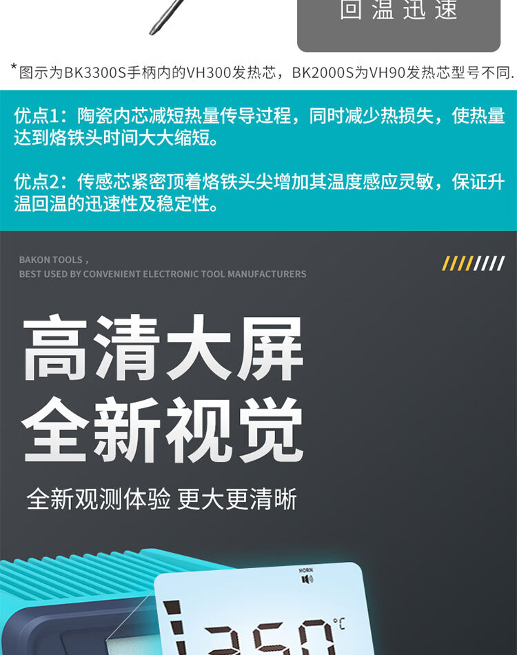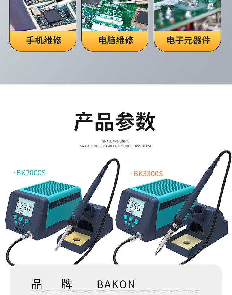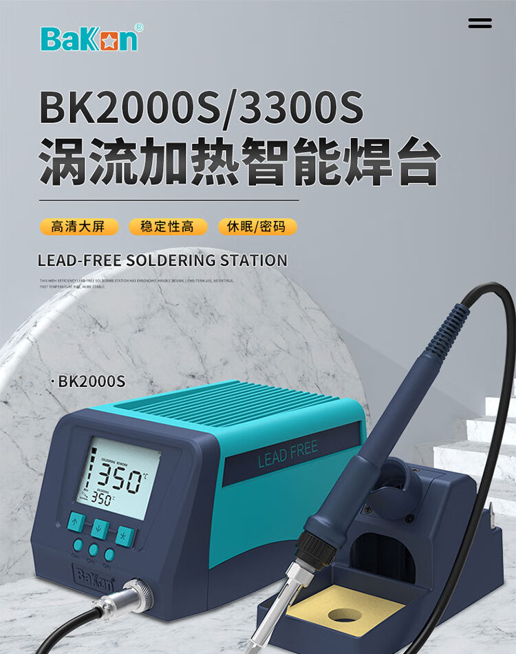 Bakon white light BK2000S/3300S high frequency eddy current soldering station 90W adjustable constant temperature digital display 200W high power electric soldering iron BK3300S 200W package one