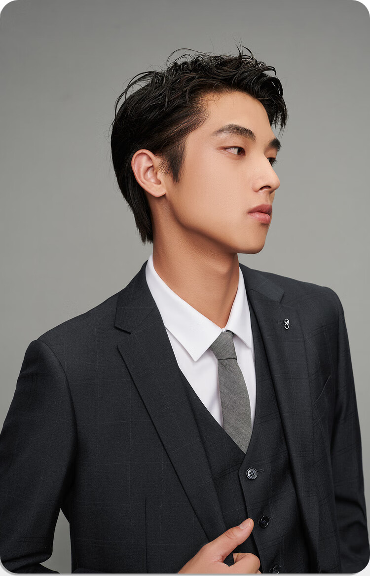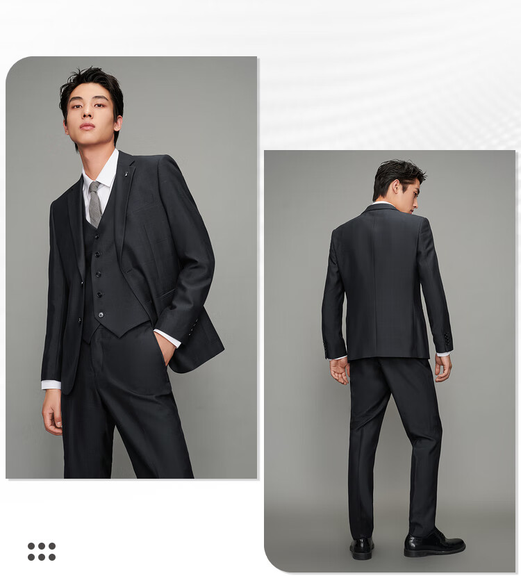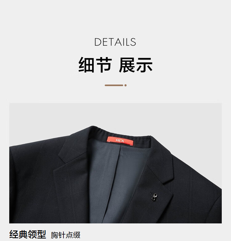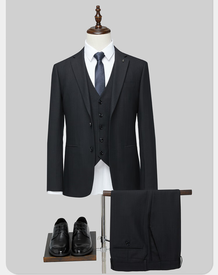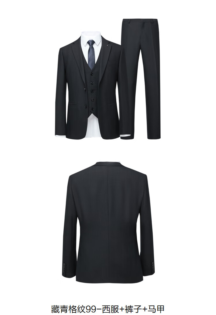 HLA Heilan Home Suit Suit Men's Three-piece Elastic Elastic Waist Slim Suit Men's Navy Plaid 99-Suit+Pants+Vest 2XL 175/96B48B Recommended 138~150Jin Jin equals 0.5 kg